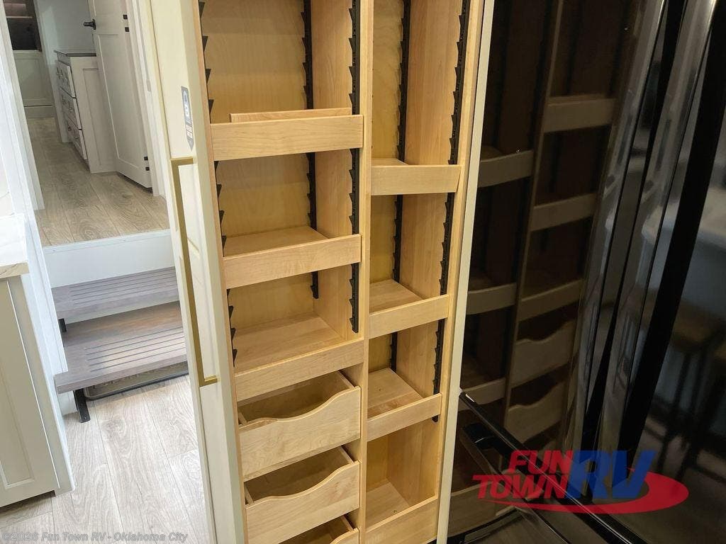 With any Model G toy hauler fifth wheel by Brinkley you will enjoy luxurious amenities, tons of storage space, and innovative features that have been developed and tested in the real world. Durable construction includes an industry leading PDI process, an industry best insulation package, and reinforced and walkable slide roofs. Some of the exterior features you'll find are a 3-way pass-through with a multi-functional flip-up bulkhead wall, under I-beam storage, a MAX-Vision reverse lighting system, and a low-maintenance roof to name a few. A Rockford Fosgate audio system comes standard, along with a Full app-based coach control system (iOS & Android) that lets you control your fifth wheel's functions right from your mobile device. You will find the solar system with a designated storage area to be ultra convenient, plus there is a FlexPower 5500 with a dual fuel inverter generator for all your power needs. Head inside to find a residential interior with Brinkley's CraftSense wood trim construction, floating entrance steps, integrated window screens and insulated blackout blinds, and residential solid surface countertops plus backsplash. You will also enjoy the neon shower lighting and recessed medicine cabinets in the bath, plus motion activated LED bed lights and dual bedside outlets in the bedroom. Choose a Model G toy hauler fifth wheel to experience all the luxury it has to offer!
