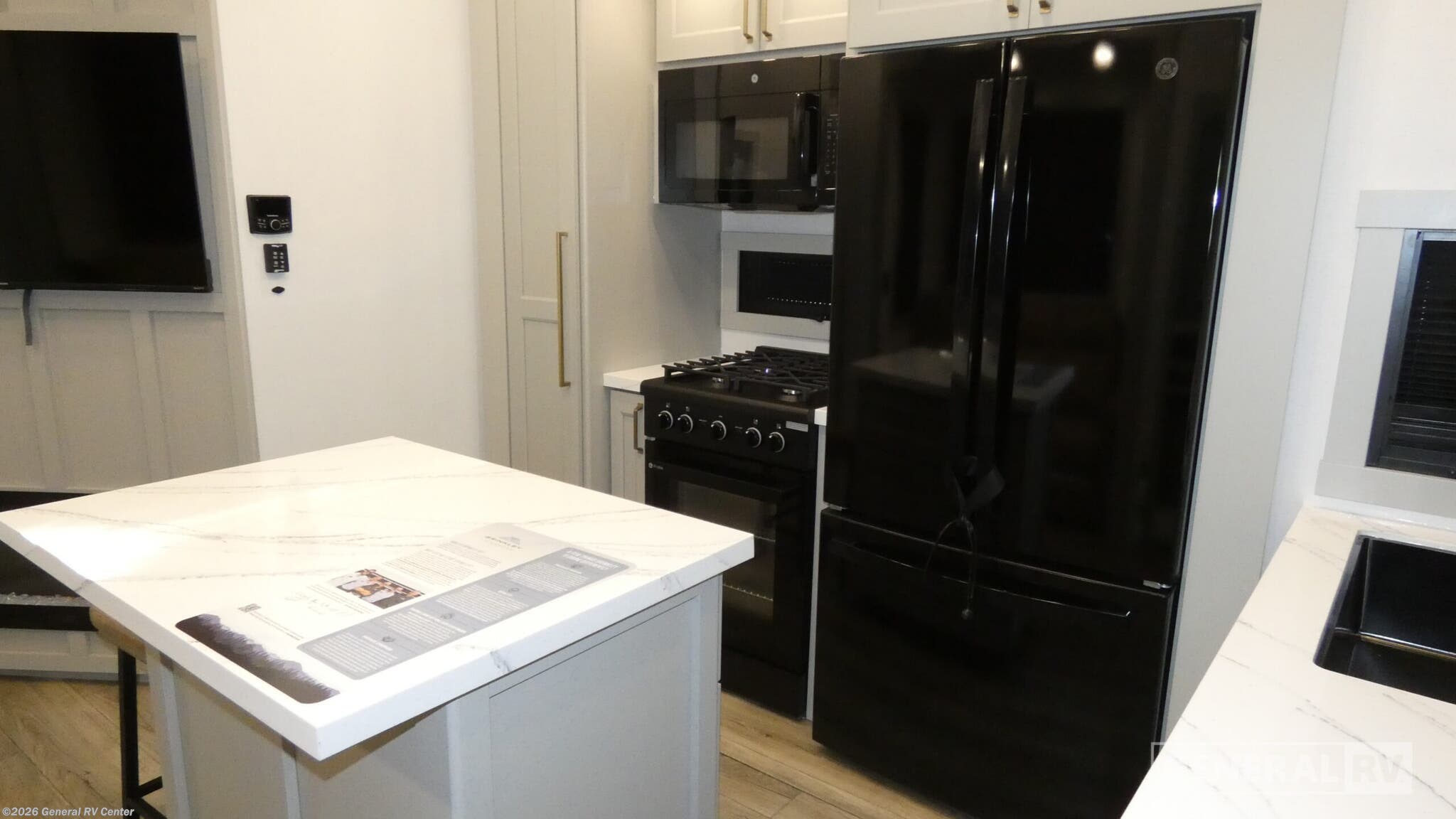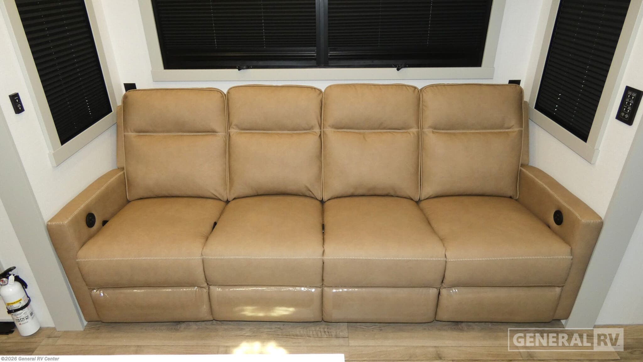 2026 Brinkley Model Gx 3500 Fifth Wheel Toy Hauler Highlights: -Loft -Three Patio Awnings -King Bed Slide Out -Fireplace -Bath and a Half -Residential Power & Solar Package Prepare to be amazed by the thoughtfully designed 2026 Brinkley Model GX 3500 fifth wheel toy hauler that is both lighter and more affordable, without sacrificing the quality or the essential Brinkley DNA you expect. Triple slide-outs create a spacious interior, while the 11' garage with HappiJac® sofa and bed lift system and an overhead loft provides flexible sleeping space for guests. A bath and a half adds everyday convenience for families and groups. The chef of the group will appreciate the middle kitchen featuring an eat-in island with pull-out trash, premium residential cabinetry, solid-surface countertops with backsplash, pull-out pantry storage, and a GE Energy Star 19 cu. ft. refrigerator with ice maker and filtered water. The open living area includes a luxury sofa with heat and massage, an electric fireplace, 50" Smart TV, and pet-friendly features. Up front, the private master bedroom offers a king bed slide-out, under-bed storage, dual bedside outlets, and motion-activated LED bed lighting for added comfort. Built with Brinkley’s commitment to quality, the GX 3500 features durable construction, residential CraftSense™ wood trim, advanced electronics, and a powerful FlexPower dual-fuel generator and solar system. The 2026 Brinkley Model GX 3500 delivers luxury, functionality, and confidence for wherever your adventures take you.