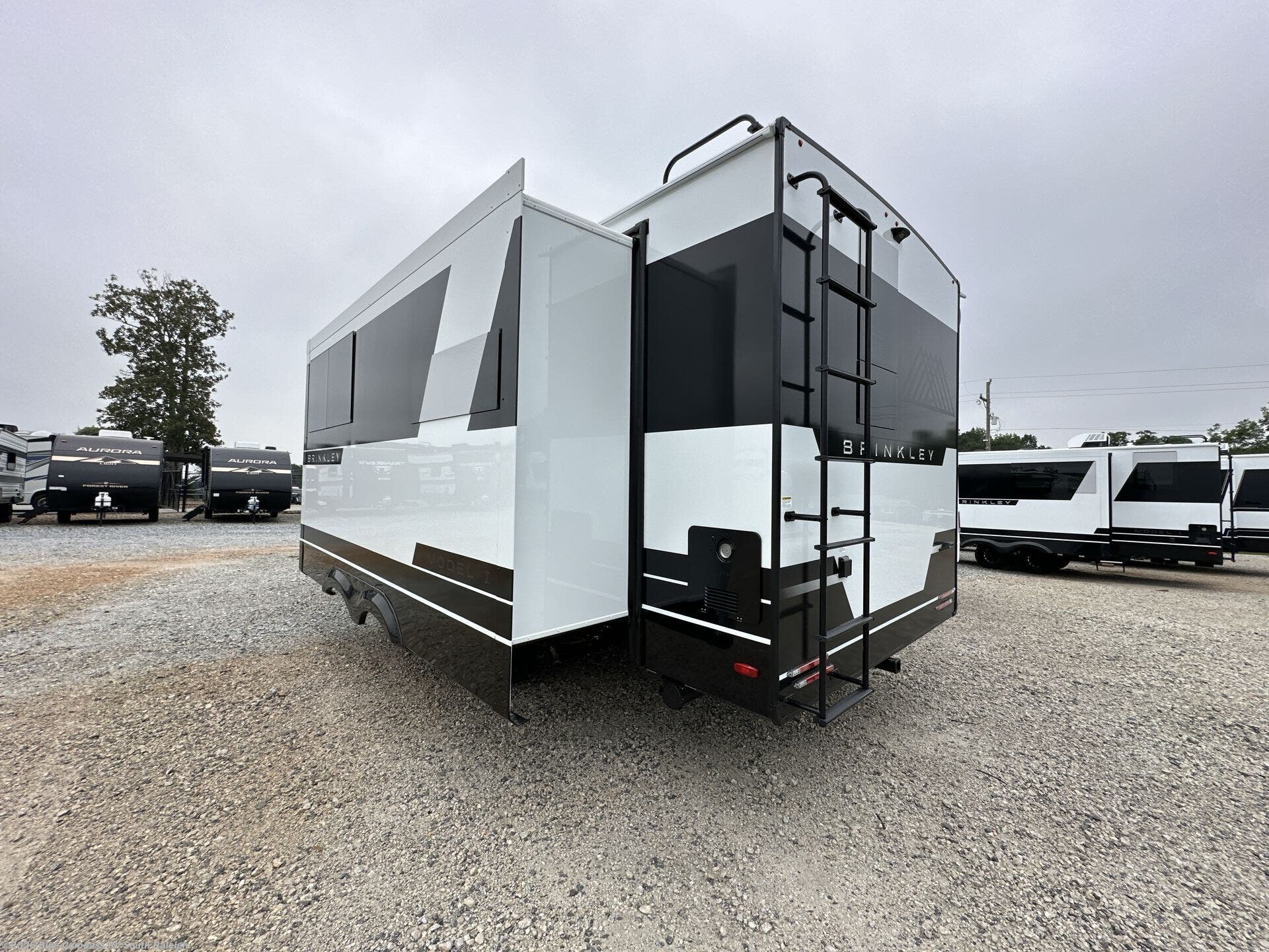 The lightweight Model I travel trailer by Brinkley is the perfect choice for those looking for an easy tow and at-home comforts! There is a drop-frame chassis, high-performance Road Armor suspension equalizer system, and Demco EZ Latch trailer coupler that automatically latches when dropped onto a hitch ball without the need of a safety pin. Additional exterior features include square Euro frameless windows, automotive-grade paint, full-width LED strip lighting in the pass-thru, and a pet & property security campside tie-down to keep your gear and furry friends safe. Inside, you'll be wowed by Brinkley's CraftSense wood trim construction, residential solid surface kitchen countertops, dimmable bedroom lights, and marine-grade neon LED shower lighting to name a few stand-out features!