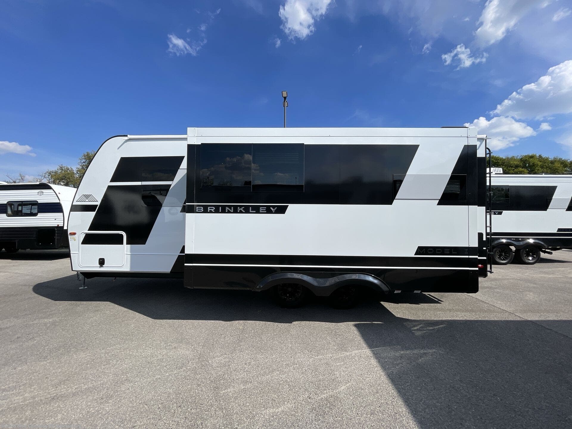 The lightweight Model I travel trailer by Brinkley is the perfect choice for those looking for an easy tow and at-home comforts! There is a drop-frame chassis, high-performance Road Armor suspension equalizer system, and Demco EZ Latch trailer coupler that automatically latches when dropped onto a hitch ball without the need of a safety pin. Additional exterior features include square Euro frameless windows, automotive-grade paint, full-width LED strip lighting in the pass-thru, and a pet & property security campside tie-down to keep your gear and furry friends safe. Inside, you'll be wowed by Brinkley's CraftSense wood trim construction, residential solid surface kitchen countertops, dimmable bedroom lights, and marine-grade neon LED shower lighting to name a few stand-out features!