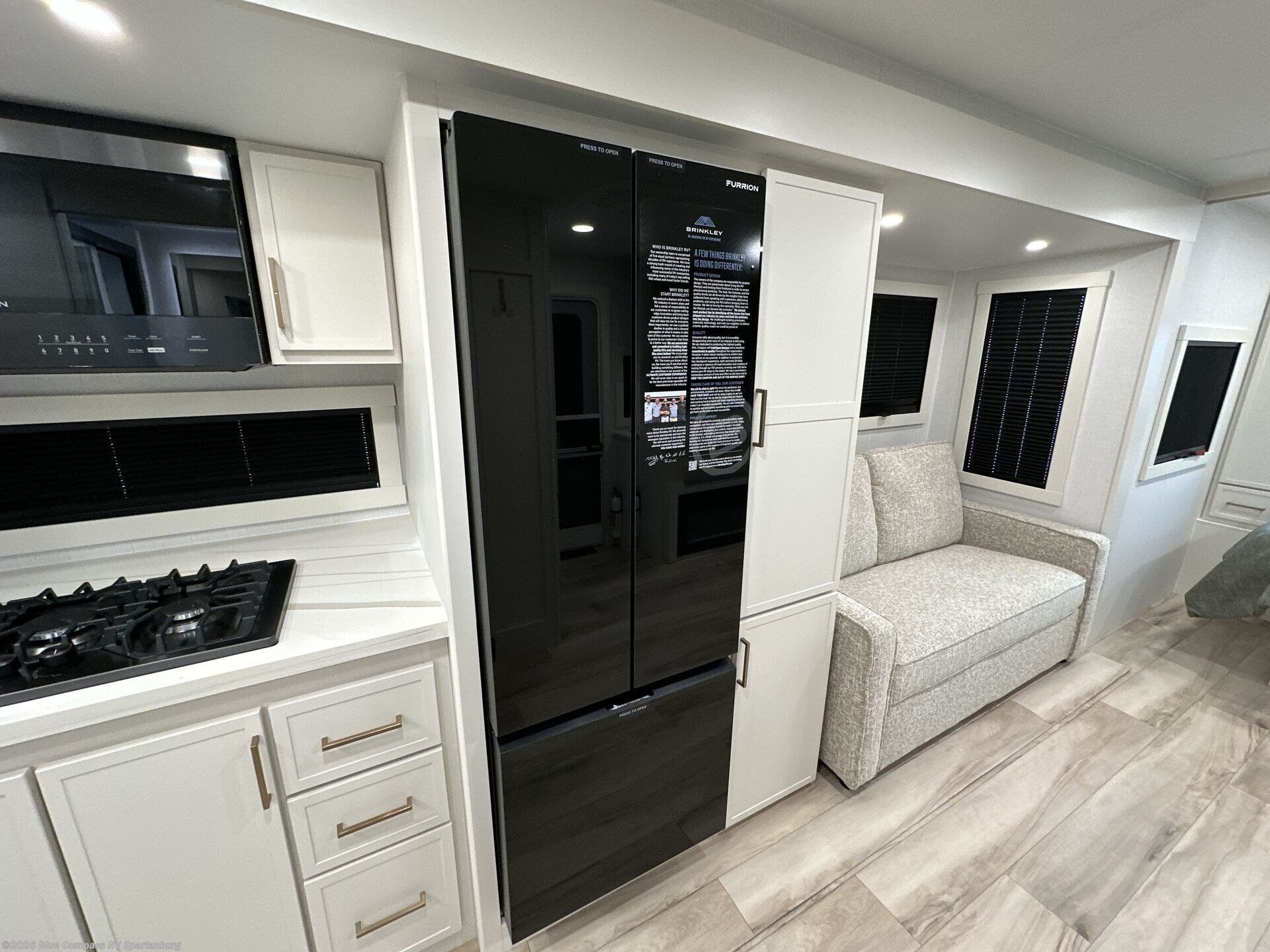 The lightweight Model I travel trailer by Brinkley is the perfect choice for those looking for an easy tow and at-home comforts! There is a drop-frame chassis, high-performance Road Armor suspension equalizer system, and Demco EZ Latch trailer coupler that automatically latches when dropped onto a hitch ball without the need of a safety pin. Additional exterior features include square Euro frameless windows, automotive-grade paint, full-width LED strip lighting in the pass-thru, and a pet & property security campside tie-down to keep your gear and furry friends safe. Inside, you'll be wowed by Brinkley's CraftSense wood trim construction, residential solid surface kitchen countertops, dimmable bedroom lights, and marine-grade neon LED shower lighting to name a few stand-out features!