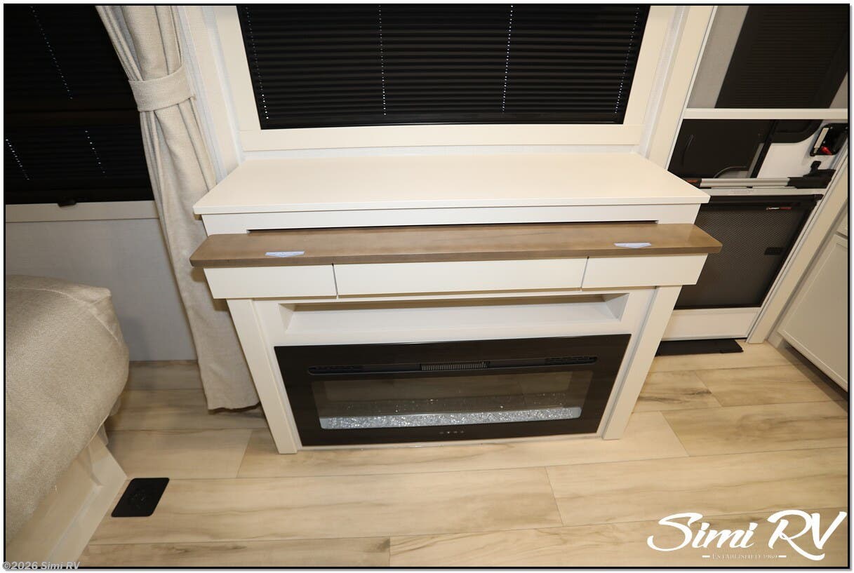 SOLAR, PASS THRU BAY, ELECTRIC AWNING, SPLIT-LEVEL WARDROBE, SLIDE-OUT, EXTENDABLE TABLE, THEATER SEATS, ELEC. FIREPLACE