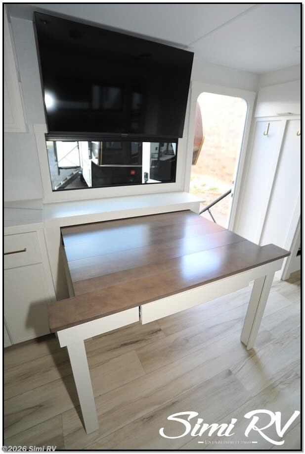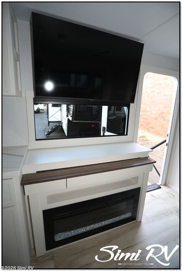 BIG TV, ELEC FIREPLACE, SPLIT LEVEL WARDROBE, PAINTED WHITE ALUM. EXT, PASS THRU, SOLAR, EXTENDABLE TABLE, SLIDE-OUT