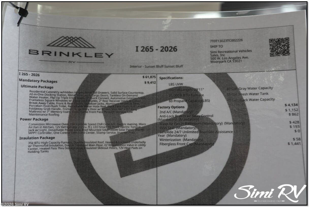 Request More Info on this 2026 Brinkley RV Model I 265 Offered for sale by Simi RV