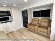 This travel trailer can comfortably sleep four with the king bed in the private bedroom and the tri-fold sofa in the main living area! The full bath features a spacious 42" x 30" shower with a built-in seat and Maxxair fan to name a few comforts. The front private bedroom features a 66" x 80" king bed with a MaxSpace Split-Level Wardrobe underneath to store shoes, clothes, and more! A slide out in the combined living area and rear kitchen makes your space more open, and you'll enjoy relaxing on the theater seating here in the evenings. The full kitchen includes a three burner stovetop, residential 30" convection microwave, 12 cu. ft. 12V refrigerator, plus a trash bin and Stow N' Go paper towel holder for added convenience. You can choose to eat outdoors under the 19' electric awning with LED lights or stay inside to dine at the pull-out dining table with a drawer for added storage!