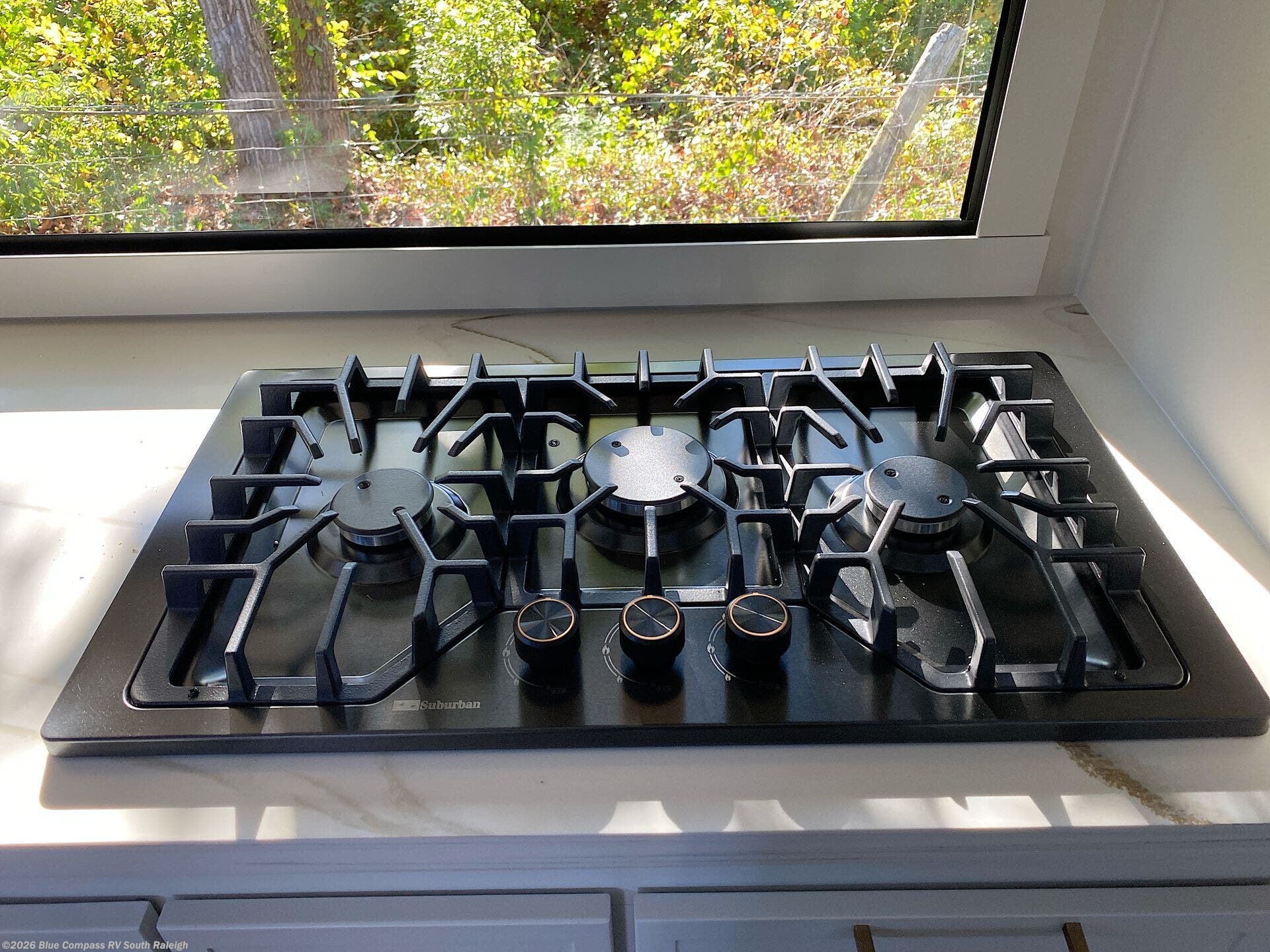 This travel trailer can comfortably sleep four with the king bed in the private bedroom and the tri-fold sofa in the main living area! The full bath features a spacious 42" x 30" shower with a built-in seat and Maxxair fan to name a few comforts. The front private bedroom features a 66" x 80" king bed with a MaxSpace Split-Level Wardrobe underneath to store shoes, clothes, and more! A slide out in the combined living area and rear kitchen makes your space more open, and you'll enjoy relaxing on the theater seating here in the evenings. The full kitchen includes a three burner stovetop, residential 30" convection microwave, 12 cu. ft. 12V refrigerator, plus a trash bin and Stow N' Go paper towel holder for added convenience. You can choose to eat outdoors under the 19' electric awning with LED lights or stay inside to dine at the pull-out dining table with a drawer for added storage!