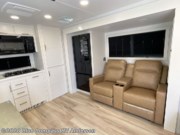 This travel trailer can comfortably sleep four with the king bed in the private bedroom and the tri-fold sofa in the main living area! The full bath features a spacious 42" x 30" shower with a built-in seat and Maxxair fan to name a few comforts. The front private bedroom features a 66" x 80" king bed with a MaxSpace Split-Level Wardrobe underneath to store shoes, clothes, and more! A slide out in the combined living area and rear kitchen makes your space more open, and you'll enjoy relaxing on the theater seating here in the evenings. The full kitchen includes a three burner stovetop, residential 30" convection microwave, 12 cu. ft. 12V refrigerator, plus a trash bin and Stow N' Go paper towel holder for added convenience. You can choose to eat outdoors under the 18' electric awning with LED lights or stay inside to dine at the pull-out dining table with a drawer for added storage!