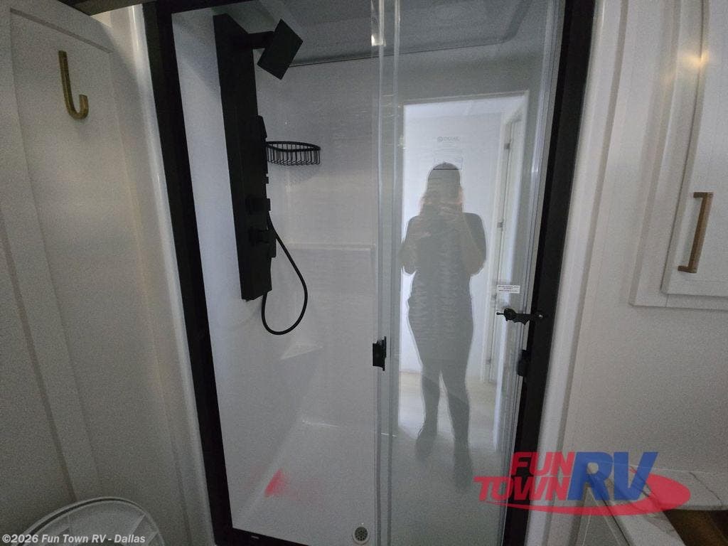 Savor the joy of cooking and sharing meals with loved ones in this beautifully appointed kitchen! This rear kitchen features a spacious pantry with drawers and outlets, a 30" convection microwave, a flip-up counter, and a 12V refrigerator. The convertible dining table and L-desk create a refined space for meals, work, and relaxation. The adjacent L-sofa forms a cozy sanctuary for reading, socializing, or enjoying the entertainment center and fireplace. There is a full bathroom with everything you need to keep your personal hygiene on the road. Plus, the front bedroom’s peaceful haven features a plush king bed, nightstands with storage, and a MaxSpace split-level wardrobe. Additionally, the two exterior awnings create a spacious outdoor living area, ideal for relaxing, entertaining, or enjoying the great outdoors.
