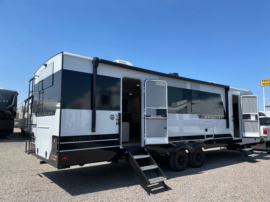 The lightweight Model I travel trailer by Brinkley is the perfect choice for those looking for an easy tow and at-home comforts! There is a drop-frame chassis, high-performance Road Armor suspension equalizer system, and Demco EZ Latch trailer coupler that automatically latches when dropped onto a hitch ball without the need of a safety pin. Additional exterior features include square Euro frameless windows, automotive-grade paint, full-width LED strip lighting in the pass-thru, and a pet & property security campside tie-down to keep your gear and furry friends safe. Inside, you'll be wowed by Brinkley's CraftSense wood trim construction, residential solid surface kitchen countertops, dimmable bedroom lights, and marine-grade neon LED shower lighting to name a few stand-out features!