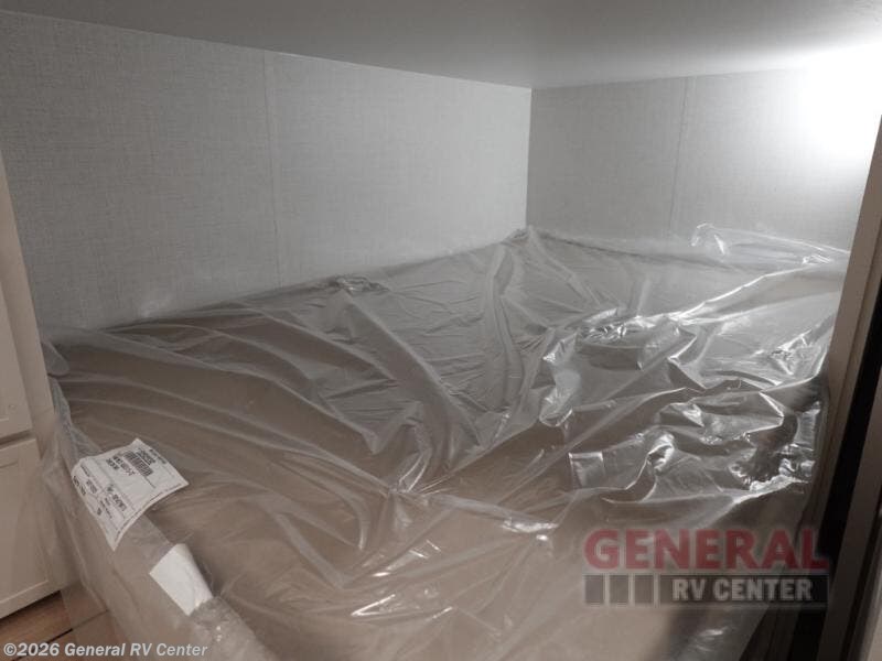 Grab the whole gang and head to the campground in this bunkhouse travel trailer! The 48" x 74" bunks can sleep two to four, and there is a floor to ceiling storage cabinet with drawers, a top bunk window, outlets and USB ports, plus double space-saving pocket doors. Up front you'll find the master bedroom with a 66" x 80" king bed and a MaxSpace Split-Level Wardrobe, TV prep, your own exterior entry door, plus quick access to the walk-thru bath. Everyone can meet in the combined kitchen and living room to relax on the theater seating or tri-fold sofa, and there is pull-out dining table with a drawer and a window above for great outdoor views. The outside is just as accommodating as the inside with its exterior speakers, LED chassis lighting, rear storage compartment with dual access doors, and exterior 12V refrigerator for cold drinks!