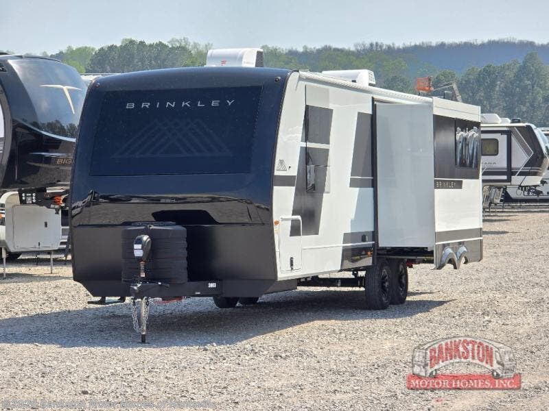 The lightweight Model I travel trailer by Brinkley is the perfect choice for those looking for an easy tow and at-home comforts! There is a drop-frame chassis, high-performance Road Armor suspension equalizer system, and Demco EZ Latch trailer coupler that automatically latches when dropped onto a hitch ball without the need of a safety pin. Additional exterior features include square Euro frameless windows, automotive-grade paint, full-width LED strip lighting in the pass-thru, and a pet & property security campside tie-down to keep your gear and furry friends safe. Inside, you'll be wowed by Brinkley's CraftSense wood trim construction, residential solid surface kitchen countertops, dimmable bedroom lights, and marine-grade neon LED shower lighting to name a few stand-out features!