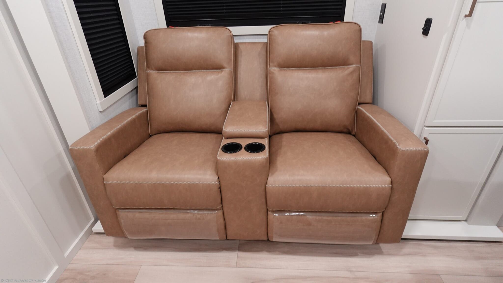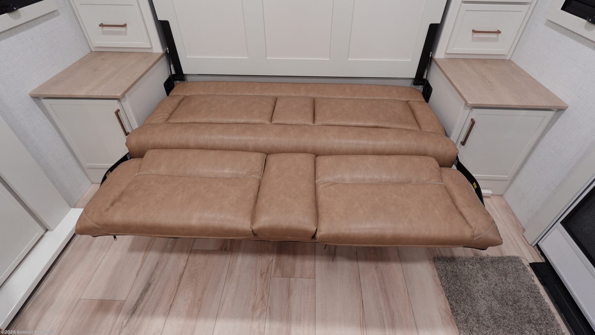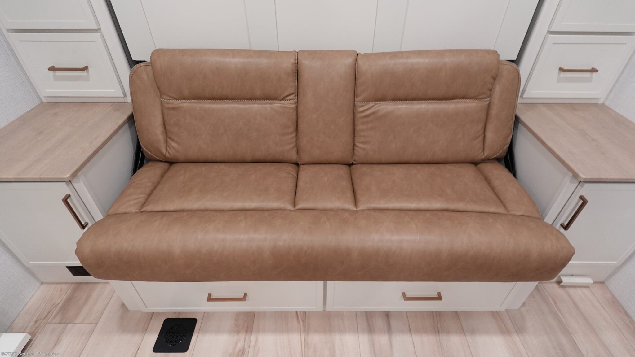 Brinkley Model Ix travel trailer 20x highlights: Front Hidden Bed System Exterior Pass-Thru Storage 36" x 30" Shower Pull-Out Dining Table This is the perfect travel trailer for the couple looking for comfort at the campground! Once you've unloaded the pass-thru storage, you can put out the 16' patio awning and relax in your camp chairs. Head inside to make lunch in the fully equipped kitchen that includes a three-burner range, 30" convection microwave, and dishwasher prep. There is a pantry with outlets within the large slide out, along with a 10-cu. ft. refrigerator, plus theater seating across from the TV. And if you need sleeping space for guests, just choose the optional tri-fold sofa in place of the theater seating! You'll appreciate the front sofa plus a Feather-Lift bed system, providing seating space during the day and sleeping space at night! A pull-out table with a drawer provides a place to dine together, and a full bath on board will let you freshen up each day. The Model Ix by Brinkley is your ticket to lightweight towing and exceptional features. This premium half-ton towable travel trailer features Brinkley's CraftSense building materials for a higher level of construction, along with a seamless laminated aluminum exterior with automotive grade full-body paint and modern graphics. You will stay powered up thanks to the power package with a 200-watt solar panel, and the Road Armor suspension will help provide a smooth tow from home to campground. The interior of the Model Ix includes premium residential cabinets with dovetail drawers, an ultra quiet and efficient A/C system, and a SoundCore Boom 2 Bluetooth waterproof speaker so you can listen to your favorite tunes indoors or outdoors!