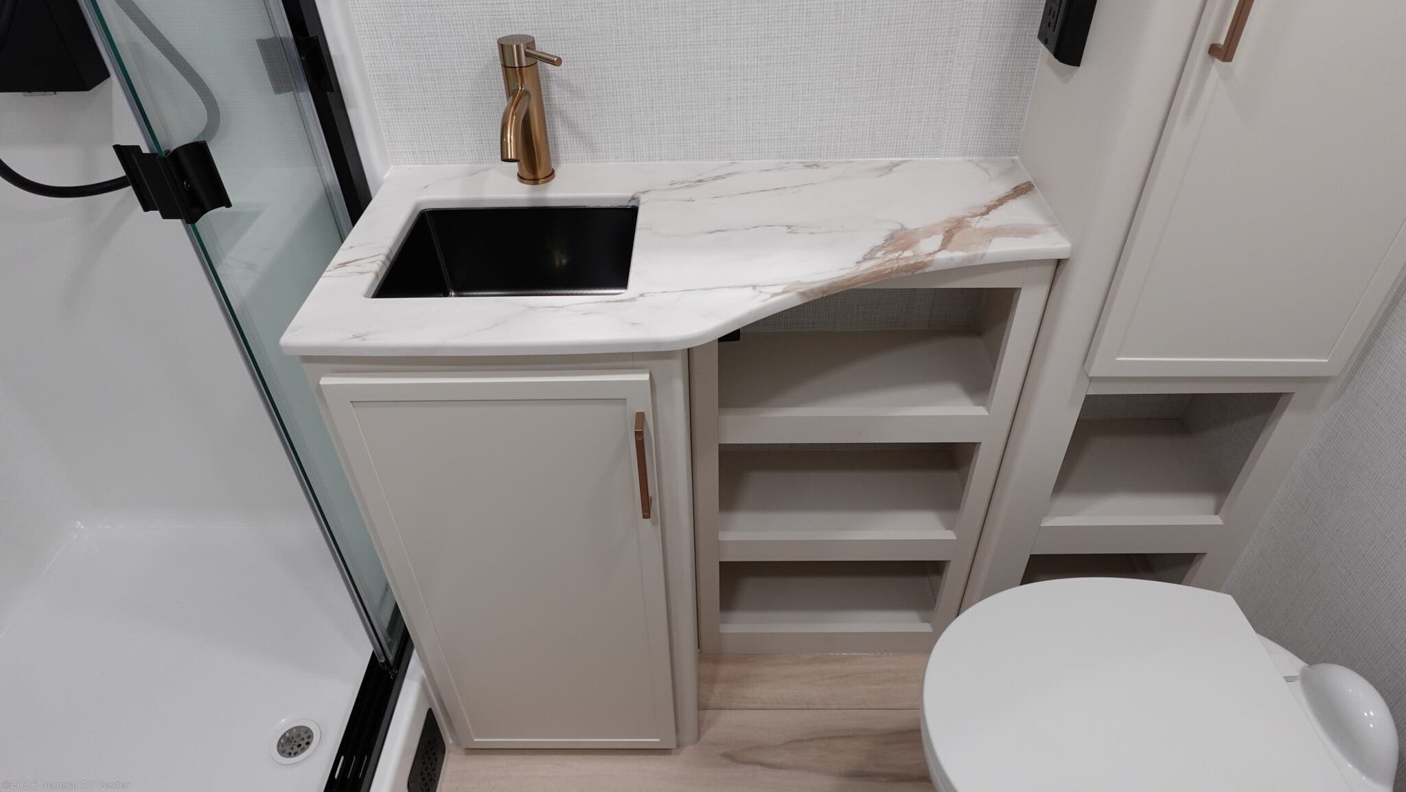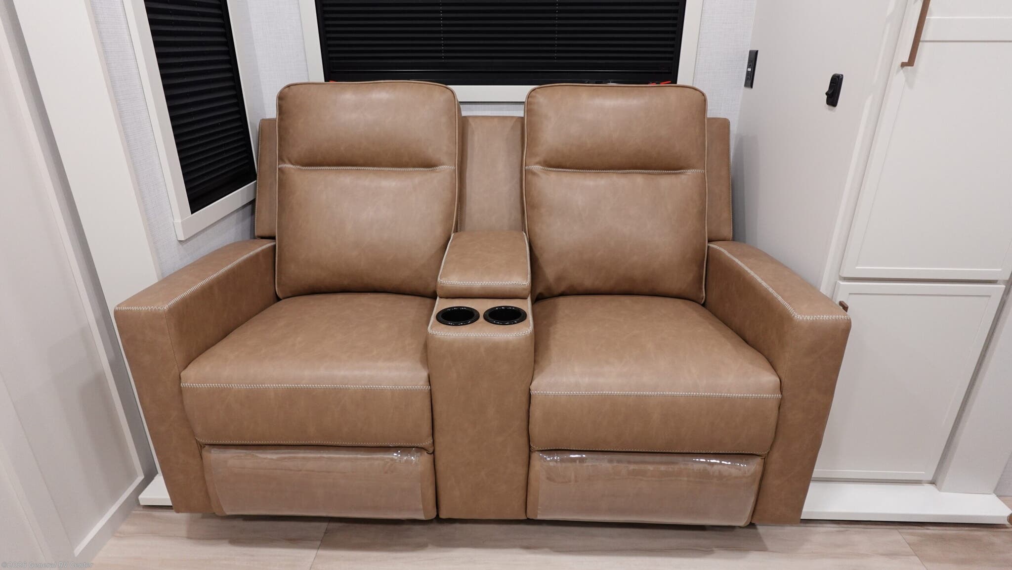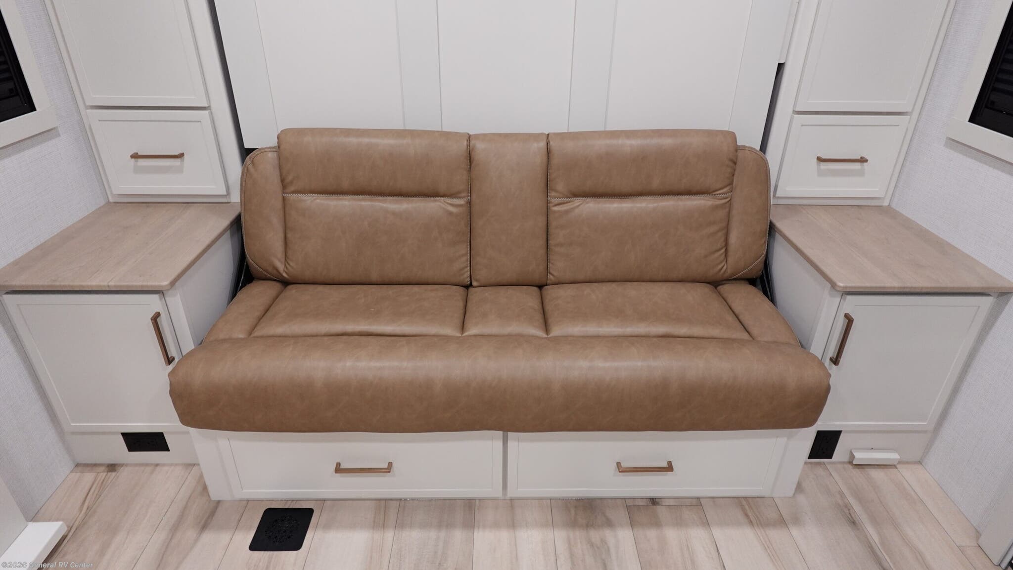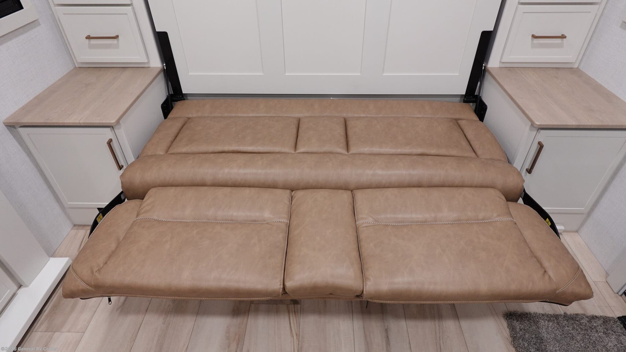 Brinkley Model Ix travel trailer 20x highlights: Front Hidden Bed System Exterior Pass-Thru Storage 36" x 30" Shower Pull-Out Dining Table This is the perfect travel trailer for the couple looking for comfort at the campground! Once you've unloaded the pass-thru storage, you can put out the 16' patio awning and relax in your camp chairs. Head inside to make lunch in the fully equipped kitchen that includes a three-burner range, 30" convection microwave, and dishwasher prep. There is a pantry with outlets within the large slide out, along with a 10-cu. ft. refrigerator, plus theater seating across from the TV. And if you need sleeping space for guests, just choose the optional tri-fold sofa in place of the theater seating! You'll appreciate the front sofa plus a Feather-Lift bed system, providing seating space during the day and sleeping space at night! A pull-out table with a drawer provides a place to dine together, and a full bath on board will let you freshen up each day. The Model Ix by Brinkley is your ticket to lightweight towing and exceptional features. This premium half-ton towable travel trailer features Brinkley's CraftSense building materials for a higher level of construction, along with a seamless laminated aluminum exterior with automotive grade full-body paint and modern graphics. You will stay powered up thanks to the power package with a 200-watt solar panel, and the Road Armor suspension will help provide a smooth tow from home to campground. The interior of the Model Ix includes premium residential cabinets with dovetail drawers, an ultra quiet and efficient A/C system, and a SoundCore Boom 2 Bluetooth waterproof speaker so you can listen to your favorite tunes indoors or outdoors!