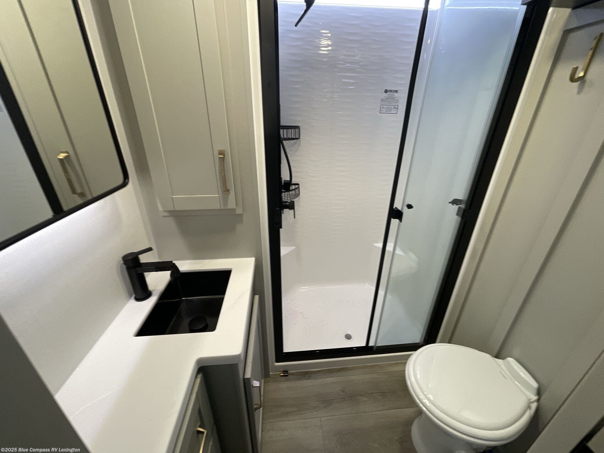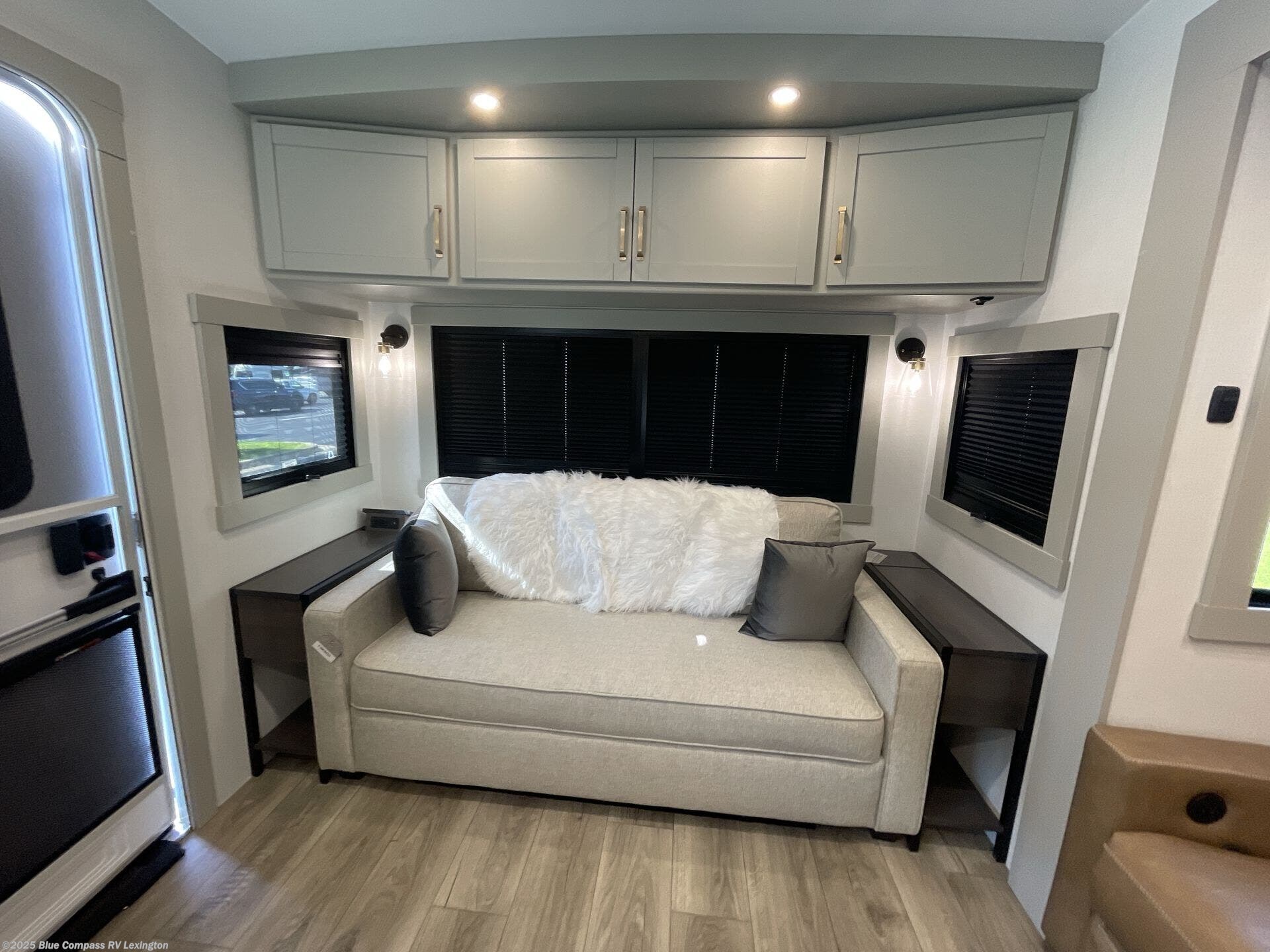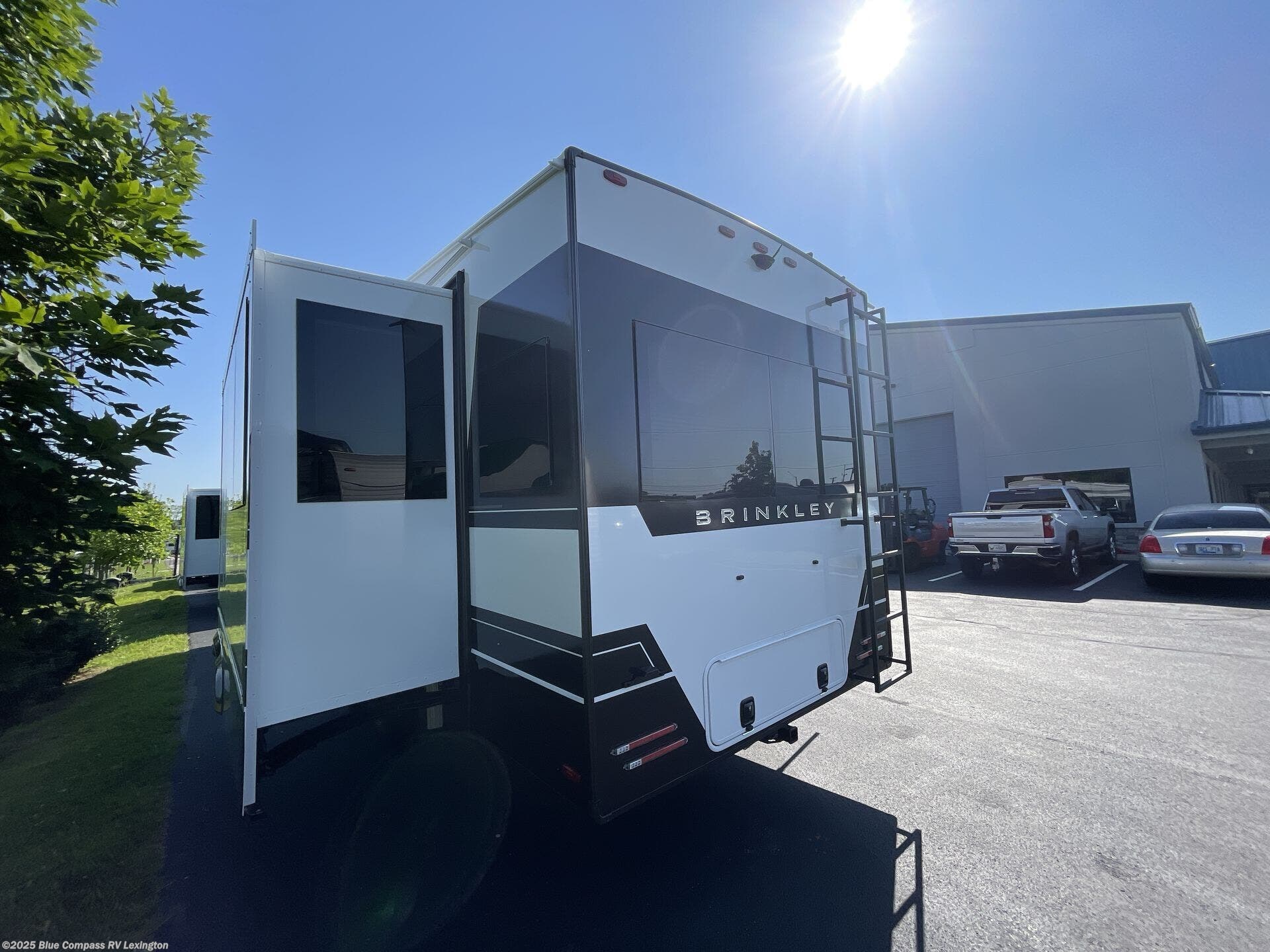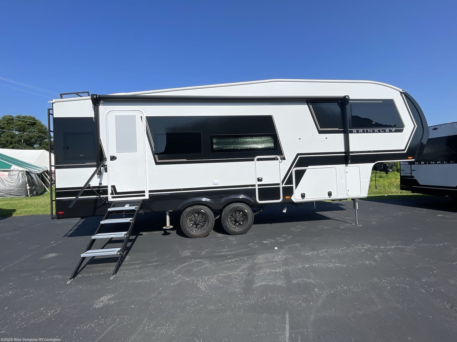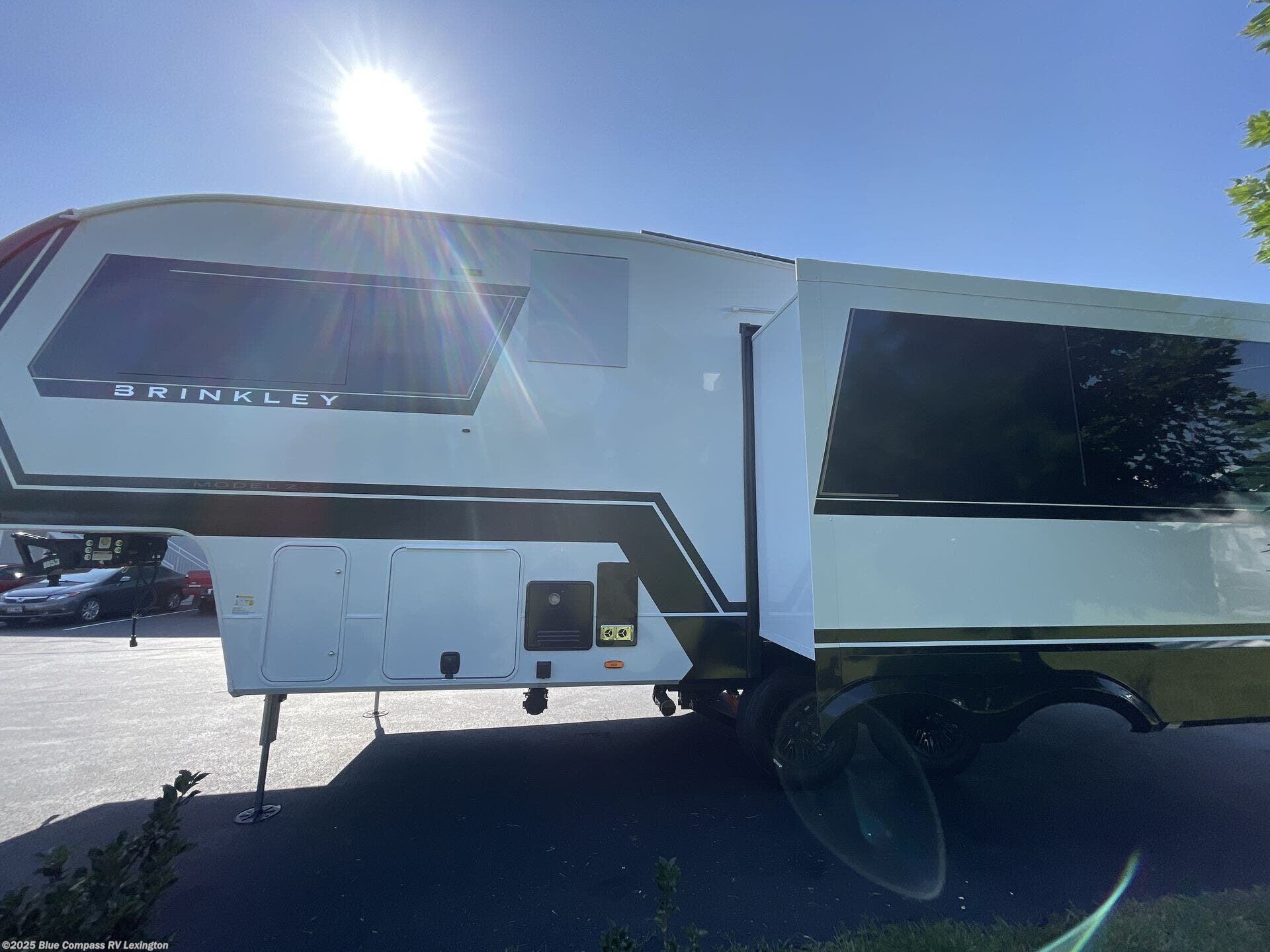 The Brinkley mid-profile Model Z fifth wheels bring you clean lines and an upscale look with plenty of style and exciting new features like the industry first brass plumbing connections. These units also feature an automotive grade front cap, plenty of exterior storage, dual exterior hot and cold showers, and wide stance leveling jacks for easy set up. Residential frameless windows provide a clean look and beautiful views, and ample electrical outlets and USB/USB-C outlets allow all of your electronics and appliances to easily be used and charged.