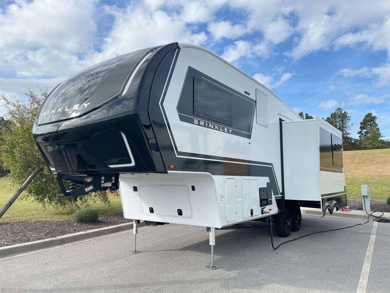The Brinkley mid-profile Model Z fifth wheels bring you clean lines and an upscale look with plenty of style and exciting new features like the industry first brass plumbing connections. These units also feature an automotive grade front cap, plenty of exterior storage, dual exterior hot and cold showers, and wide stance leveling jacks for easy set up. Residential frameless windows provide a clean look and beautiful views, and ample electrical outlets and USB/USB-C outlets allow all of your electronics and appliances to easily be used and charged.