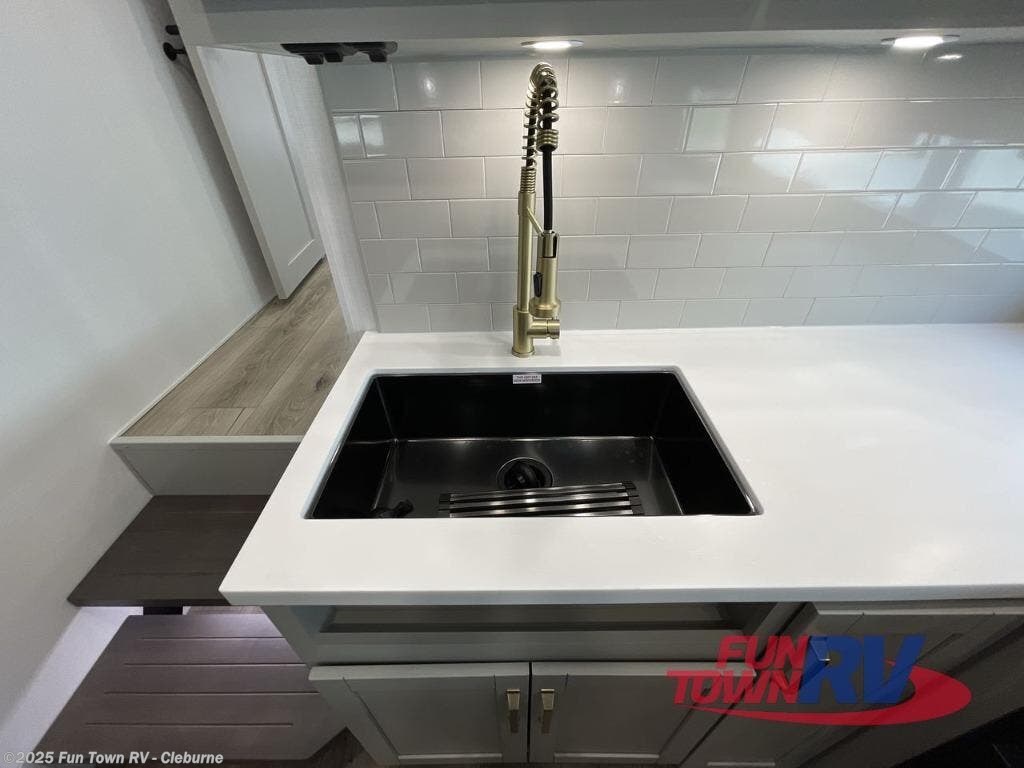 The Brinkley mid-profile Model Z fifth wheels bring you clean lines and an upscale look with plenty of style and exciting new features like the industry first brass plumbing connections. These units also feature an automotive grade front cap, plenty of exterior storage, dual exterior hot and cold showers, and wide stance leveling jacks for easy set up. Residential frameless windows provide a clean look and beautiful views, and ample electrical outlets and USB/USB-C outlets allow all of your electronics and appliances to easily be used and charged.