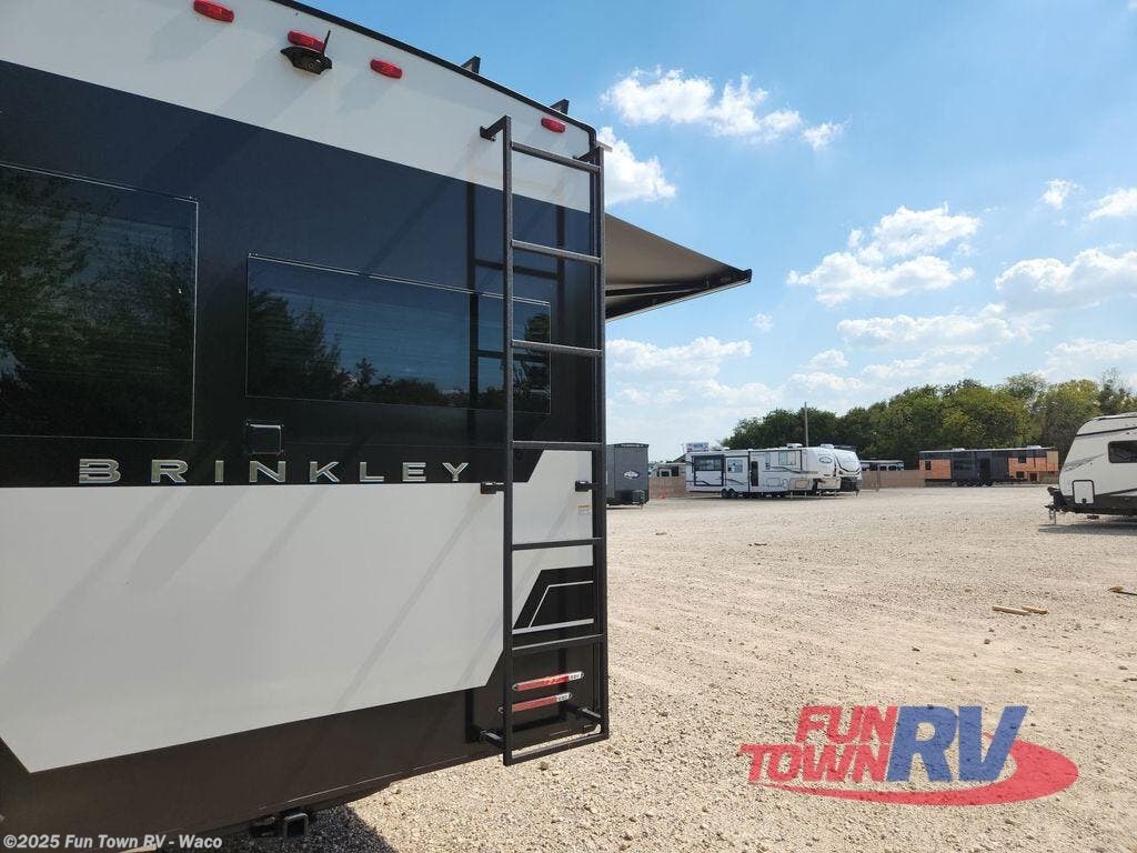 The Brinkley mid-profile Model Z fifth wheels bring you clean lines and an upscale look with plenty of style and exciting new features like the industry first brass plumbing connections. These units also feature an automotive grade front cap, plenty of exterior storage, dual exterior hot and cold showers, and wide stance leveling jacks for easy set up. Residential frameless windows provide a clean look and beautiful views, and ample electrical outlets and USB/USB-C outlets allow all of your electronics and appliances to easily be used and charged.