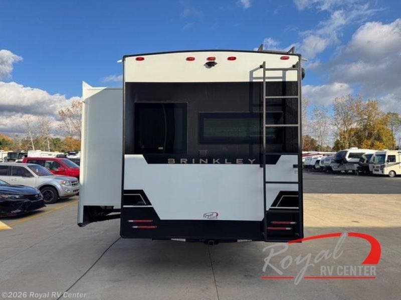 The Brinkley mid-profile Model Z fifth wheels bring you clean lines and an upscale look with plenty of style and exciting new features like the industry first brass plumbing connections. These units also feature an automotive grade front cap, plenty of exterior storage, dual exterior hot and cold showers, and wide stance leveling jacks for easy set up. Residential frameless windows provide a clean look and beautiful views, and ample electrical outlets and USB/USB-C outlets allow all of your electronics and appliances to easily be used and charged.