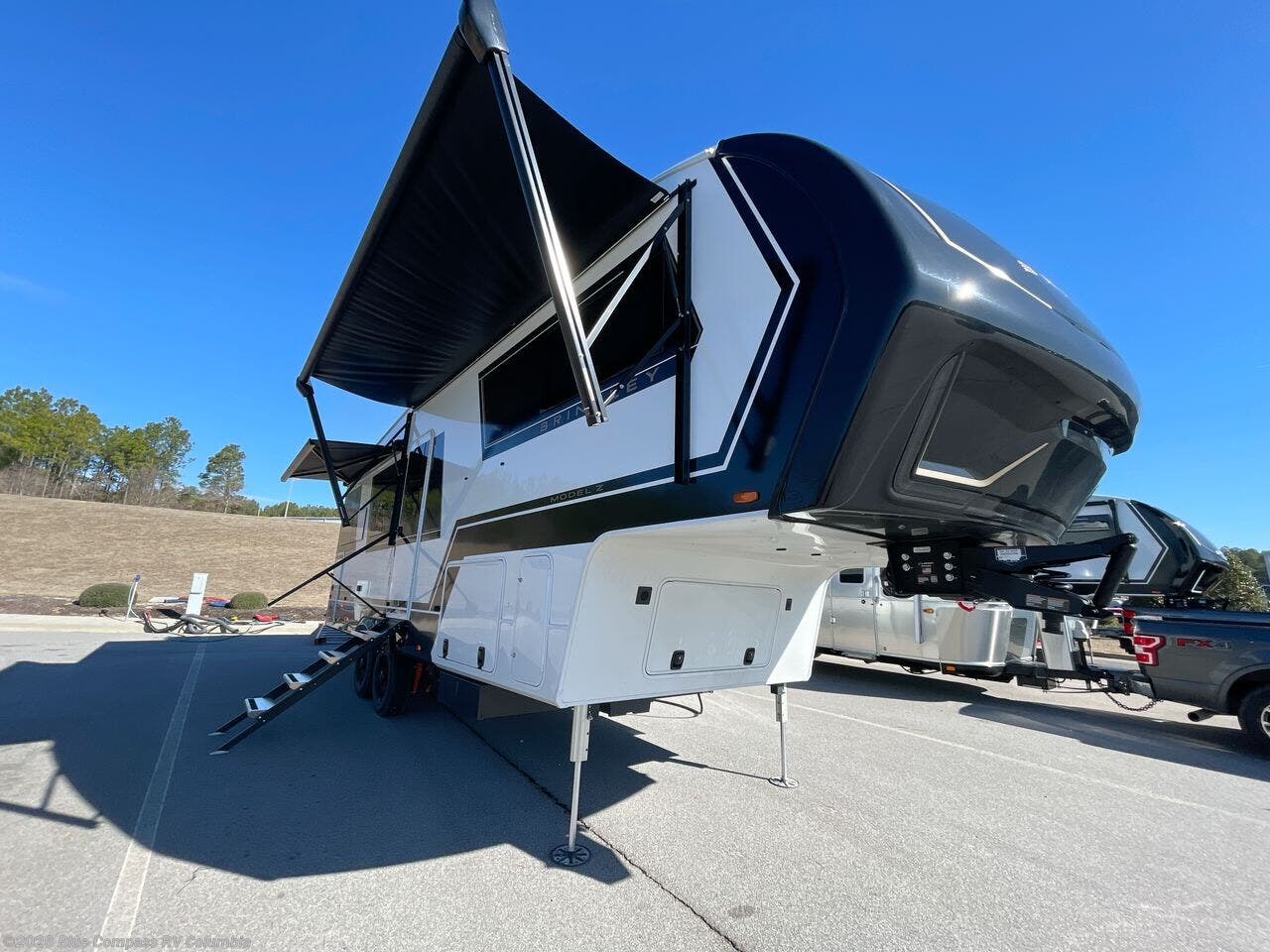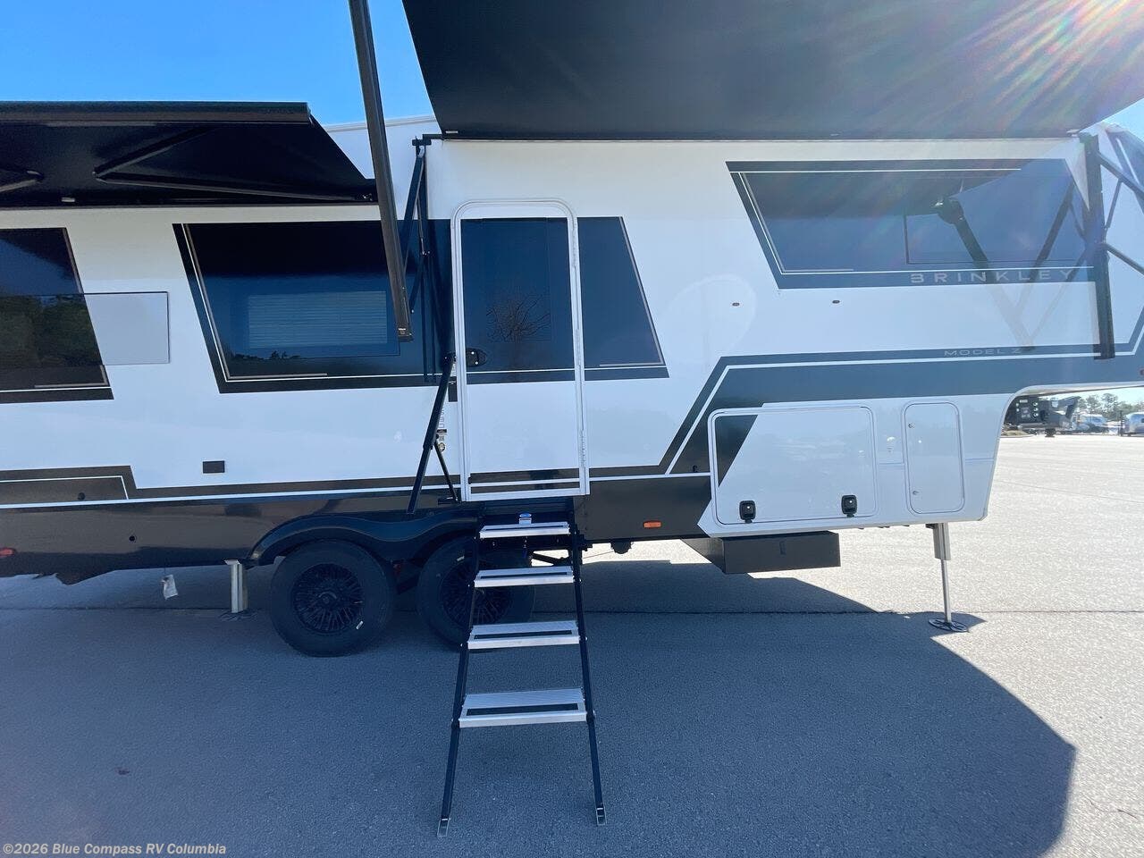 The Brinkley mid-profile Model Z fifth wheels bring you clean lines and an upscale look with plenty of style and exciting new features like the industry first brass plumbing connections. These units also feature an automotive grade front cap, plenty of exterior storage, dual exterior hot and cold showers, and wide stance leveling jacks for easy set up. Residential frameless windows provide a clean look and beautiful views, and ample electrical outlets and USB/USB-C outlets allow all of your electronics and appliances to easily be used and charged.