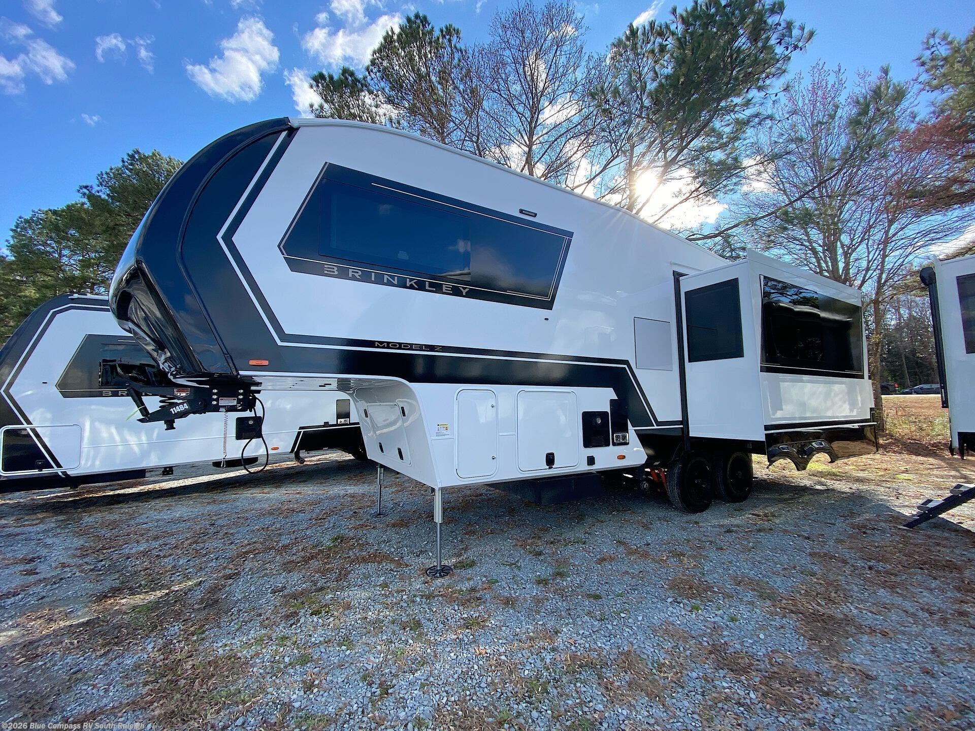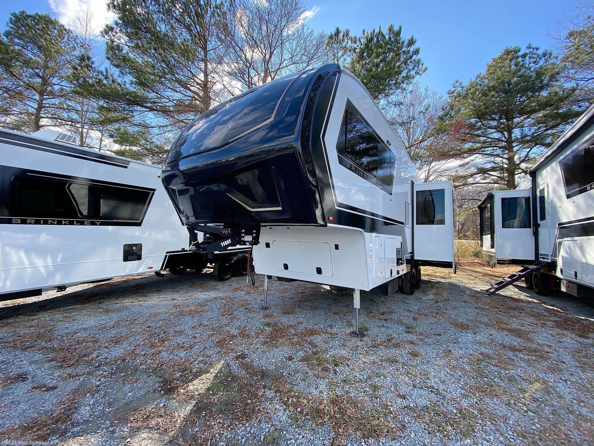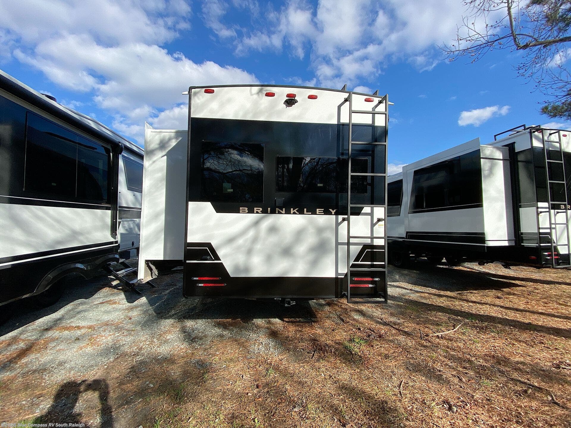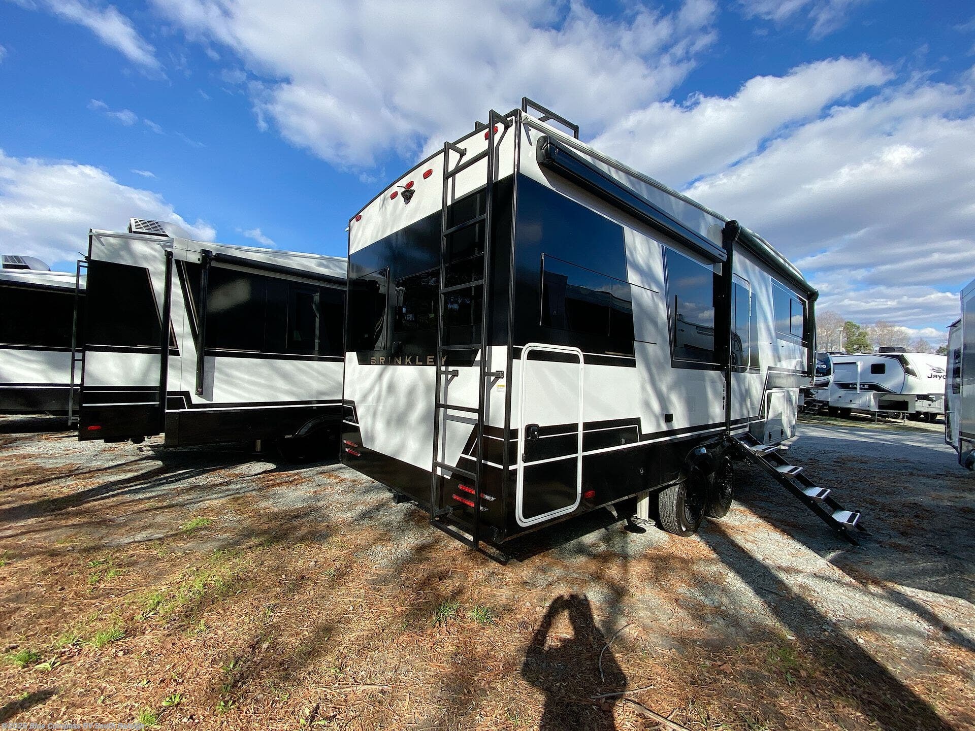 The Brinkley mid-profile Model Z fifth wheels bring you clean lines and an upscale look with plenty of style and exciting new features like the industry first brass plumbing connections. These units also feature an automotive grade front cap, plenty of exterior storage, dual exterior hot and cold showers, and wide stance leveling jacks for easy set up. Residential frameless windows provide a clean look and beautiful views, and ample electrical outlets and USB/USB-C outlets allow all of your electronics and appliances to easily be used and charged.