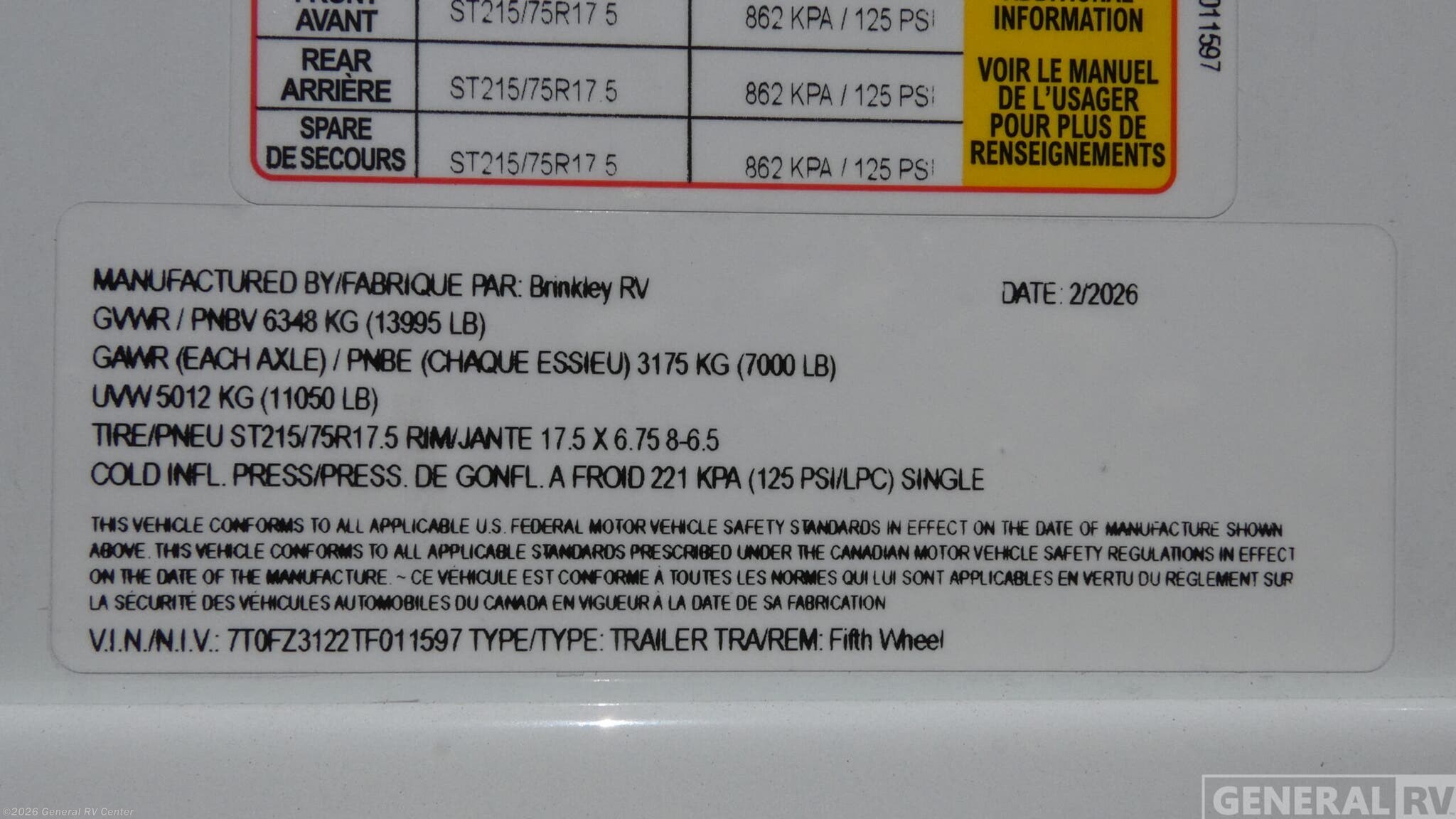 - VIN7T0FZ3122TF011597