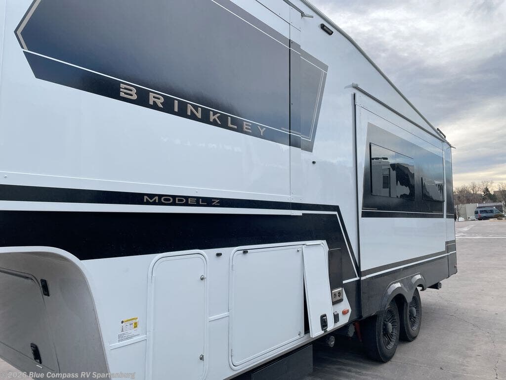 The Brinkley mid-profile Model Z fifth wheels bring you clean lines and an upscale look with plenty of style and exciting new features like the industry first brass plumbing connections. These units also feature an automotive grade front cap, plenty of exterior storage, exterior hot and cold showers, and wide stance leveling jacks for easy set up. Residential frameless windows provide a clean look and beautiful views, and ample electrical outlets and 6 USB/USB-C outlets allow all of your electronics and appliances to easily be used and charged.