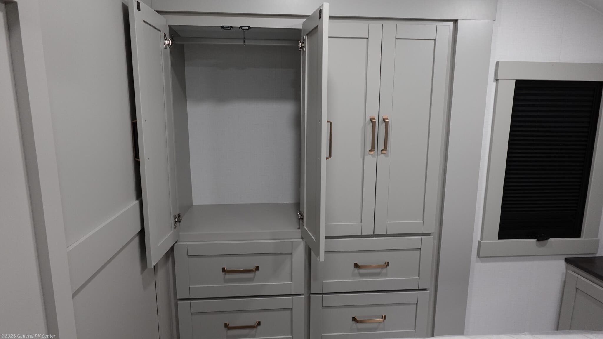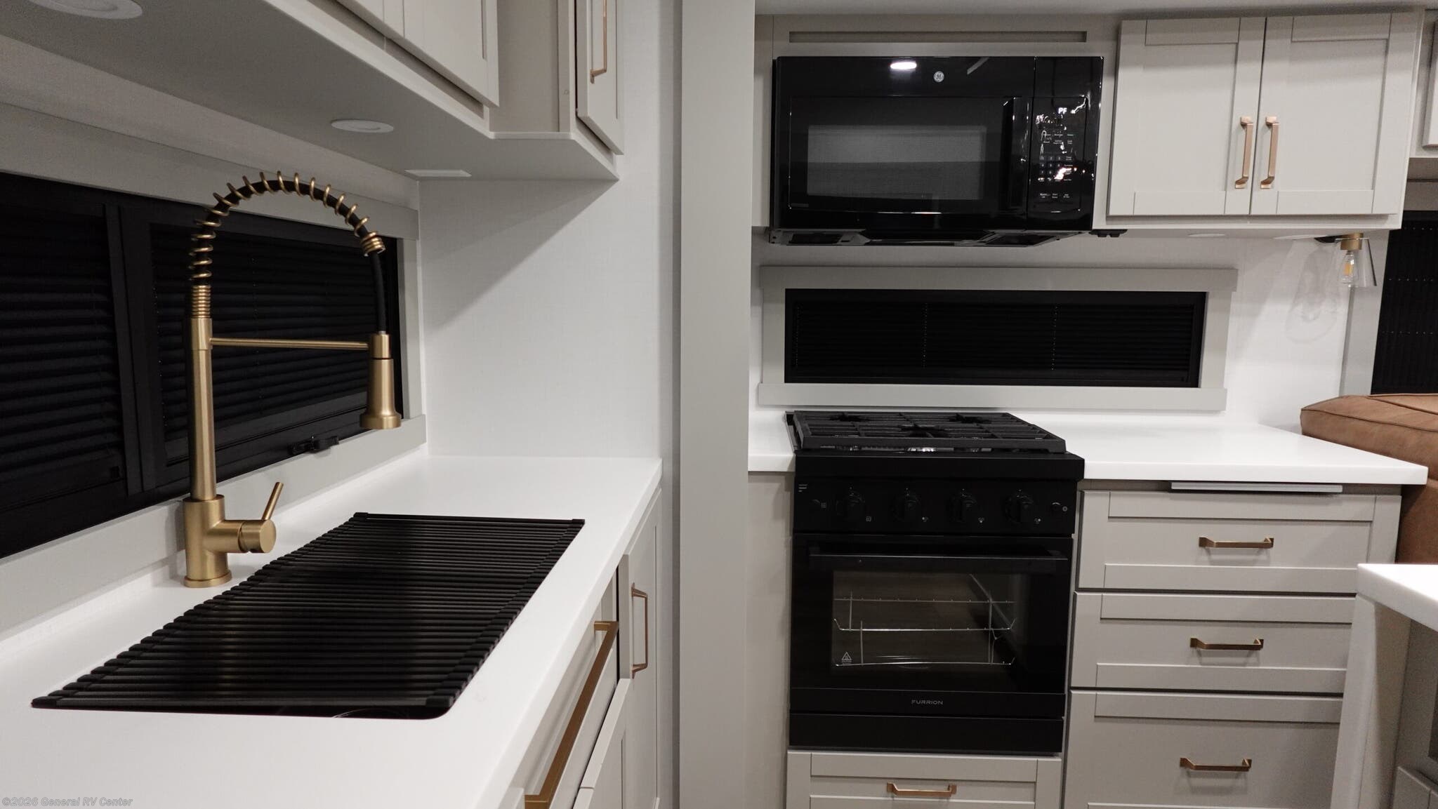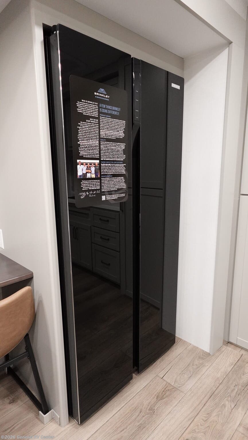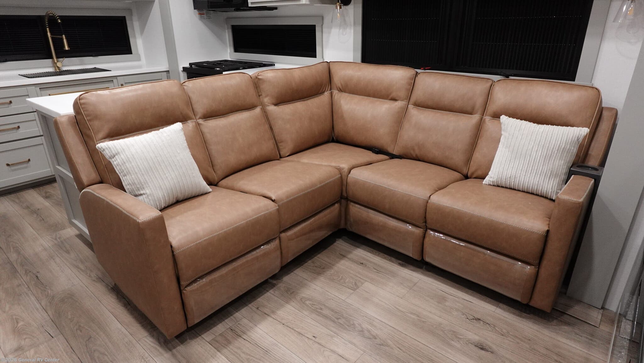 Brinkley Model Z 2700 fifth wheel highlights: L-Sofa with Four Recliners Flip-Up Countertop Fireplace Dual Awnings Shoe Storage Featuring a spacious L-sofa with four recliners and a 65” articulating TV for endless entertainment, this fifth wheel is a great option to get on the road! The convertible dining table/L desk seats up to four people, making it perfect for meals, work, or play. You can cozy up by the fireplace and enjoy quality time with loved ones. Plus, ample shoe storage keeps your gear organized. The kitchen is equipped with solid surface countertops, dishwasher prep, a residential microwave, and a three-burner cooktop. Also, the large pantry with pull-out drawers provides ample storage for your favorite ingredients and cooking essentials. The one-piece fiberglass shower is a highlight of the bathroom, offering a convenient space to get ready, and additional storage is provided by the linen closet. And you will love the front main bedroom featuring a residential queen memory foam mattress with nightstands, outlets, and USB USB-C ports for convenient charging. The Brinkley mid-profile Model Z fifth wheels bring you clean lines and an upscale look with plenty of style and exciting new features like the industry first brass plumbing connections. These units also feature an automotive grade front cap, plenty of exterior storage, exterior hot and cold showers, and wide stance leveling jacks for easy set up. Residential frameless windows provide a clean look and beautiful views, and ample electrical outlets and 6 USB/USB-C outlets allow all of your electronics and appliances to easily be used and charged.