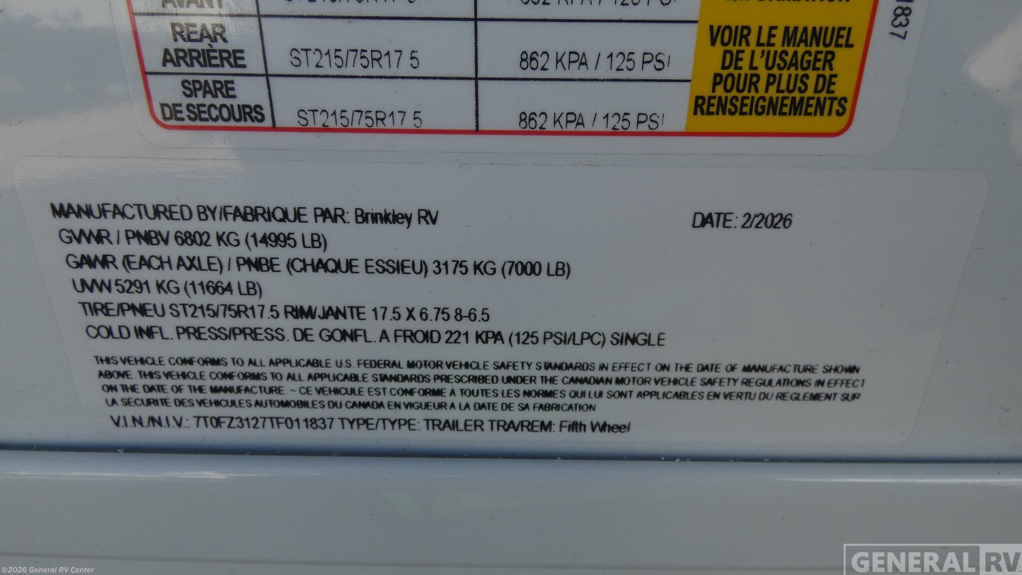 Looking to buy a 2026 Brinkley RV Model Z Fifth Wheel RV?