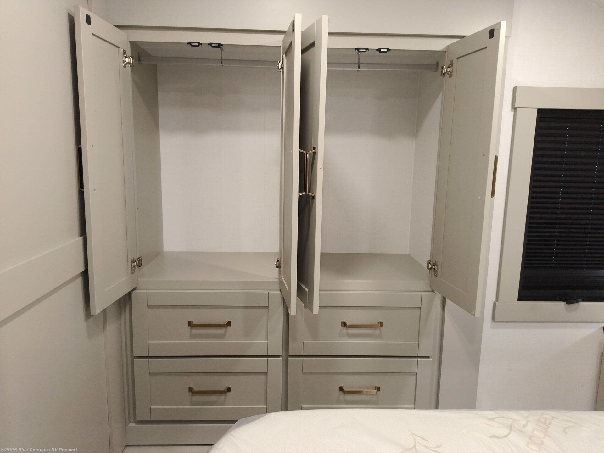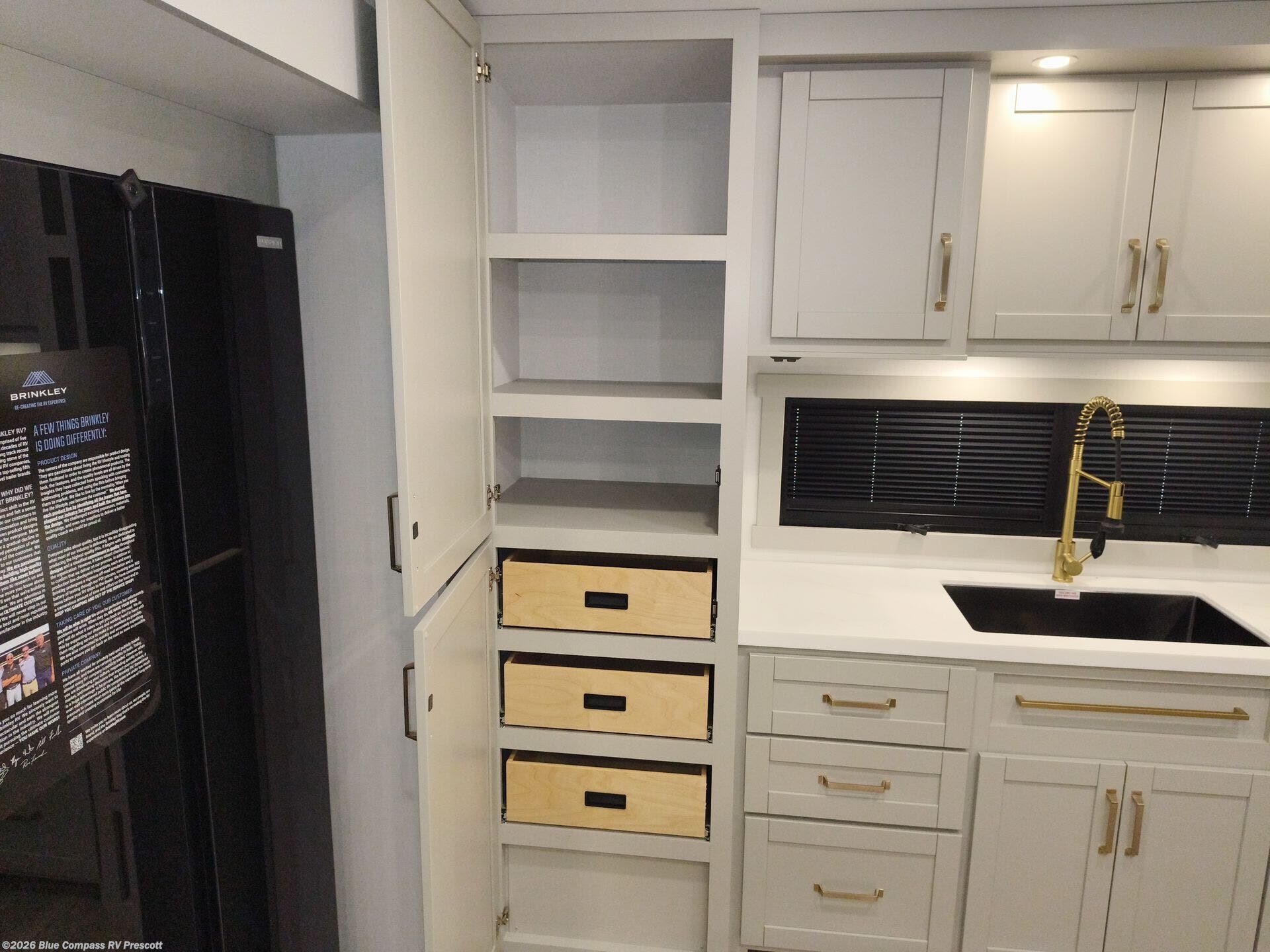 The Brinkley mid-profile Model Z fifth wheels bring you clean lines and an upscale look with plenty of style and exciting new features like the industry first brass plumbing connections. These units also feature an automotive grade front cap, plenty of exterior storage, exterior hot and cold showers, and wide stance leveling jacks for easy set up. Residential frameless windows provide a clean look and beautiful views, and ample electrical outlets and 6 USB/USB-C outlets allow all of your electronics and appliances to easily be used and charged.