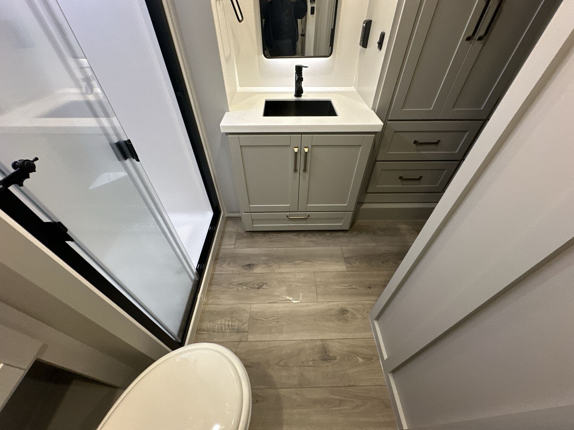 The Brinkley mid-profile Model Z fifth wheels bring you clean lines and an upscale look with plenty of style and exciting new features like the industry first brass plumbing connections. These units also feature an automotive grade front cap, plenty of exterior storage, exterior hot and cold showers, and wide stance leveling jacks for easy set up. Residential frameless windows provide a clean look and beautiful views, and ample electrical outlets and 6 USB/USB-C outlets allow all of your electronics and appliances to easily be used and charged.