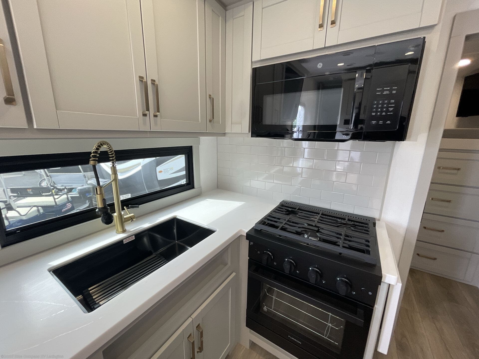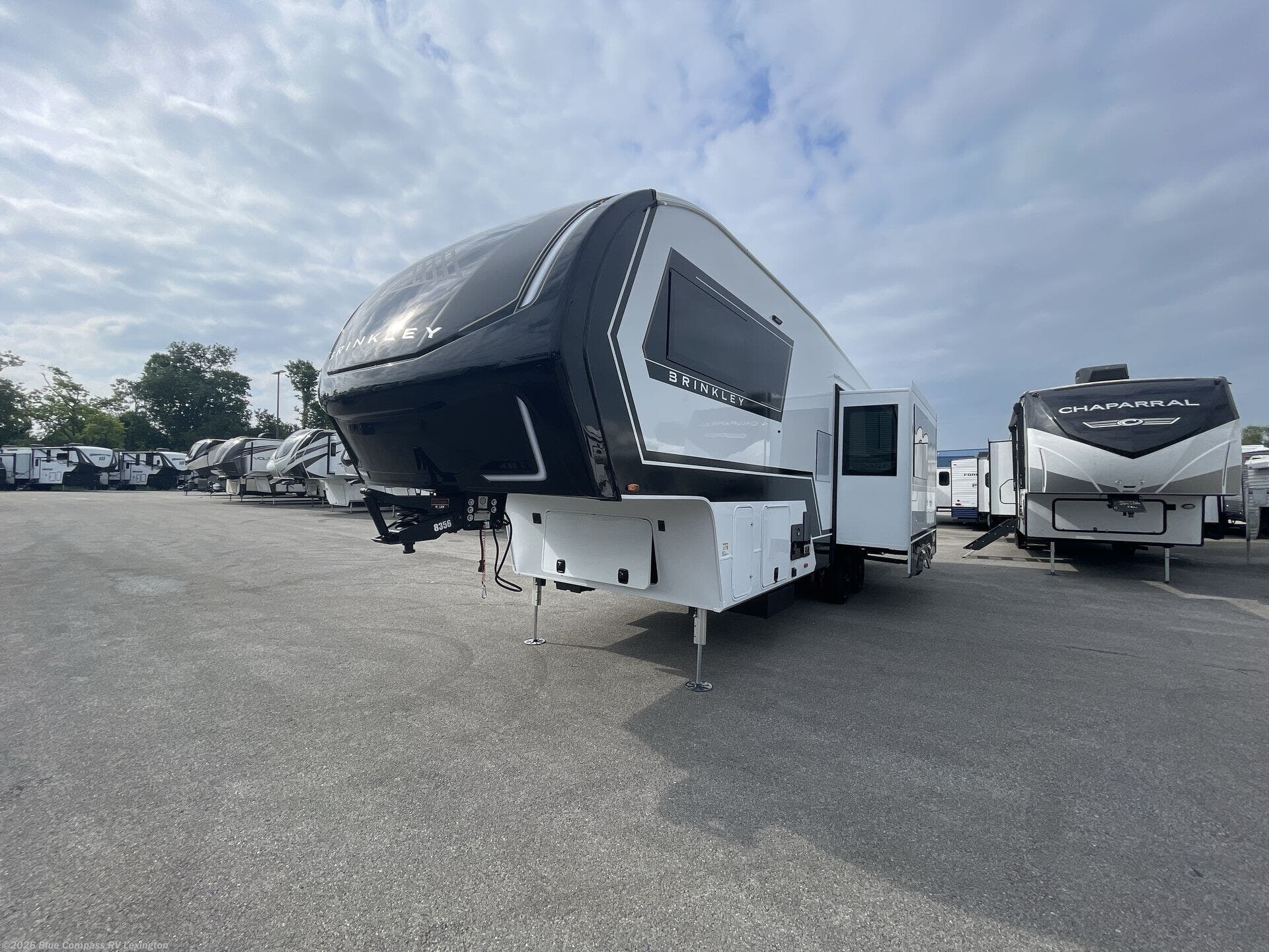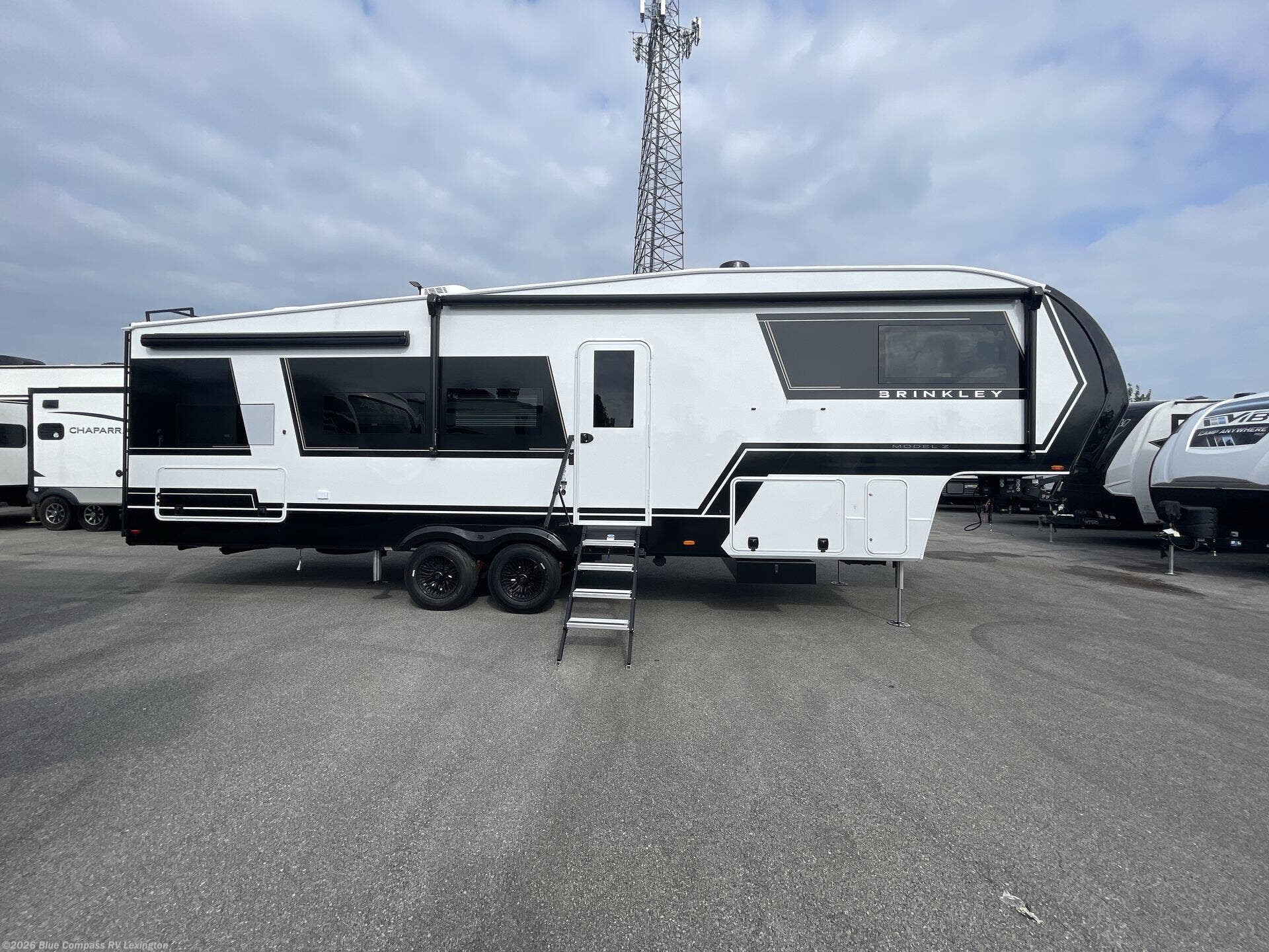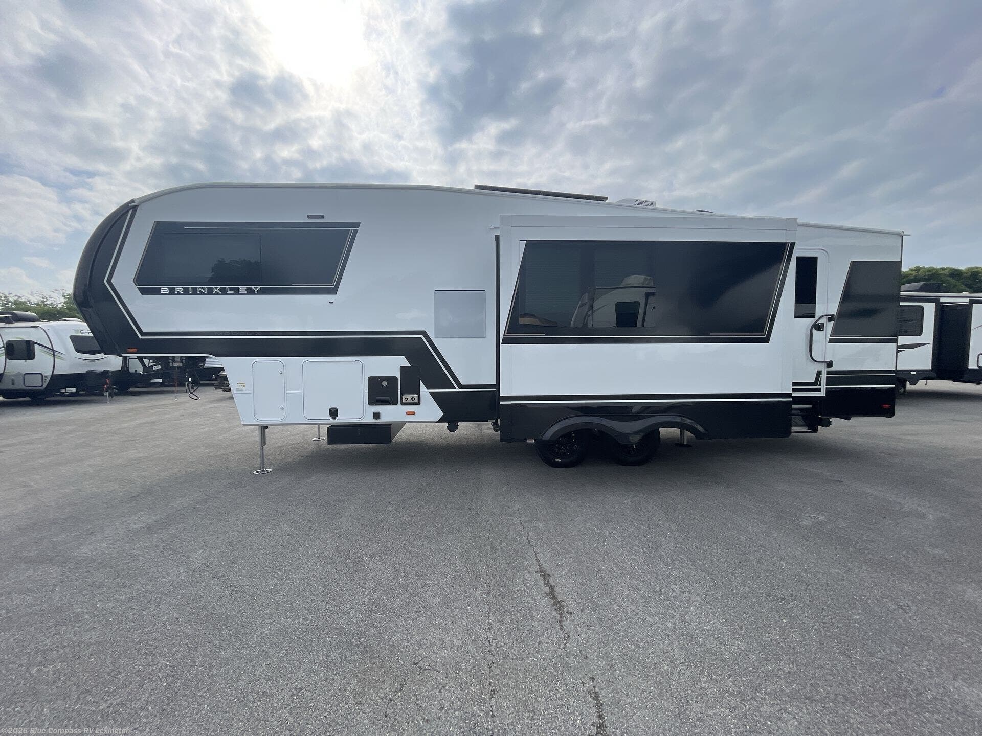 The Brinkley mid-profile Model Z fifth wheels bring you clean lines and an upscale look with plenty of style and exciting new features like the industry first brass plumbing connections. These units also feature an automotive grade front cap, plenty of exterior storage, exterior hot and cold showers, and wide stance leveling jacks for easy set up. Residential frameless windows provide a clean look and beautiful views, and ample electrical outlets and 6 USB/USB-C outlets allow all of your electronics and appliances to easily be used and charged.