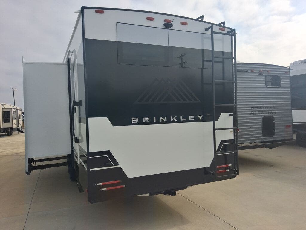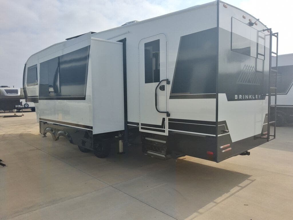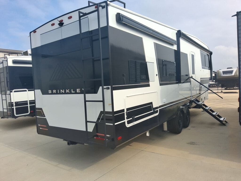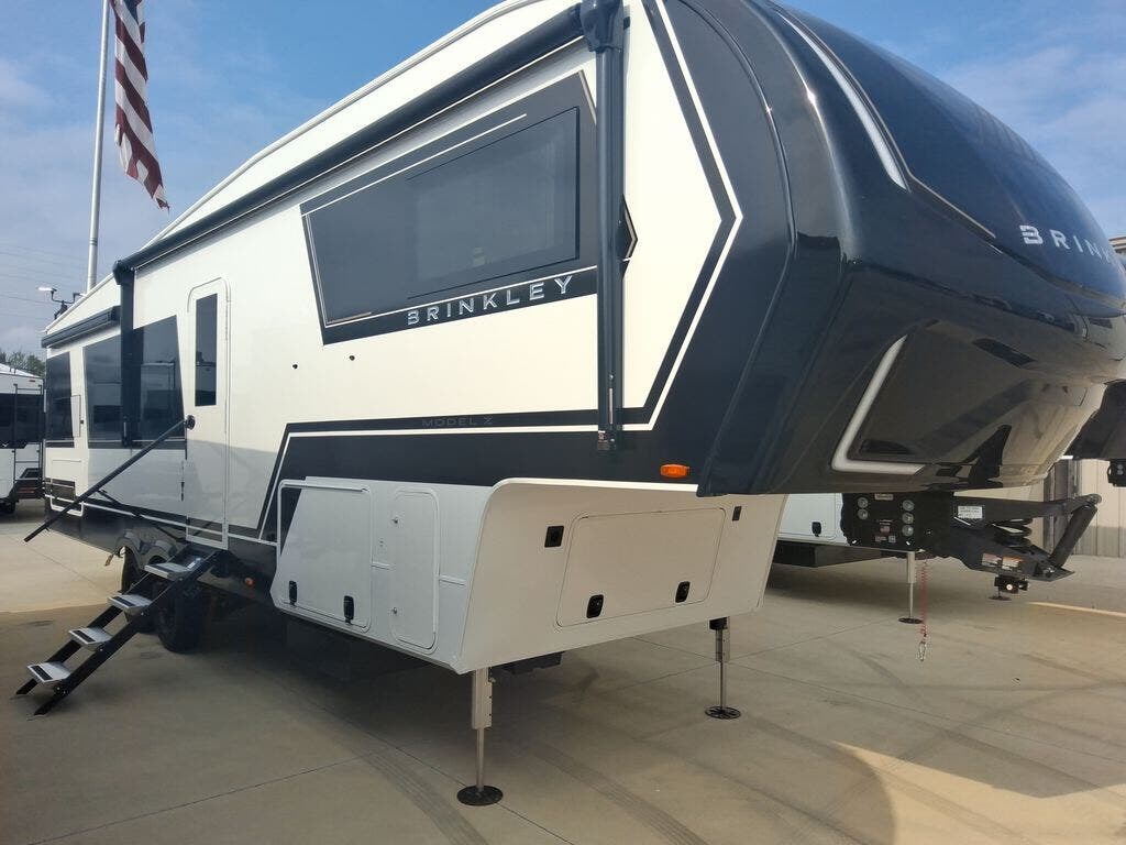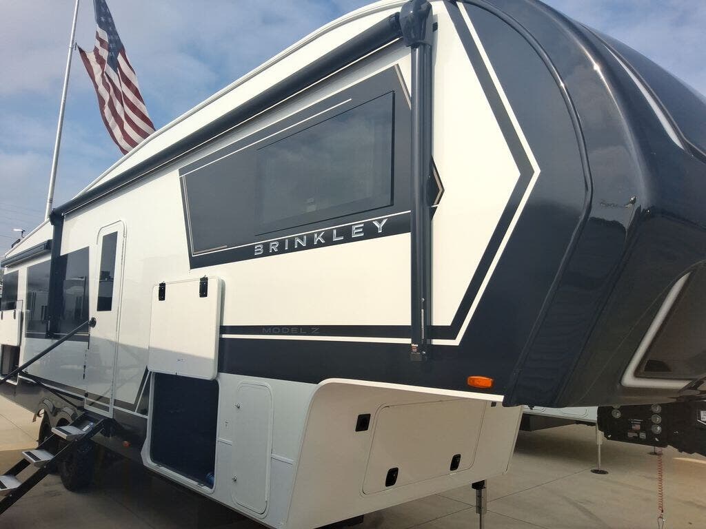 The Brinkley mid-profile Model Z fifth wheels bring you clean lines and an upscale look with plenty of style and exciting new features like the industry first brass plumbing connections. These units also feature an automotive grade front cap, plenty of exterior storage, exterior hot and cold showers, and wide stance leveling jacks for easy set up. Residential frameless windows provide a clean look and beautiful views, and ample electrical outlets and 6 USB/USB-C outlets allow all of your electronics and appliances to easily be used and charged.
