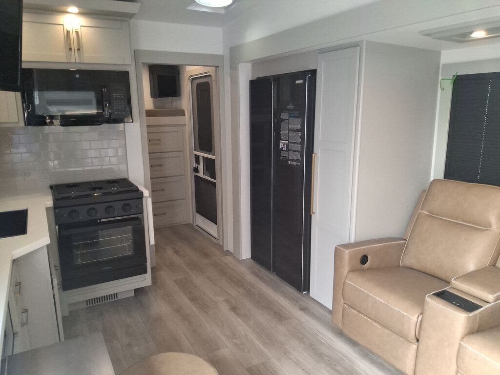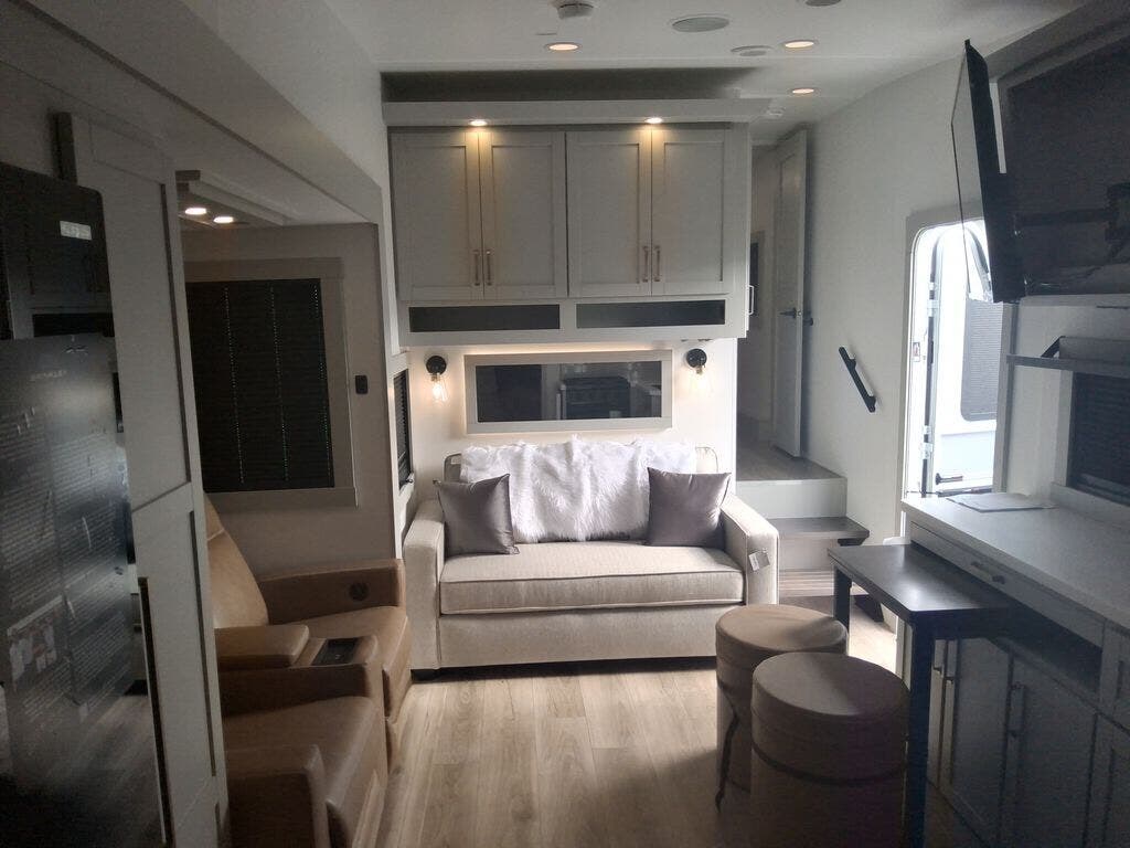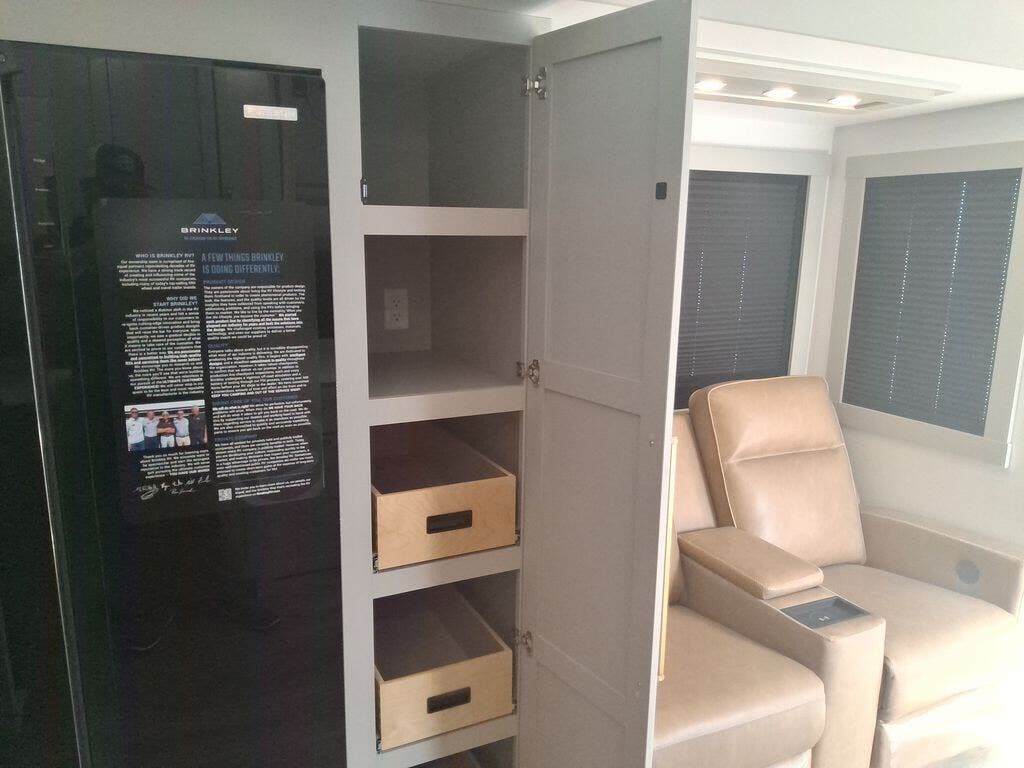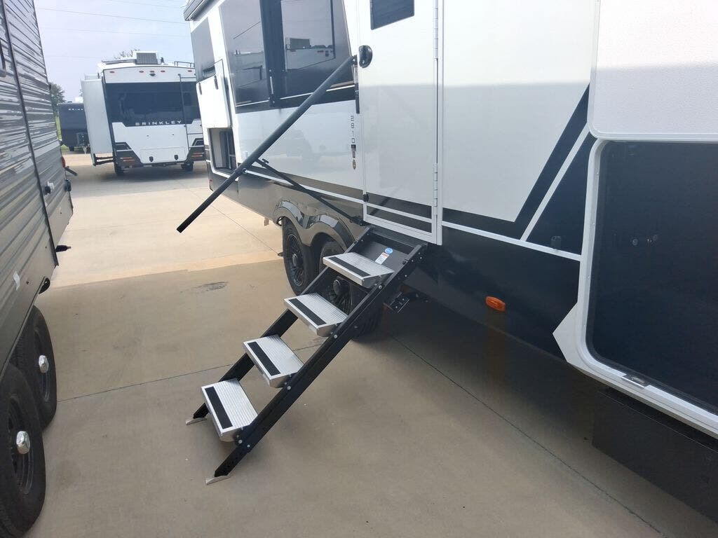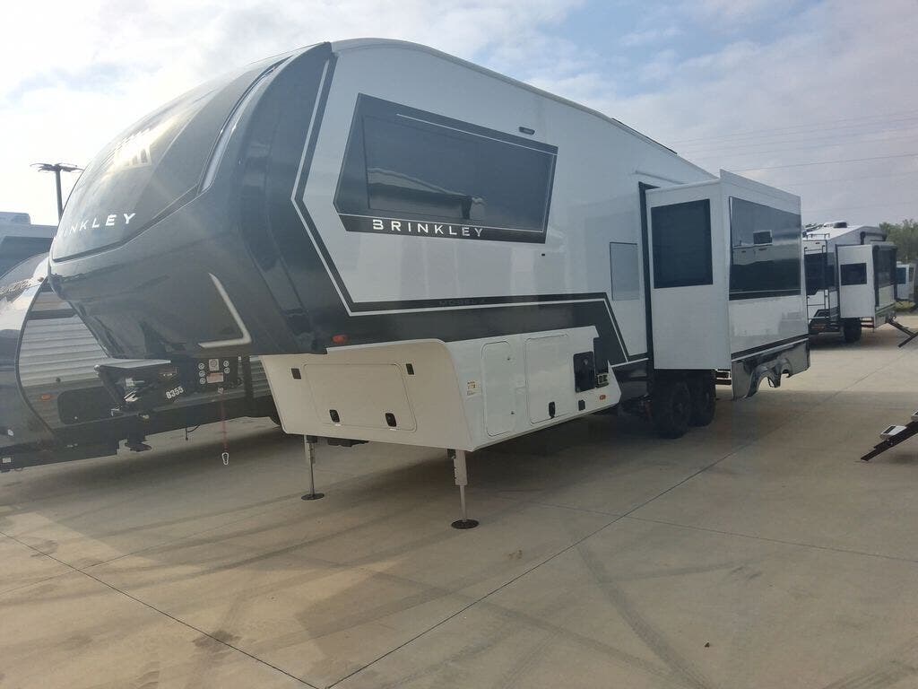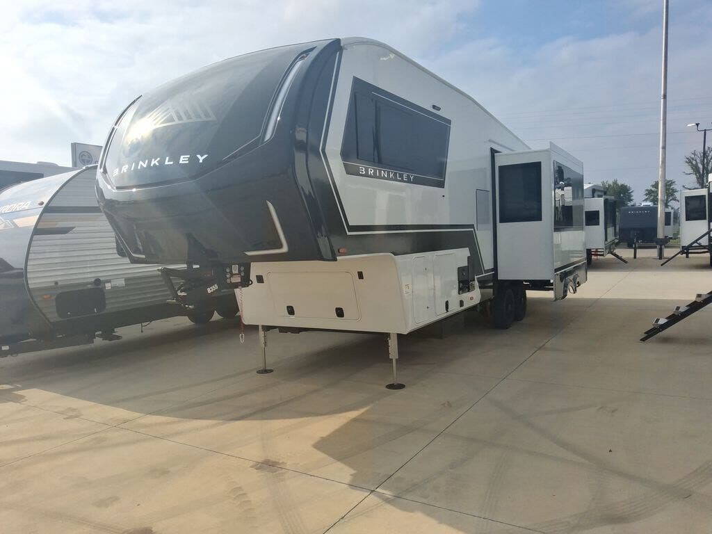 The Brinkley mid-profile Model Z fifth wheels bring you clean lines and an upscale look with plenty of style and exciting new features like the industry first brass plumbing connections. These units also feature an automotive grade front cap, plenty of exterior storage, exterior hot and cold showers, and wide stance leveling jacks for easy set up. Residential frameless windows provide a clean look and beautiful views, and ample electrical outlets and 6 USB/USB-C outlets allow all of your electronics and appliances to easily be used and charged.