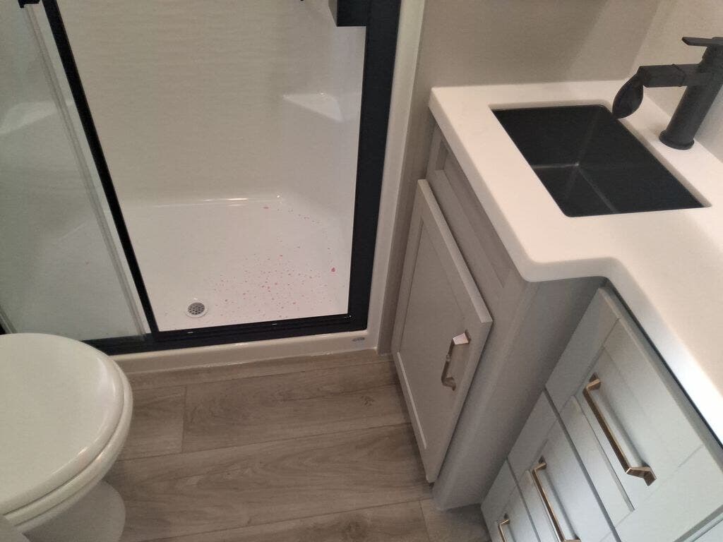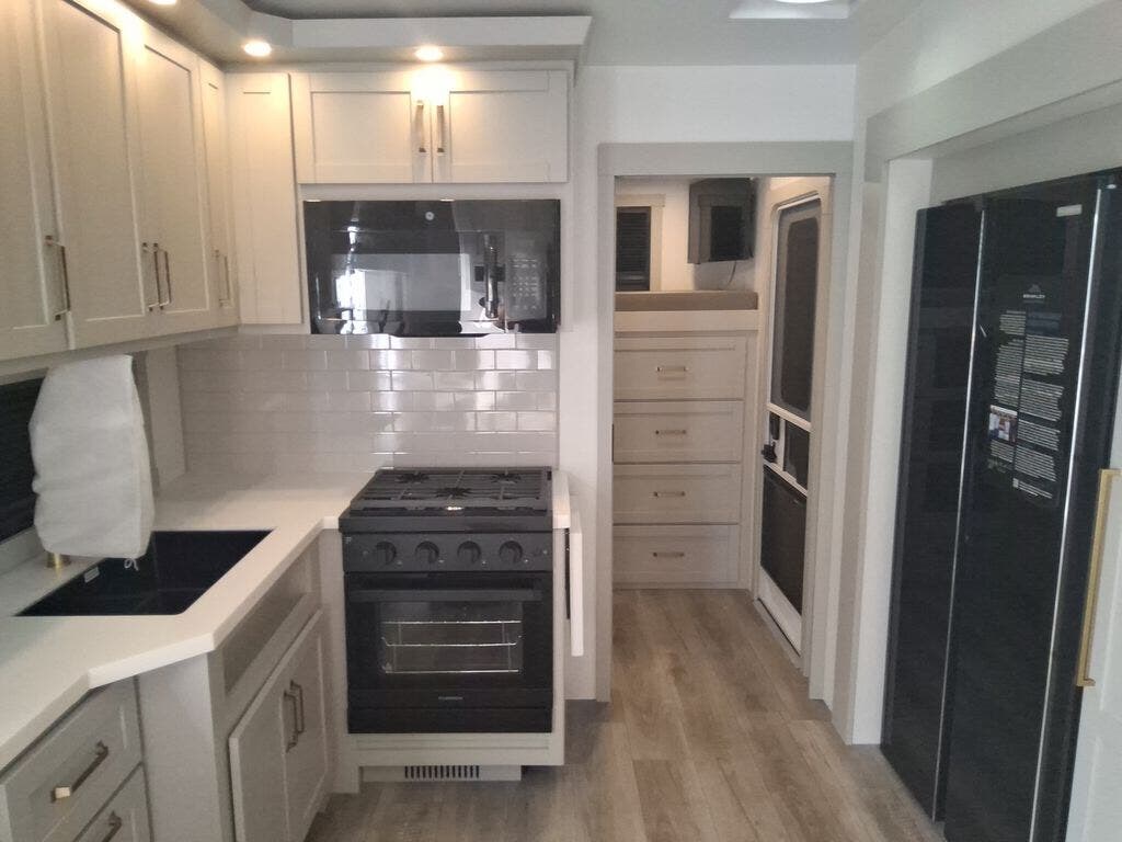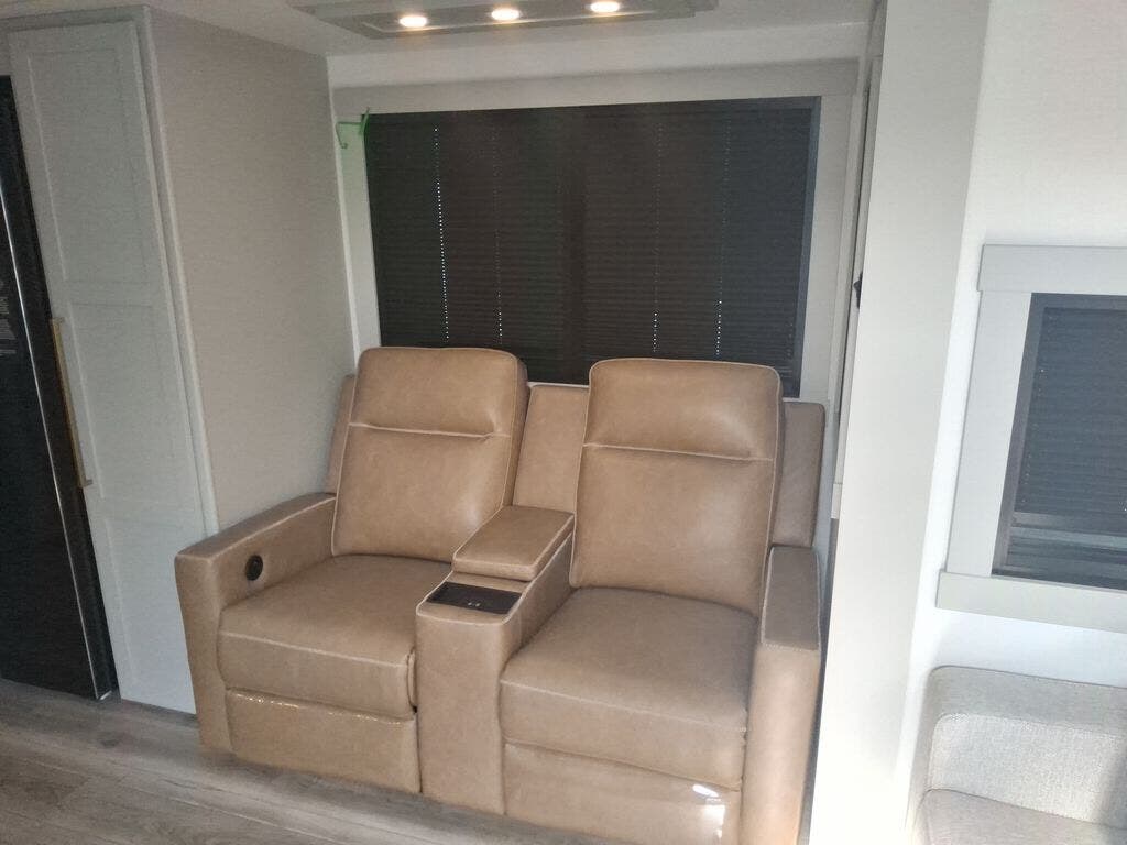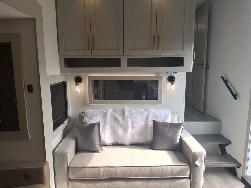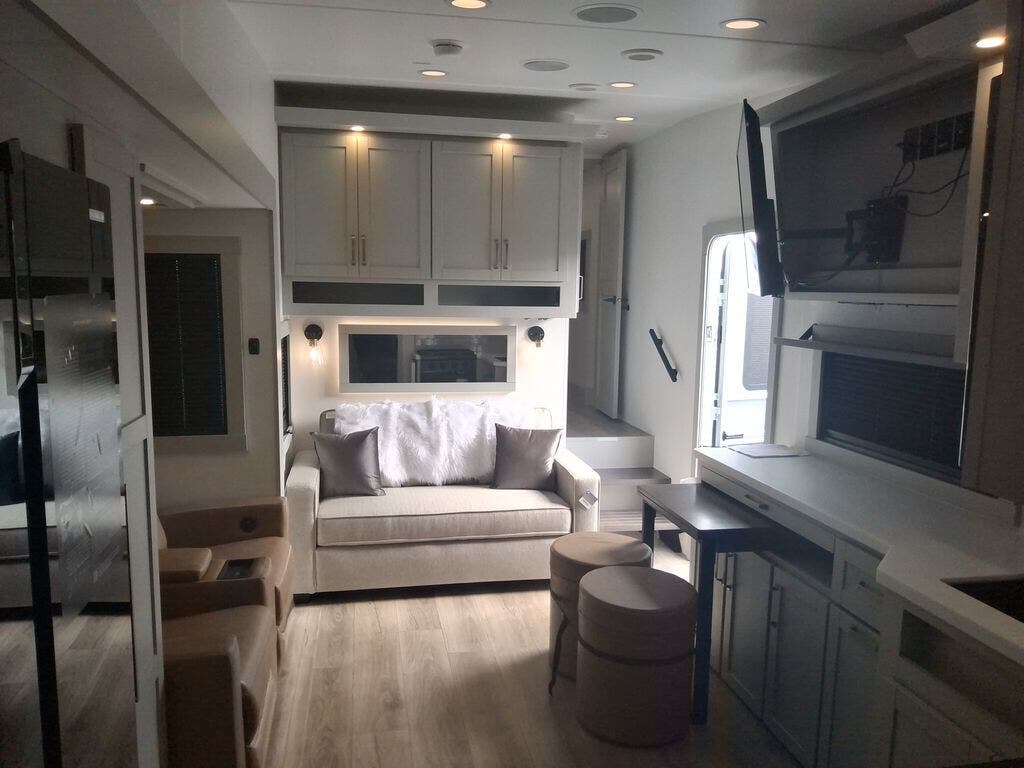 The Brinkley mid-profile Model Z fifth wheels bring you clean lines and an upscale look with plenty of style and exciting new features like the industry first brass plumbing connections. These units also feature an automotive grade front cap, plenty of exterior storage, exterior hot and cold showers, and wide stance leveling jacks for easy set up. Residential frameless windows provide a clean look and beautiful views, and ample electrical outlets and 6 USB/USB-C outlets allow all of your electronics and appliances to easily be used and charged.