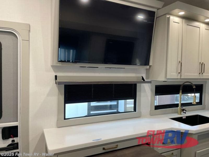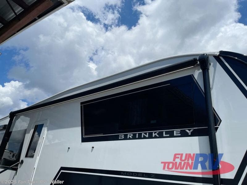The Brinkley mid-profile Model Z fifth wheels bring you clean lines and an upscale look with plenty of style and exciting new features like the industry first brass plumbing connections. These units also feature an automotive grade front cap, plenty of exterior storage, exterior hot and cold showers, and wide stance leveling jacks for easy set up. Residential frameless windows provide a clean look and beautiful views, and ample electrical outlets and 6 USB/USB-C outlets allow all of your electronics and appliances to easily be used and charged.
