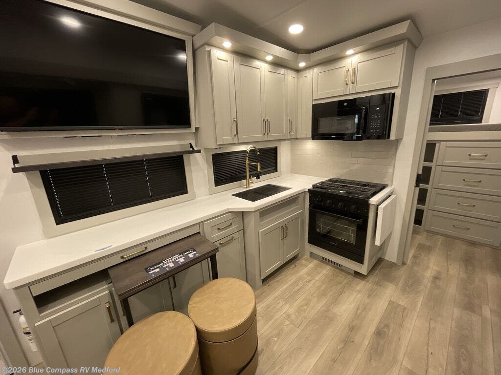 The Brinkley mid-profile Model Z fifth wheels bring you clean lines and an upscale look with plenty of style and exciting new features like the industry first brass plumbing connections. These units also feature an automotive grade front cap, plenty of exterior storage, exterior hot and cold showers, and wide stance leveling jacks for easy set up. Residential frameless windows provide a clean look and beautiful views, and ample electrical outlets and 6 USB/USB-C outlets allow all of your electronics and appliances to easily be used and charged.