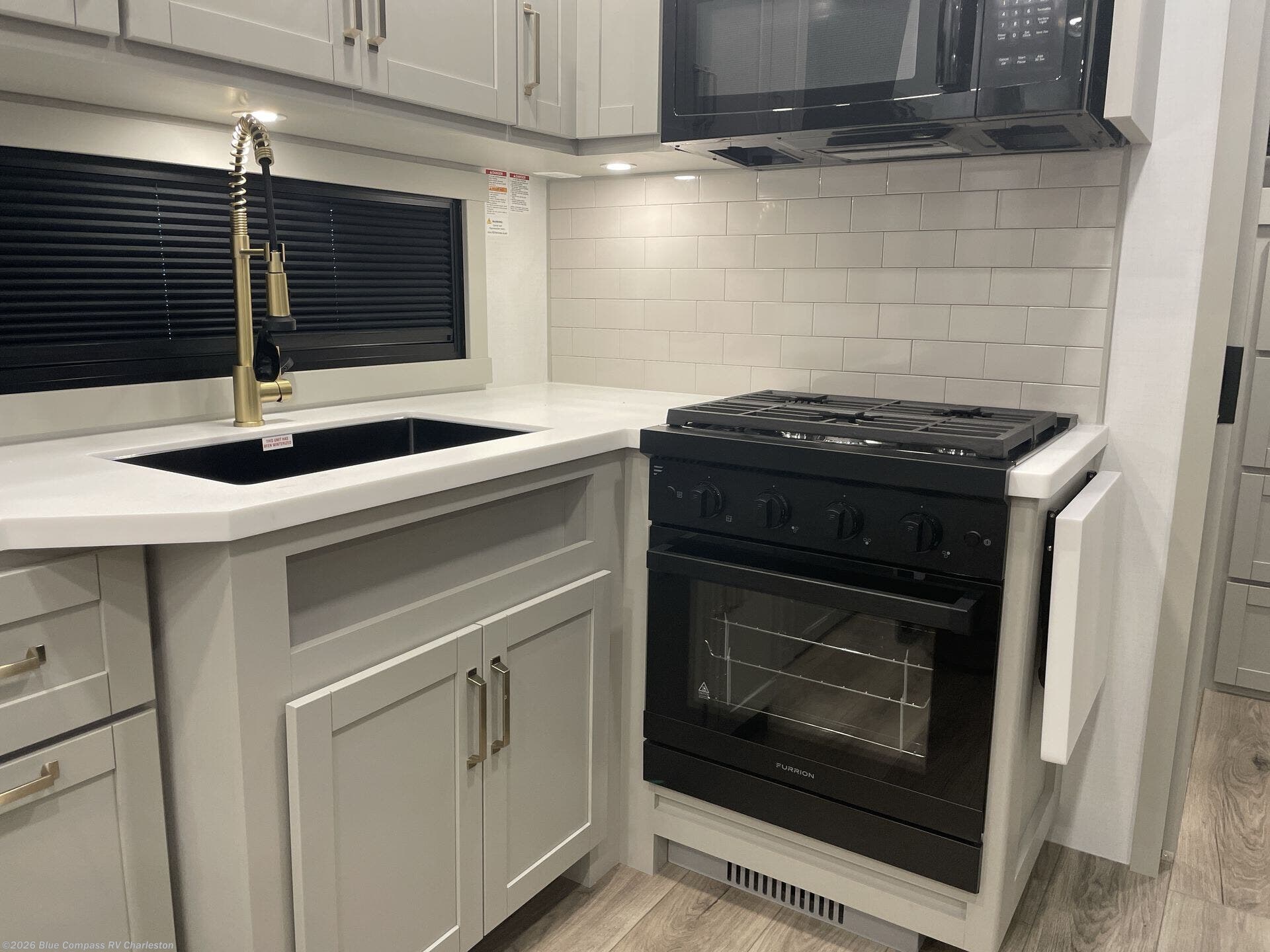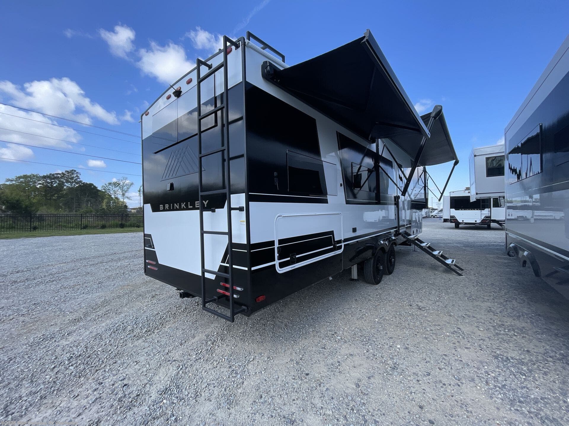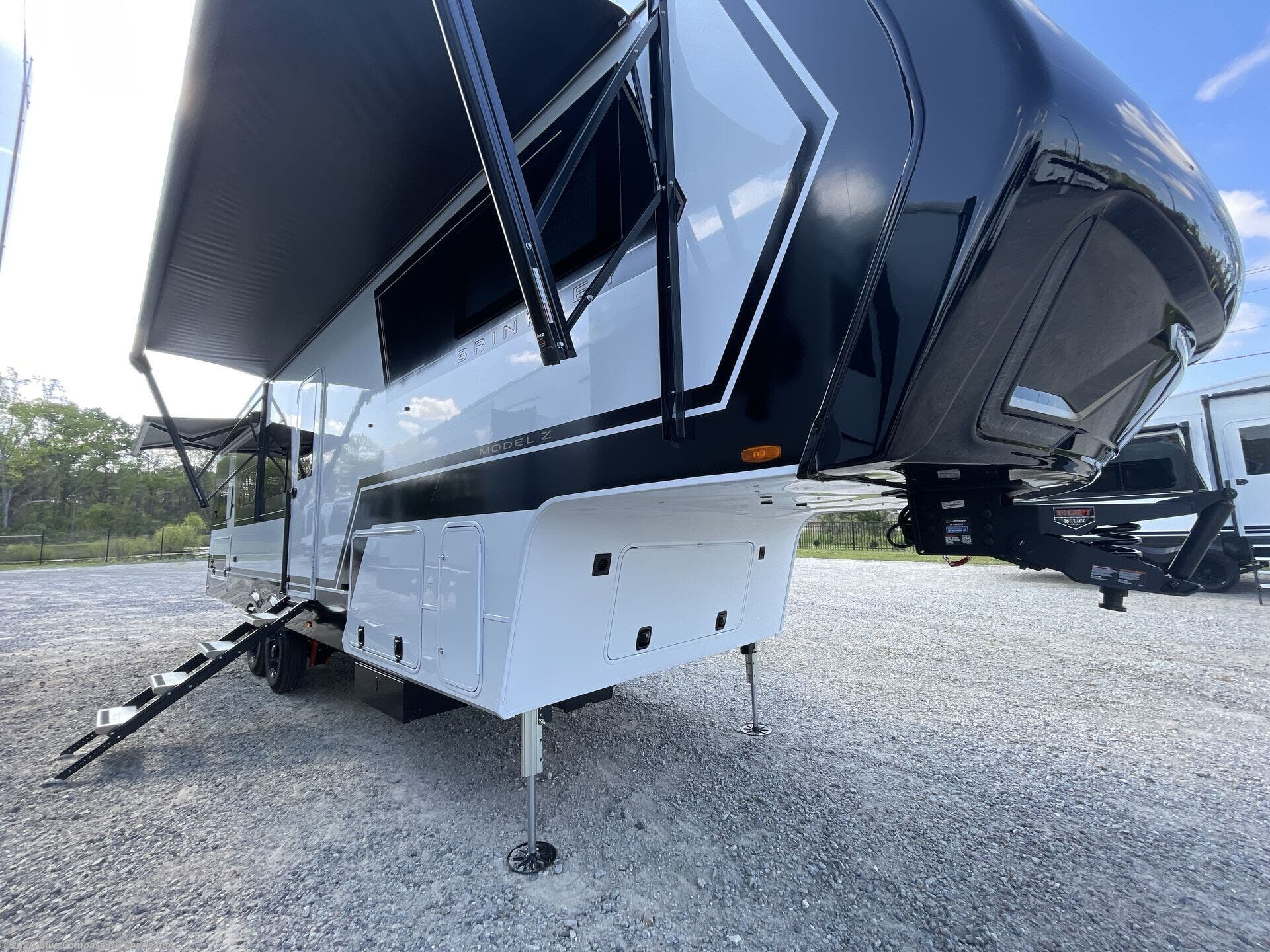 The Brinkley mid-profile Model Z fifth wheels bring you clean lines and an upscale look with plenty of style and exciting new features like the industry first brass plumbing connections. These units also feature an automotive grade front cap, plenty of exterior storage, exterior hot and cold showers, and wide stance leveling jacks for easy set up. Residential frameless windows provide a clean look and beautiful views, and ample electrical outlets and 6 USB/USB-C outlets allow all of your electronics and appliances to easily be used and charged.