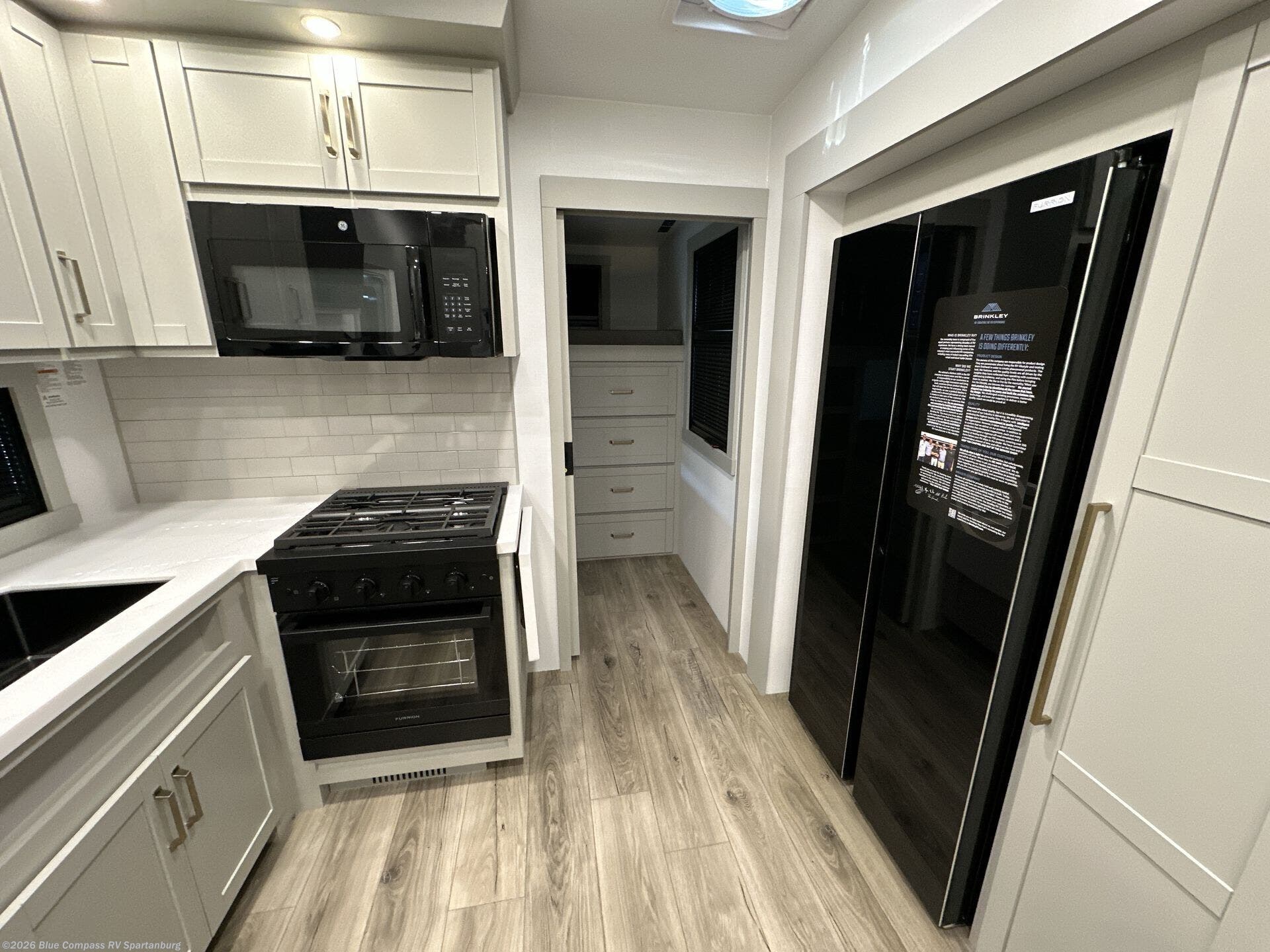 The Brinkley mid-profile Model Z fifth wheels bring you clean lines and an upscale look with plenty of style and exciting new features like the industry first brass plumbing connections. These units also feature an automotive grade front cap, plenty of exterior storage, exterior hot and cold showers, and wide stance leveling jacks for easy set up. Residential frameless windows provide a clean look and beautiful views, and ample electrical outlets and 6 USB/USB-C outlets allow all of your electronics and appliances to easily be used and charged.