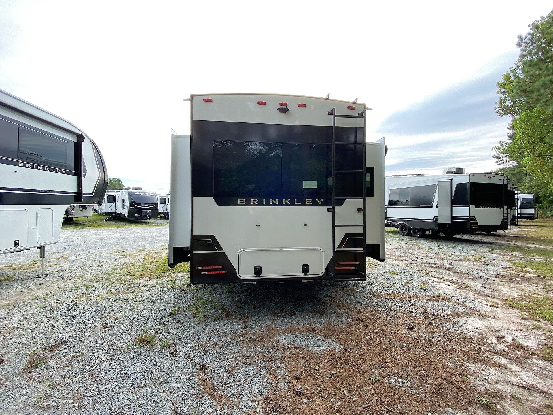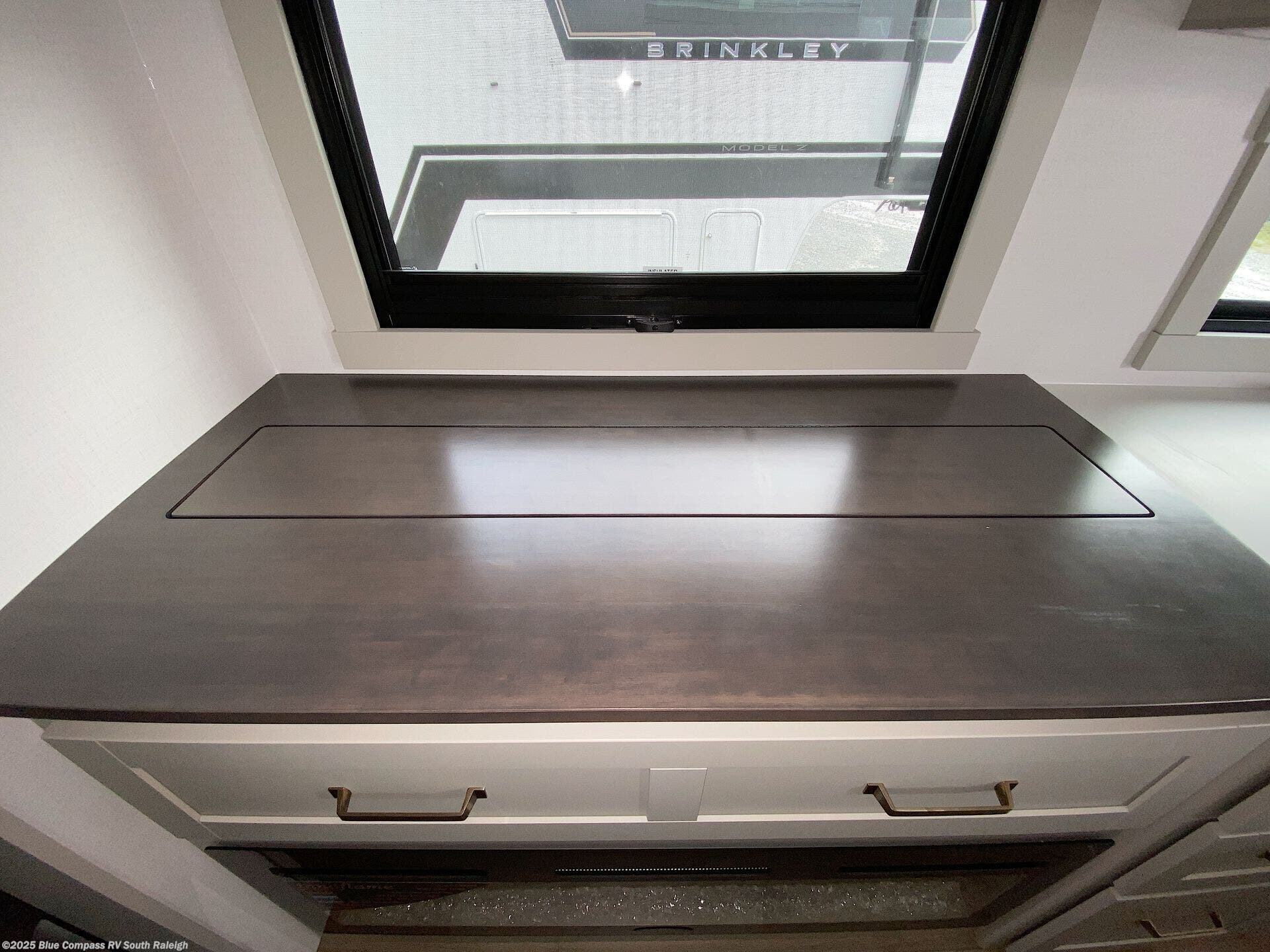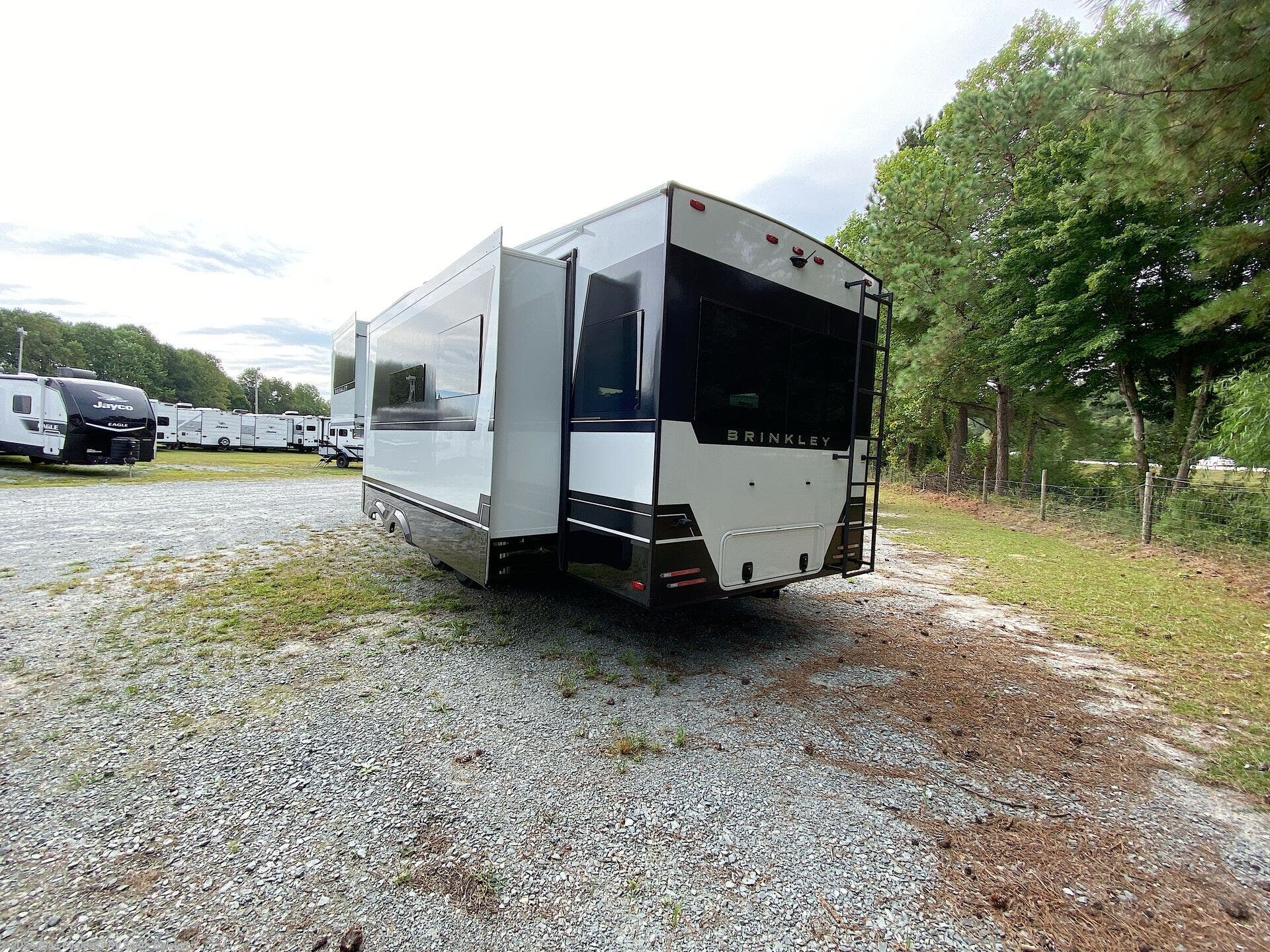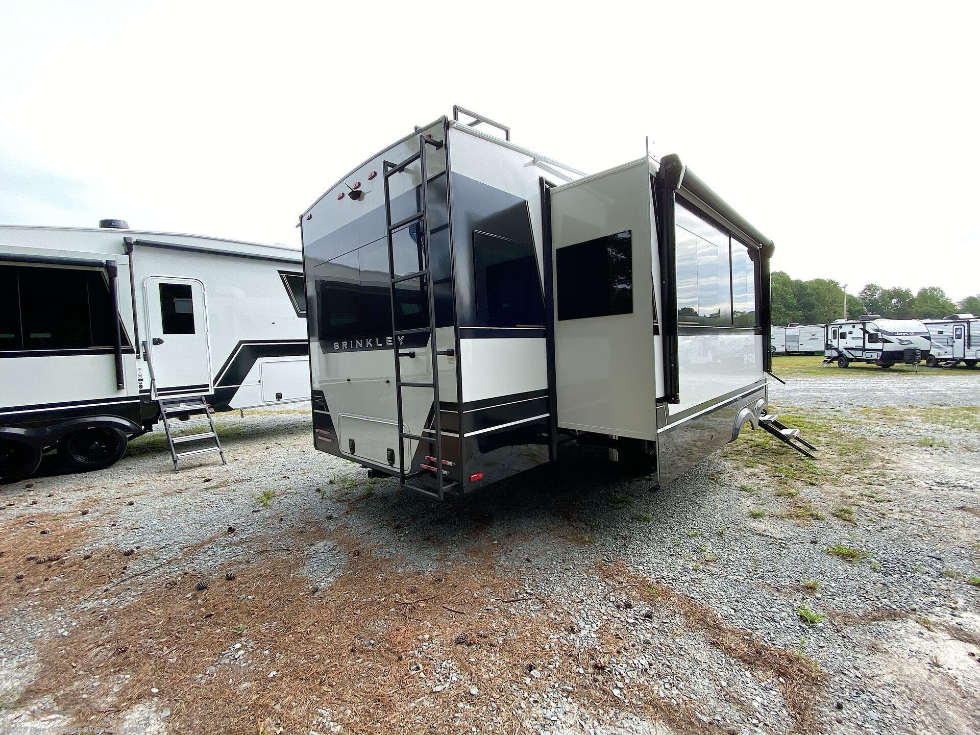The Brinkley mid-profile Model Z fifth wheels bring you clean lines and an upscale look with plenty of style and exciting new features like the industry first brass plumbing connections. These units also feature an automotive grade front cap, plenty of exterior storage, dual exterior hot and cold showers, and wide stance leveling jacks for easy set up. Residential frameless windows provide a clean look and beautiful views, and ample electrical outlets and USB/USB-C outlets allow all of your electronics and appliances to easily be used and charged.