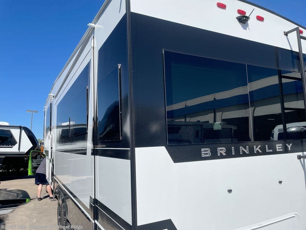 The Brinkley mid-profile Model Z fifth wheels bring you clean lines and an upscale look with plenty of style and exciting new features like the industry first brass plumbing connections. These units also feature an automotive grade front cap, plenty of exterior storage, dual exterior hot and cold showers, and wide stance leveling jacks for easy set up. Residential frameless windows provide a clean look and beautiful views, and ample electrical outlets and USB/USB-C outlets allow all of your electronics and appliances to easily be used and charged.