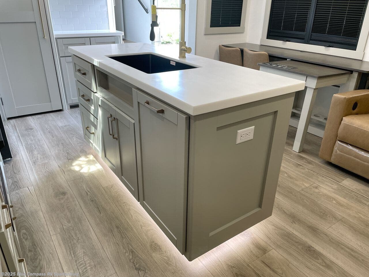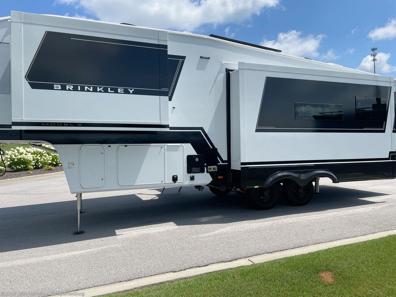The Brinkley mid-profile Model Z fifth wheels bring you clean lines and an upscale look with plenty of style and exciting new features like the industry first brass plumbing connections. These units also feature an automotive grade front cap, plenty of exterior storage, dual exterior hot and cold showers, and wide stance leveling jacks for easy set up. Residential frameless windows provide a clean look and beautiful views, and ample electrical outlets and USB/USB-C outlets allow all of your electronics and appliances to easily be used and charged.