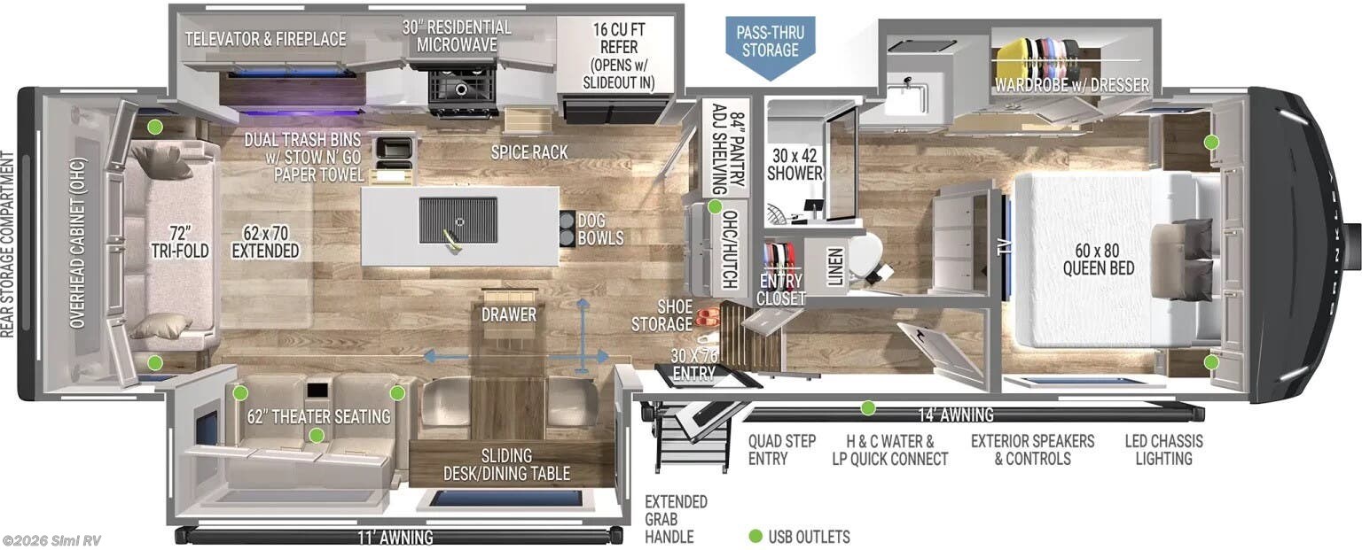 Maximum Exterior Storage: Massive Passthrough & Rear Storage