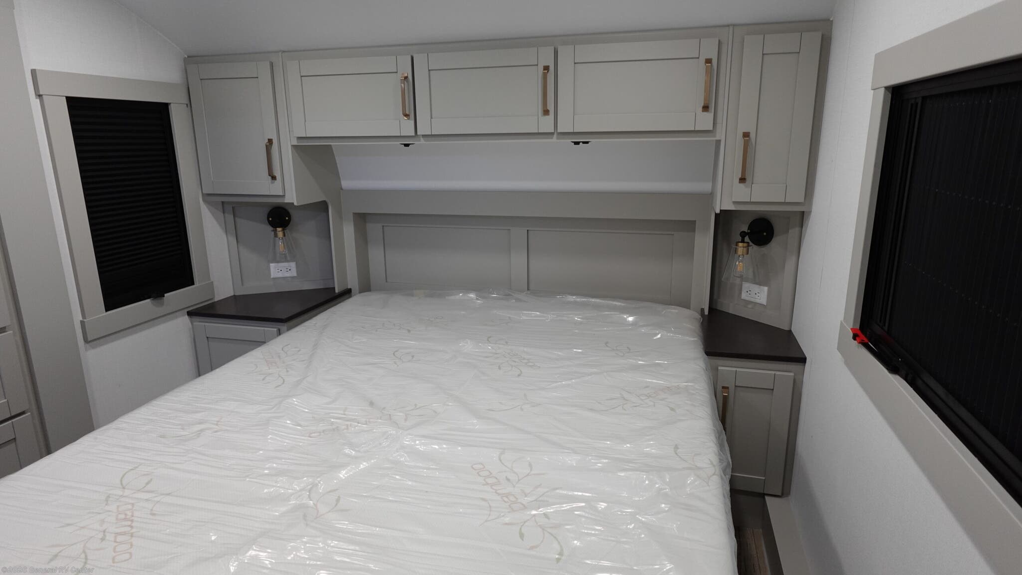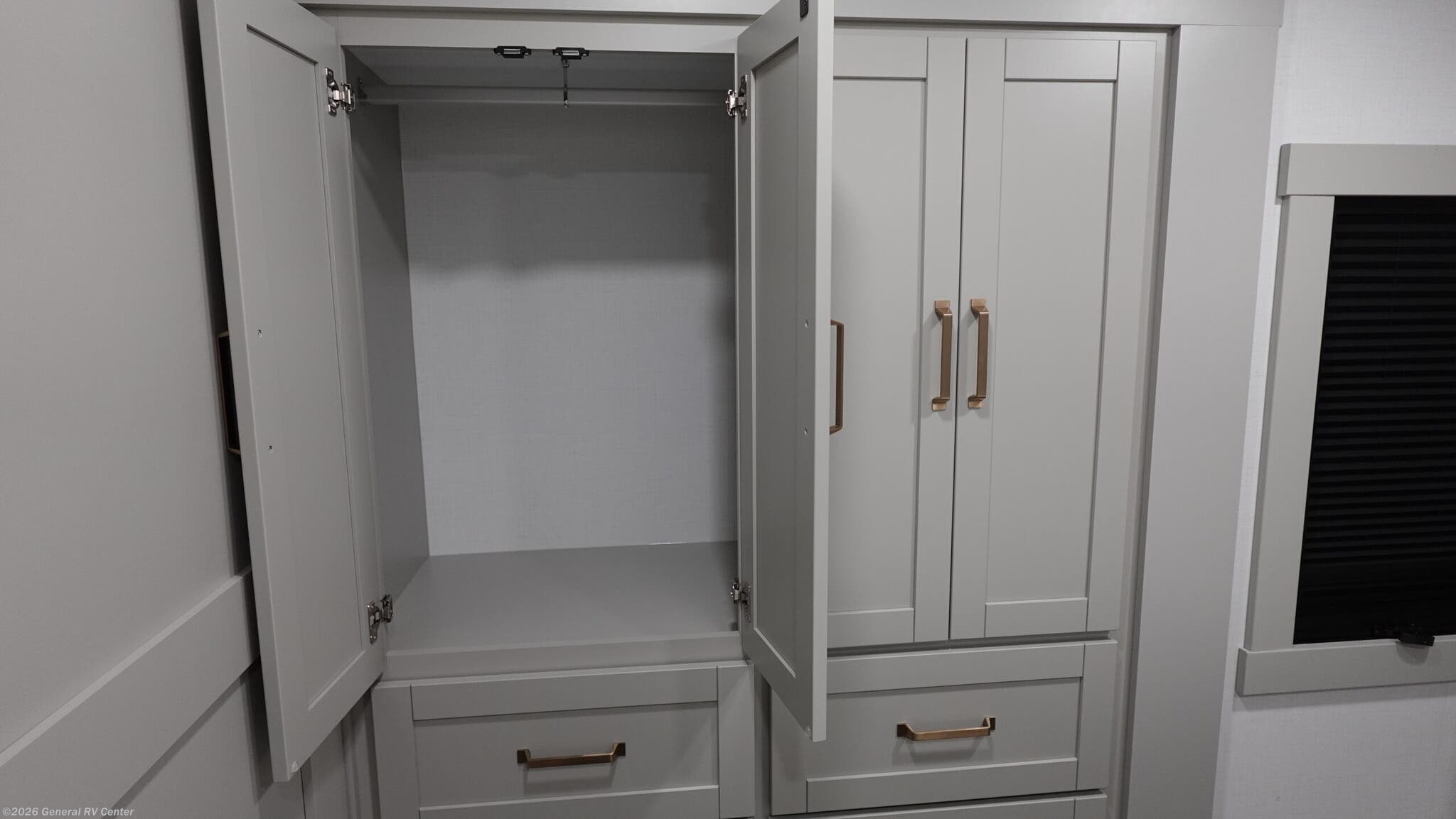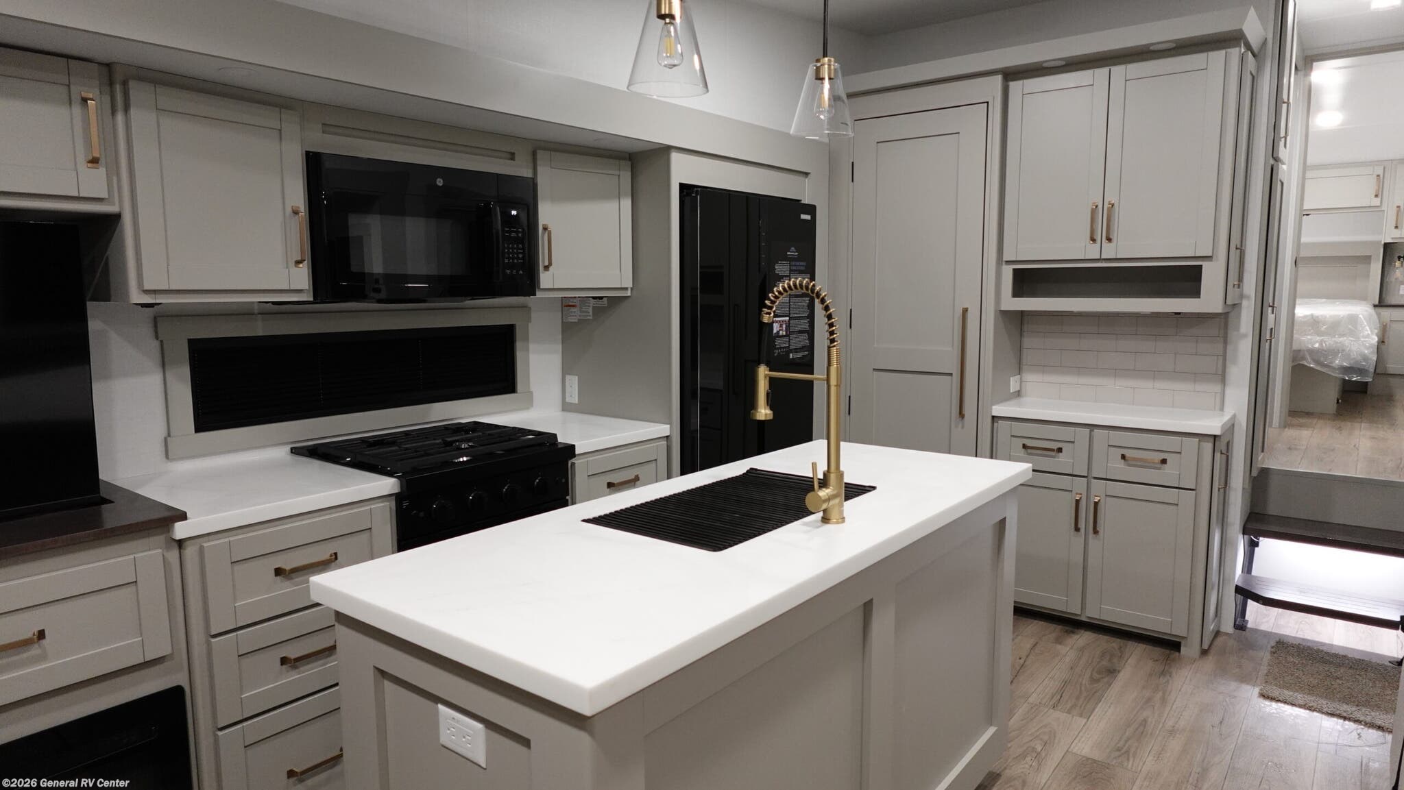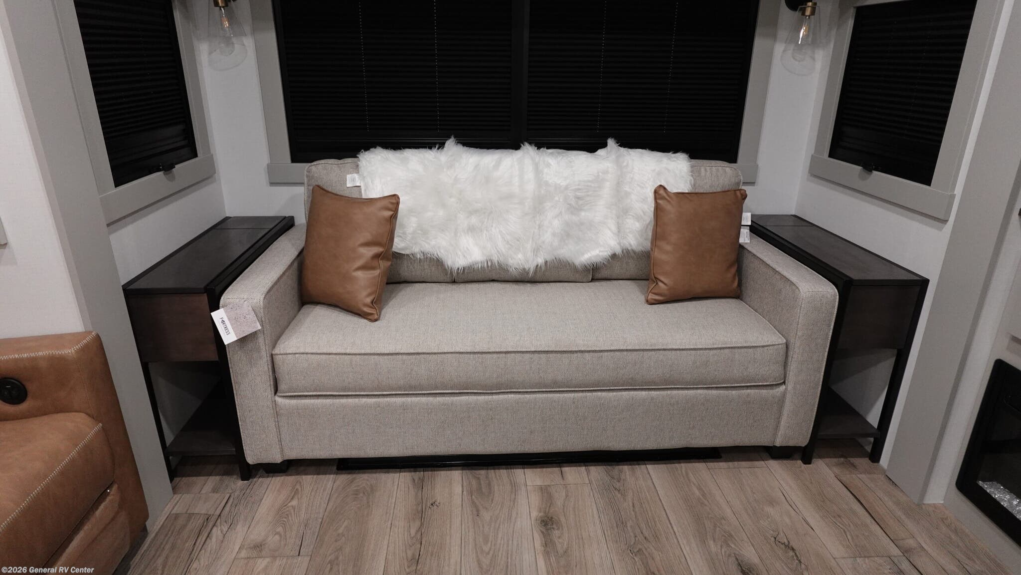 Step into the future of RV living with the 2026 Brinkley Model Z 2900, where luxury meets practicality. This spacious 32.92-foot haven is designed to accommodate up to four sleepers comfortably, featuring a cozy queen bed and a versatile convertible sleeping area. The rear living space is a perfect retreat, boasting dual tri-fold sofas and a 60" theater seating arrangement, ensuring you and your guests can relax in style. The center kitchen is a culinary enthusiast's dream, equipped with a full-size electric refrigerator, a three-burner cooktop, and a farmhouse sink, all set beneath a 30" residential microwave and a telescoping entertainment center with a fireplace. The thoughtful design extends to the front bedroom, offering a peaceful sanctuary with ample wardrobe space and a dresser. The center bath, with its 30" x 42" shower, provides a refreshing experience, enhanced by the convenience of a linen closet. With three slides, two powered retractable awnings, and a generous cargo capacity of 3321 pounds, this RV is perfect for extended adventures. The Model Z 2900 is not just a vehicle; it's an invitation to explore the open road with all the comforts of home. For more details, visit your nearest General RV dealership and start your journey today!