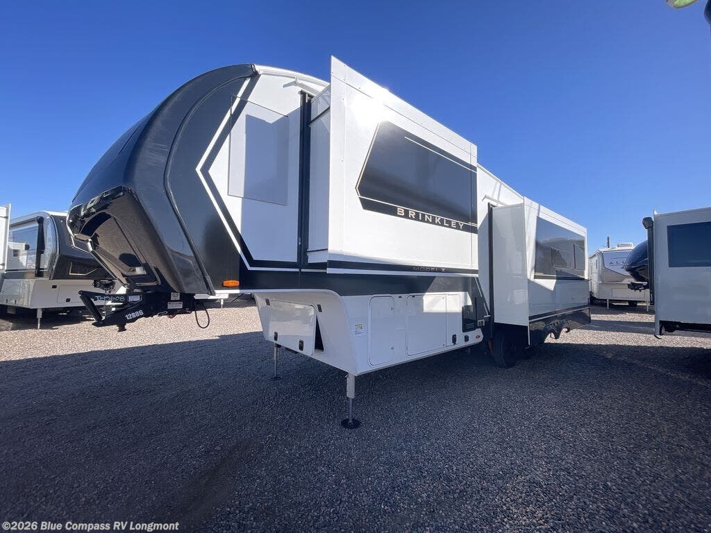 The Brinkley mid-profile Model Z fifth wheels bring you clean lines and an upscale look with plenty of style and exciting new features like the industry first brass plumbing connections. These units also feature an automotive grade front cap, plenty of exterior storage, dual exterior hot and cold showers, and wide stance leveling jacks for easy set up. Residential frameless windows provide a clean look and beautiful views, and ample electrical outlets and USB/USB-C outlets allow all of your electronics and appliances to easily be used and charged.