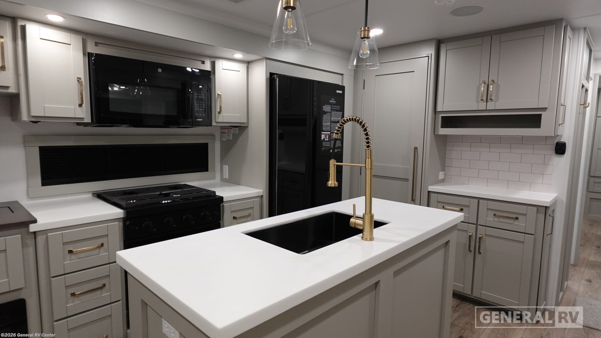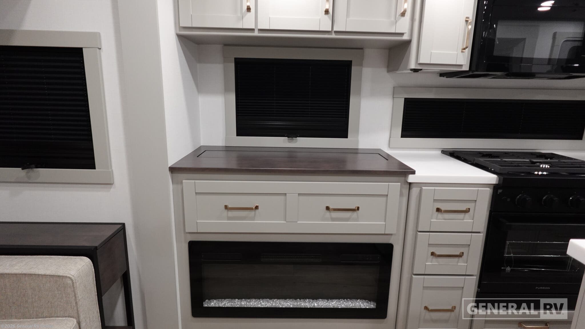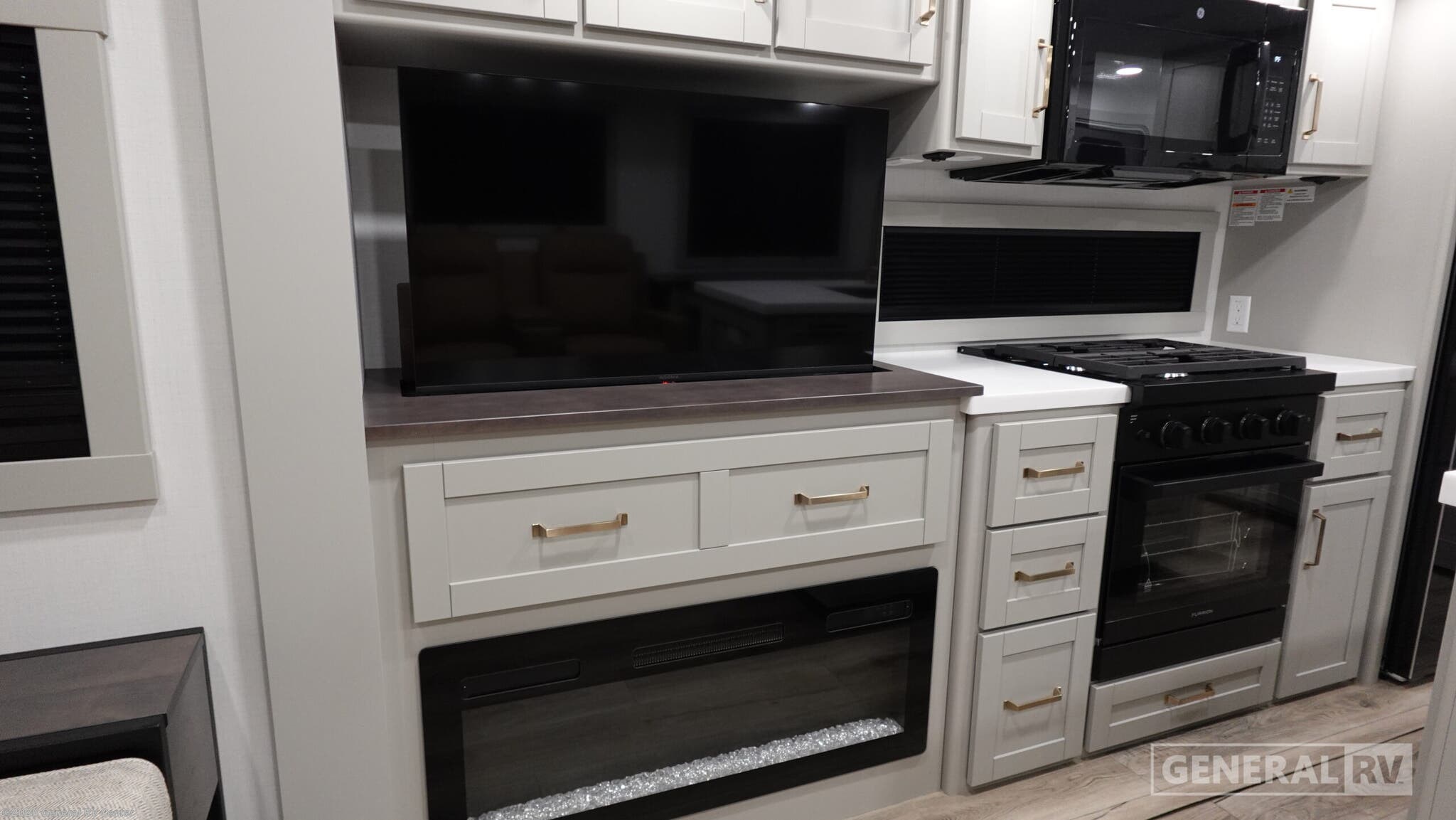 **Brinkley Model Z Air travel trailer 310 highlights:** * Kitchen Island * Theater Seats * Fireplace * Pantry with Adjustable Shelves * Queen Bed You will love all the space and features in this travel trailer! A luxurious rear living room offers plenty of room to spread out, with a 72" tri-fold sofa plus theater seats, all arranged with a perfect view of the 42" TV over the fireplace. A central kitchen area includes an island with hidden pet bowls. Find even more storage with the hutch plus pantry with adjustable shelves. The front bedroom comes with a queen bed, but if you'd like you can upgrade to a king for even more room. No matter which you choose, you will enjoy watching the 32" bedroom TV. The full-width wardrobe has room for all of your clothes and also includes prep for a washer and dryer. And the full bath includes a 30" x 42" one-piece fiberglass shower. Outside you'll enjoy two awnings, pass-through storage, and LED ground lighting. With any Model Z Air travel trailer by Brinkley, you will enjoy premium features at every turn. The industry-first low maintenance roof is sure to be appreciated, plus there are industry-first brass plumbing connections for excellent resistance to corrosion. The drop-frame chassis with a massive pass-through bay will allow you to bring along camp gear galore, plus there are motion lighting and power outlets for added convenience! You'll also find two hot/cold showers outdoors, along with a 370-watt solar panel and a premium utility center with a retractable 65' water hose to wash off mud from the lake. The interior is just as accommodating with its solid surface countertops, Brinkley CraftSense wood trim construction, integrated blackout window shades, and the list of luxury features goes on!