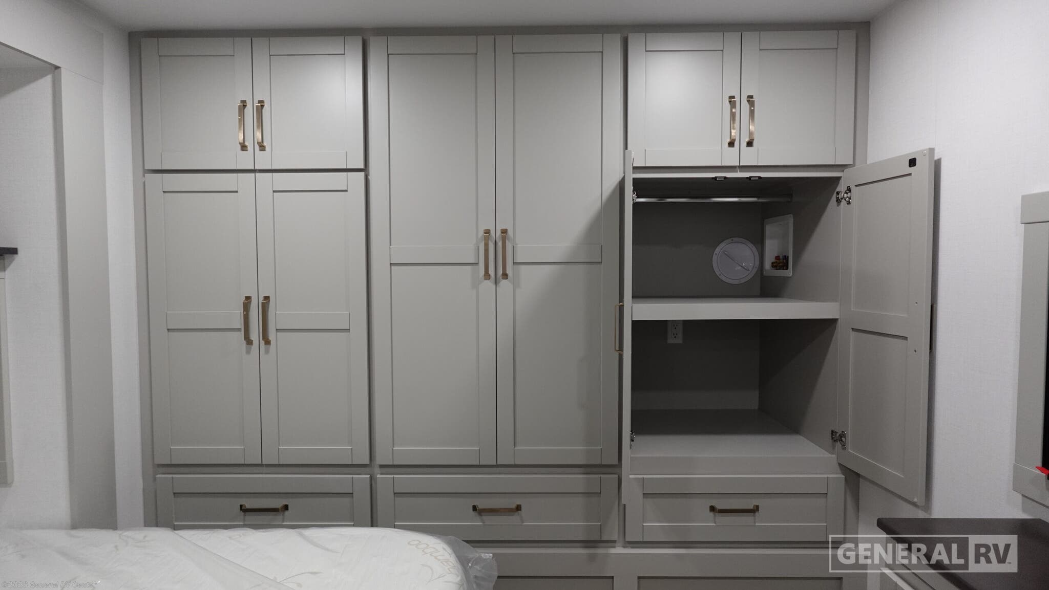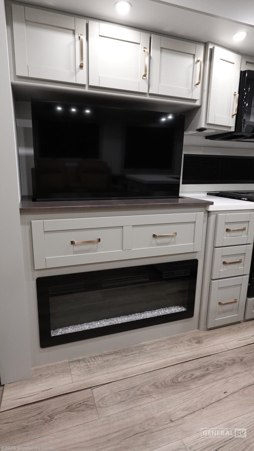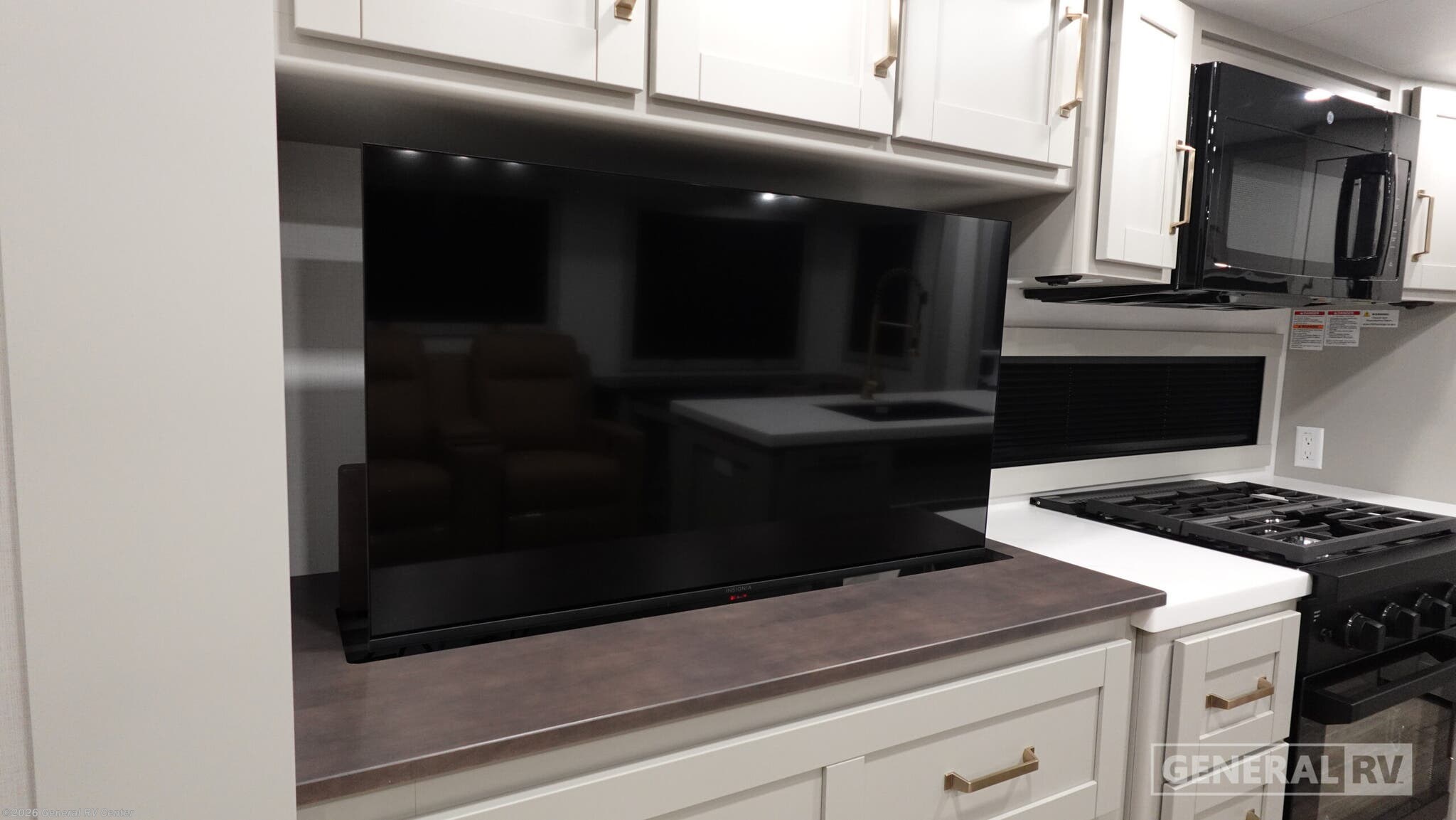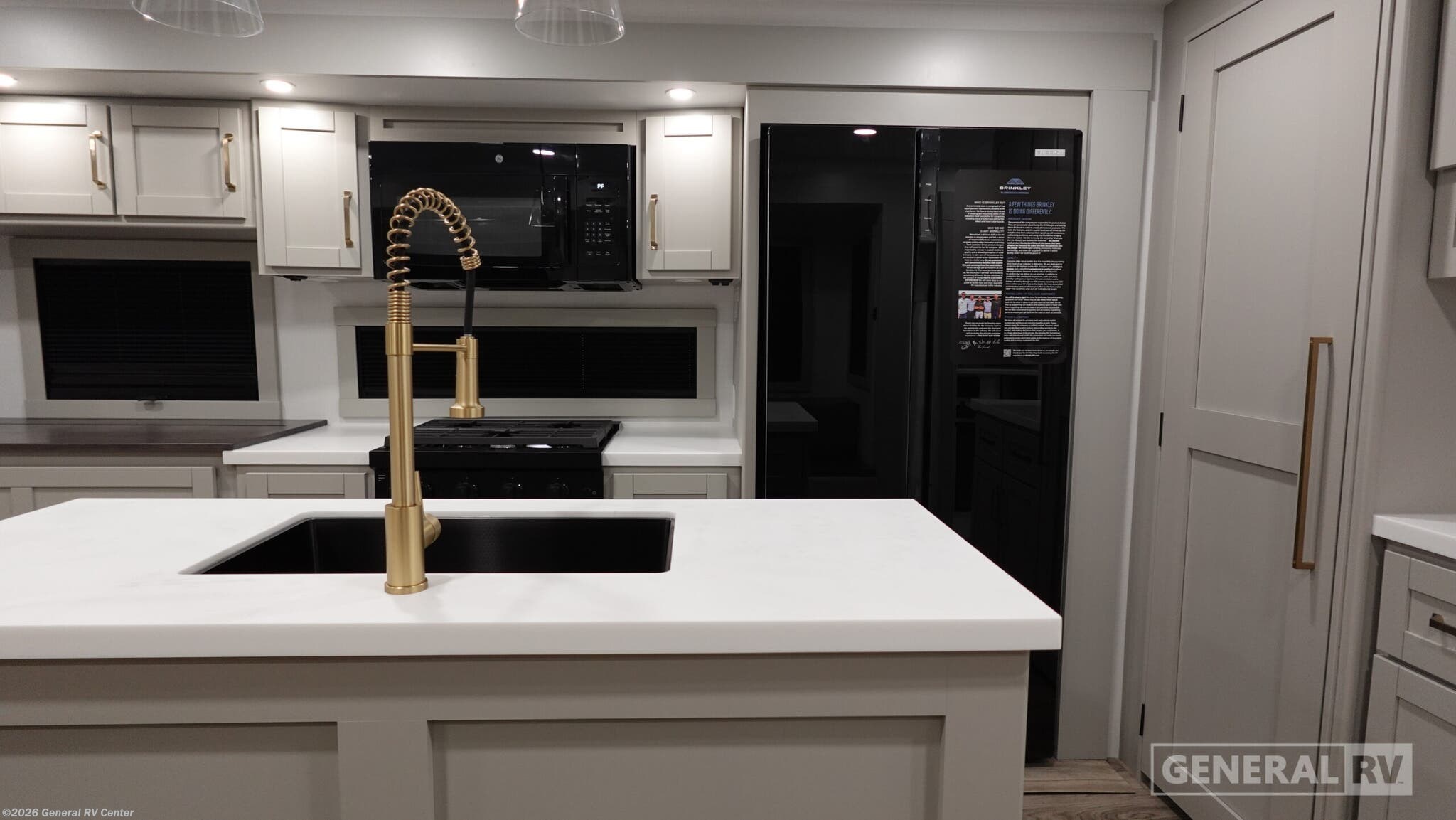 **Brinkley Model Z Air travel trailer 310 highlights:** * Kitchen Island * Theater Seats * Fireplace * Pantry with Adjustable Shelves * Queen Bed You will love all the space and features in this travel trailer! A luxurious rear living room offers plenty of room to spread out, with a 72" tri-fold sofa plus theater seats, all arranged with a perfect view of the 42" TV over the fireplace. A central kitchen area includes an island with hidden pet bowls. Find even more storage with the hutch plus pantry with adjustable shelves. The front bedroom comes with a queen bed, but if you'd like you can upgrade to a king for even more room. No matter which you choose, you will enjoy watching the 32" bedroom TV. The full-width wardrobe has room for all of your clothes and also includes prep for a washer and dryer. And the full bath includes a 30" x 42" one-piece fiberglass shower. Outside you'll enjoy two awnings, pass-through storage, and LED ground lighting. With any Model Z Air travel trailer by Brinkley, you will enjoy premium features at every turn. The industry-first low maintenance roof is sure to be appreciated, plus there are industry-first brass plumbing connections for excellent resistance to corrosion. The drop-frame chassis with a massive pass-through bay will allow you to bring along camp gear galore, plus there are motion lighting and power outlets for added convenience! You'll also find two hot/cold showers outdoors, along with a 370-watt solar panel and a premium utility center with a retractable 65' water hose to wash off mud from the lake. The interior is just as accommodating with its solid surface countertops, Brinkley CraftSense wood trim construction, integrated blackout window shades, and the list of luxury features goes on!