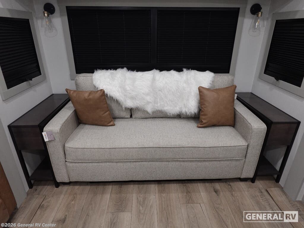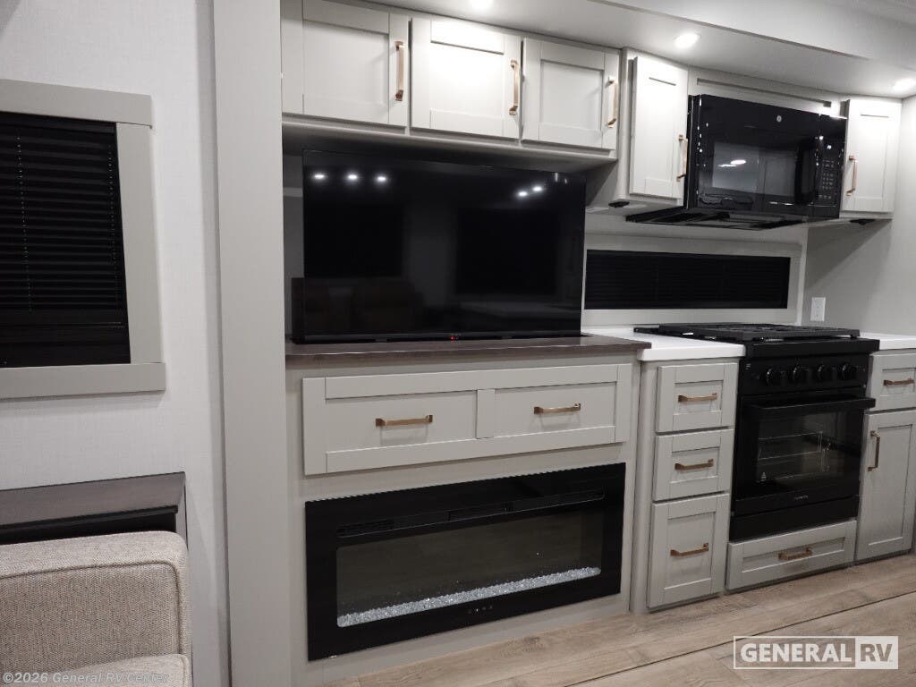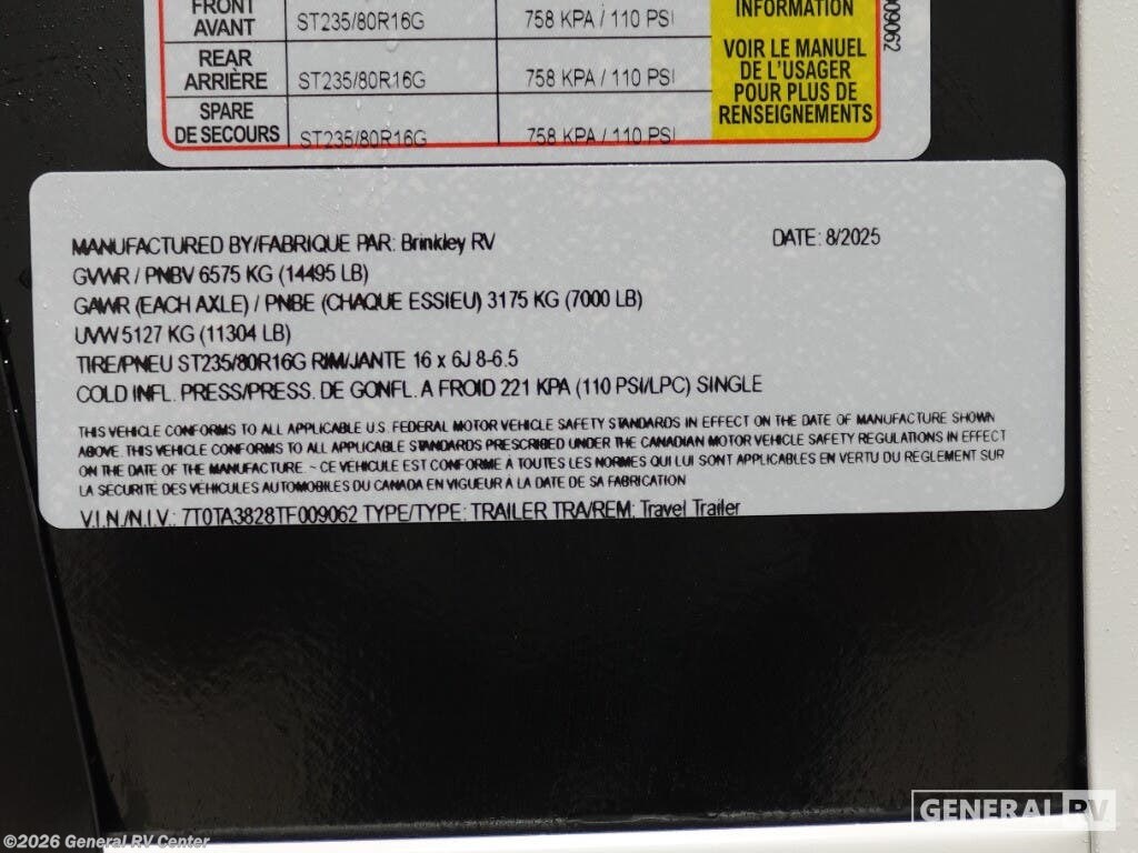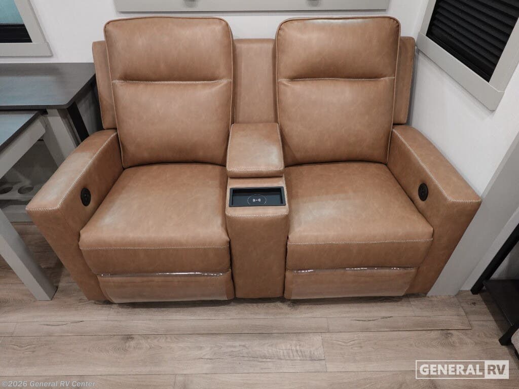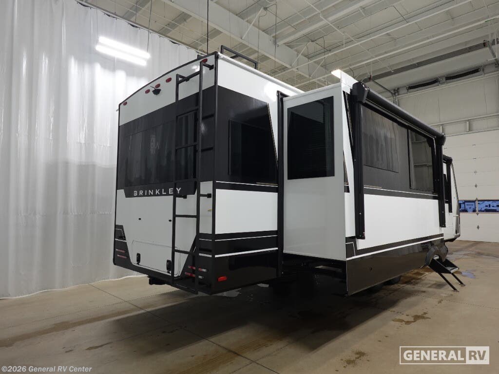 Step into the future with the 2026 Brinkley RV Model Z Air 310, where luxury meets functionality in a stunning design. This RV is crafted for those who seek both adventure and comfort. At nearly 38 feet in length, its spacious layout features a center kitchen equipped with a full-size electric refrigerator and a sleek cooktop with three burners, perfect for preparing meals on the go. The rear living area, complete with theater seating and a cozy fireplace, offers a perfect retreat after a day of exploration. The Model Z Air 310 is designed to accommodate up to four guests comfortably, with options for a queen or king bed in the front bedroom and a convertible bed for additional sleeping space. The center bath, featuring a one-piece fiberglass shower, ensures a refreshing experience. With ample storage, including a drop-frame pass-thru, and modern conveniences like a washer and dryer, this RV is a home away from home. Enjoy the outdoors under the expansive 25.5 ft. powered retractable awning, making every journey memorable. For more details, visit your nearest General RV dealership.