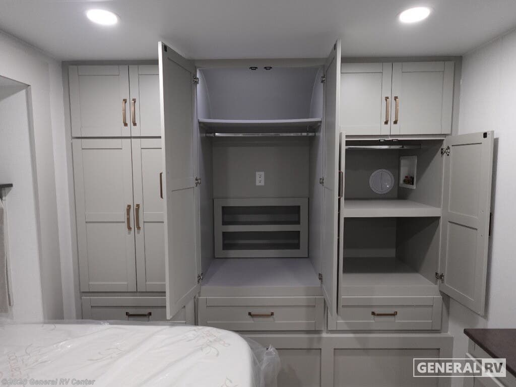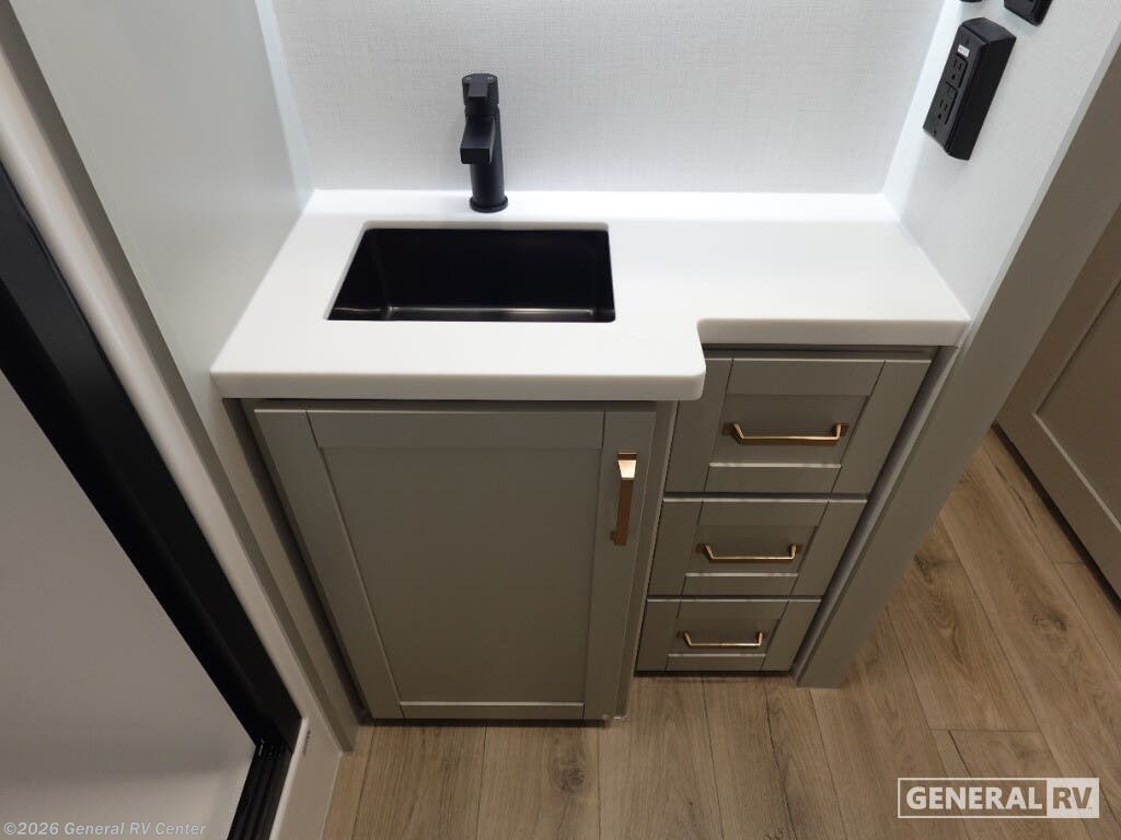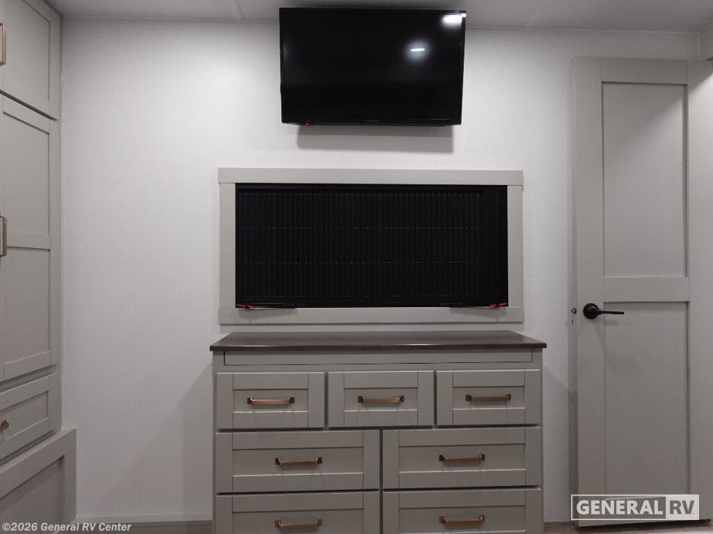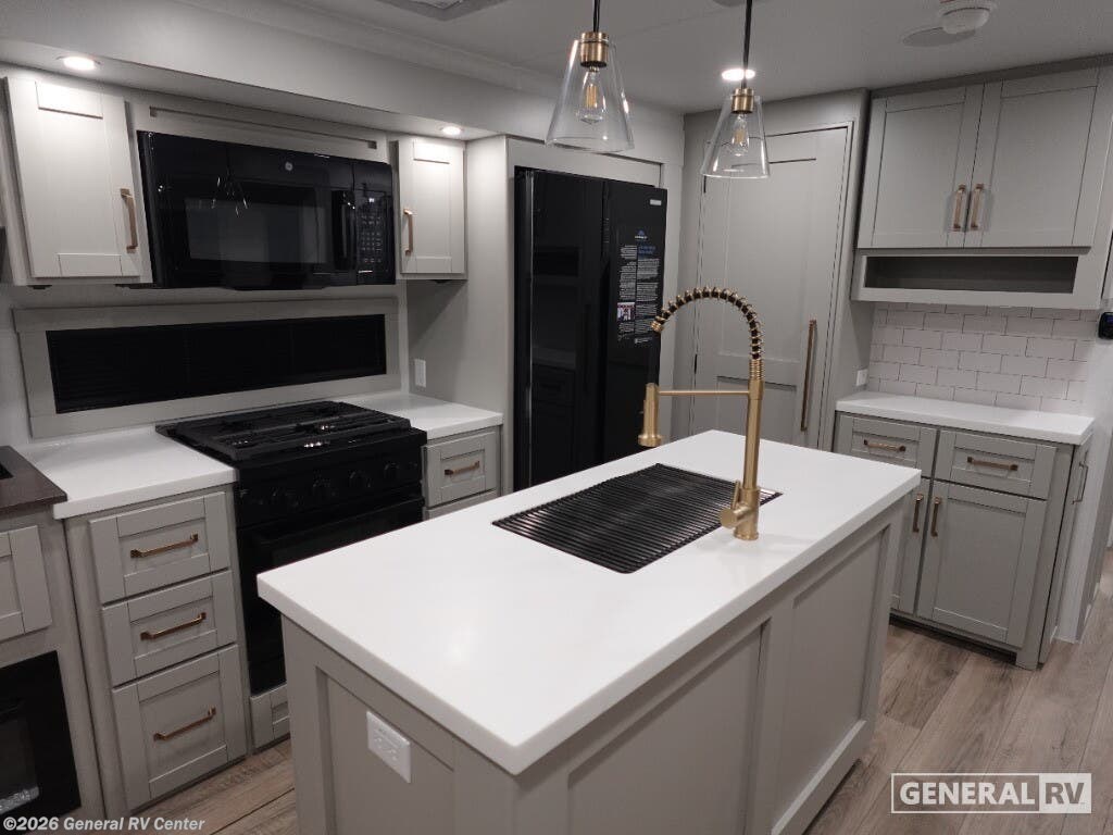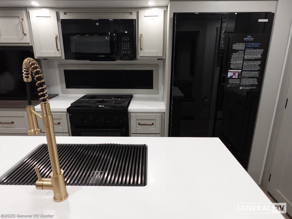 Step into the future with the 2026 Brinkley RV Model Z Air 310, where luxury meets functionality in a stunning design. This RV is crafted for those who seek both adventure and comfort. At nearly 38 feet in length, its spacious layout features a center kitchen equipped with a full-size electric refrigerator and a sleek cooktop with three burners, perfect for preparing meals on the go. The rear living area, complete with theater seating and a cozy fireplace, offers a perfect retreat after a day of exploration. The Model Z Air 310 is designed to accommodate up to four guests comfortably, with options for a queen or king bed in the front bedroom and a convertible bed for additional sleeping space. The center bath, featuring a one-piece fiberglass shower, ensures a refreshing experience. With ample storage, including a drop-frame pass-thru, and modern conveniences like a washer and dryer, this RV is a home away from home. Enjoy the outdoors under the expansive 25.5 ft. powered retractable awning, making every journey memorable. For more details, visit your nearest General RV dealership.
