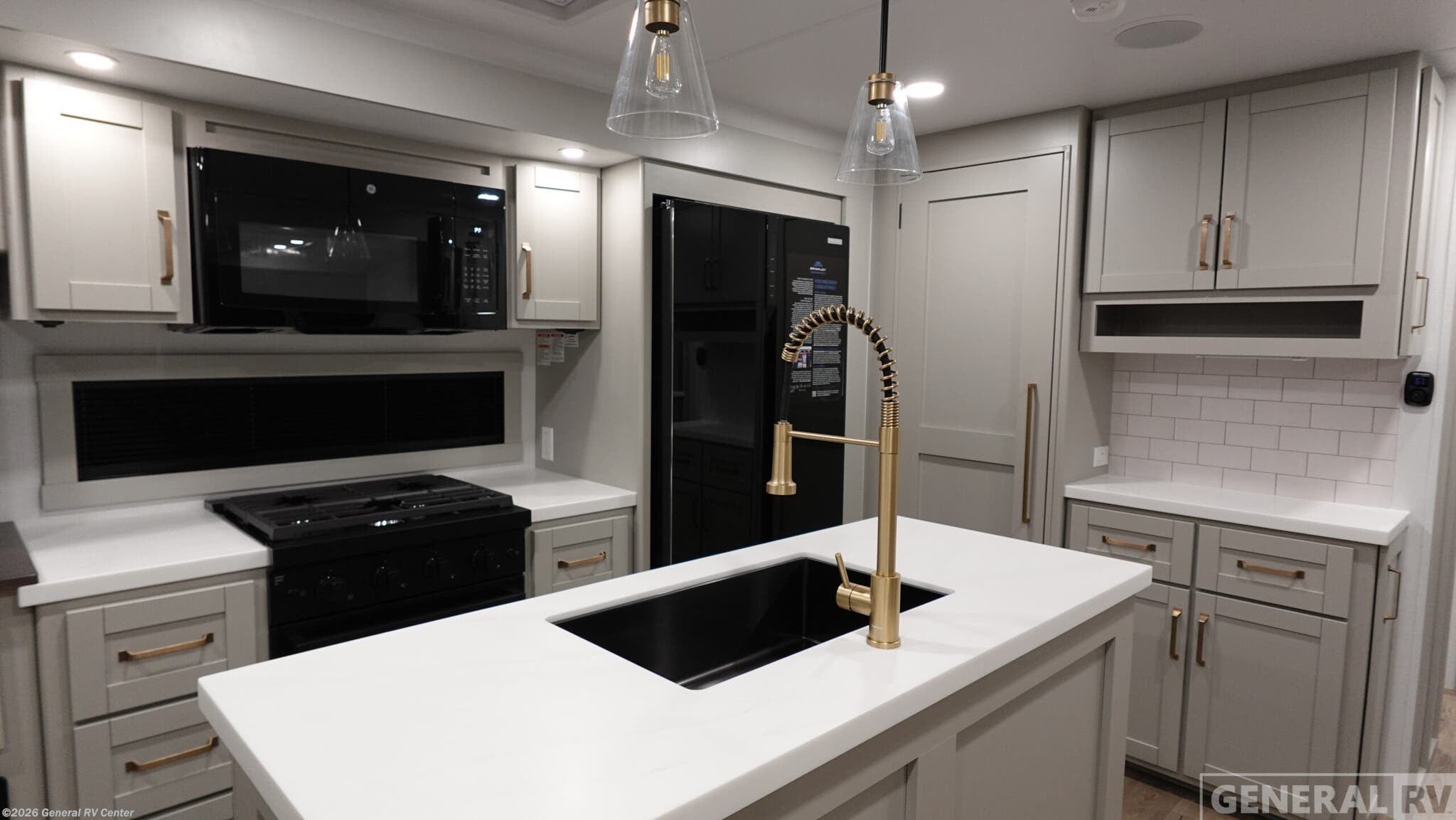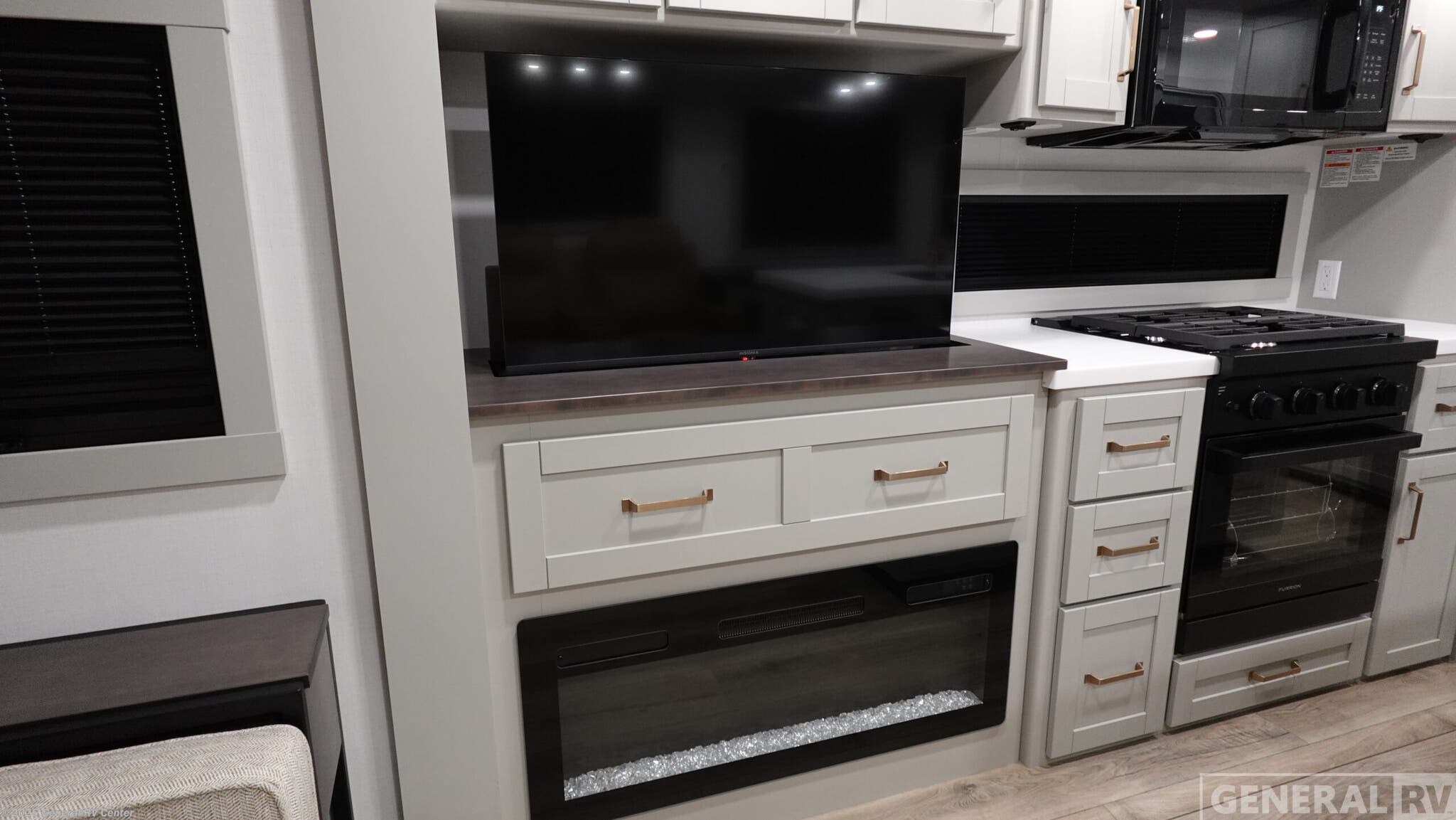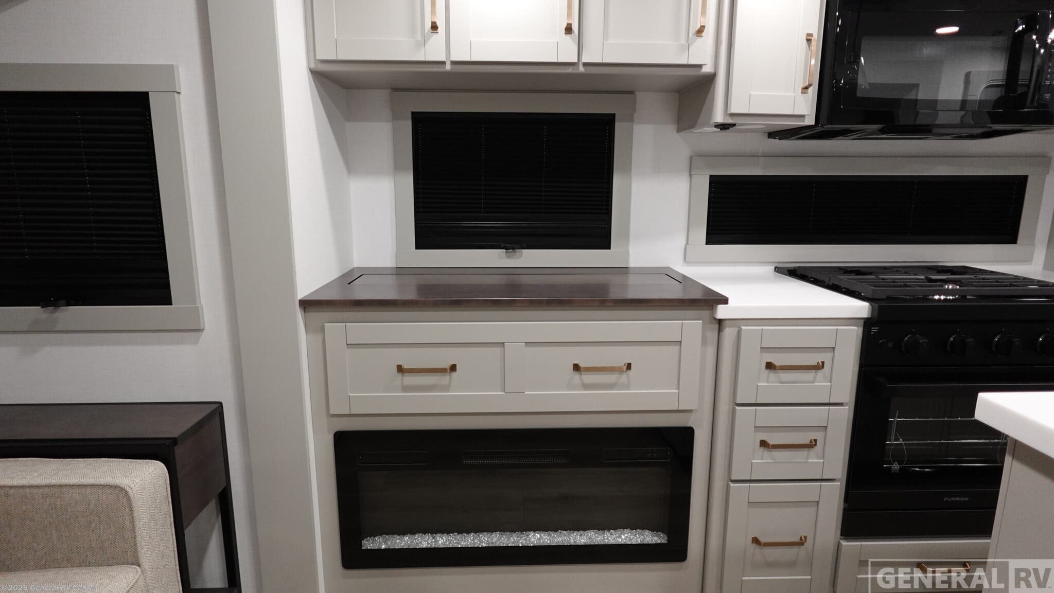 **Brinkley Model Z Air travel trailer 310 highlights:** * Kitchen Island * Theater Seats * Fireplace * Pantry with Adjustable Shelves * Queen Bed You will love all the space and features in this travel trailer! A luxurious rear living room offers plenty of room to spread out, with a 72" tri-fold sofa plus theater seats, all arranged with a perfect view of the 42" TV over the fireplace. A central kitchen area includes an island with hidden pet bowls. Find even more storage with the hutch plus pantry with adjustable shelves. The front bedroom comes with a queen bed, but if you'd like you can upgrade to a king for even more room. No matter which you choose, you will enjoy watching the 32" bedroom TV. The full-width wardrobe has room for all of your clothes and also includes prep for a washer and dryer. And the full bath includes a 30" x 42" one-piece fiberglass shower. Outside you'll enjoy two awnings, pass-through storage, and LED ground lighting. With any Model Z Air travel trailer by Brinkley, you will enjoy premium features at every turn. The industry-first low maintenance roof is sure to be appreciated, plus there are industry-first brass plumbing connections for excellent resistance to corrosion. The drop-frame chassis with a massive pass-through bay will allow you to bring along camp gear galore, plus there are motion lighting and power outlets for added convenience! You'll also find two hot/cold showers outdoors, along with a 370-watt solar panel and a premium utility center with a retractable 65' water hose to wash off mud from the lake. The interior is just as accommodating with its solid surface countertops, Brinkley CraftSense wood trim construction, integrated blackout window shades, and the list of luxury features goes on!