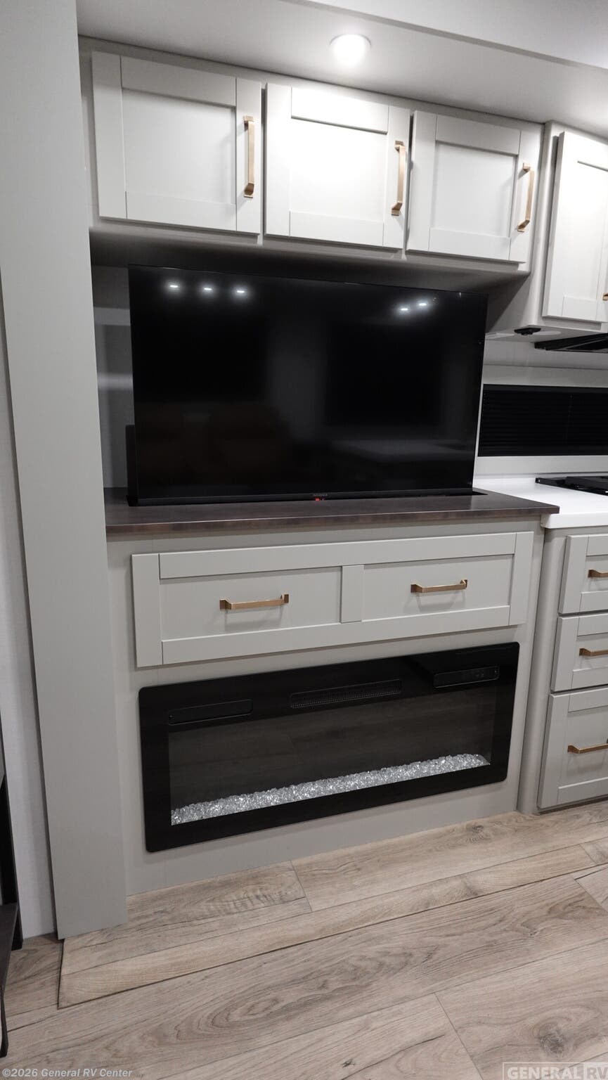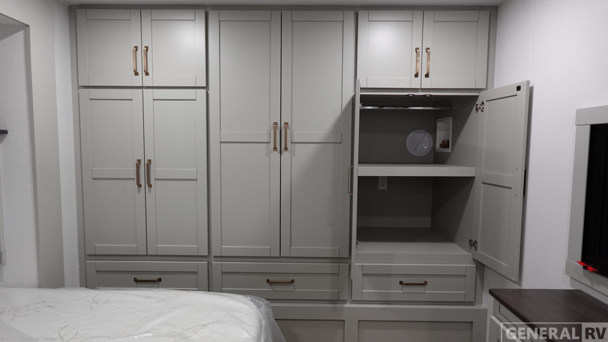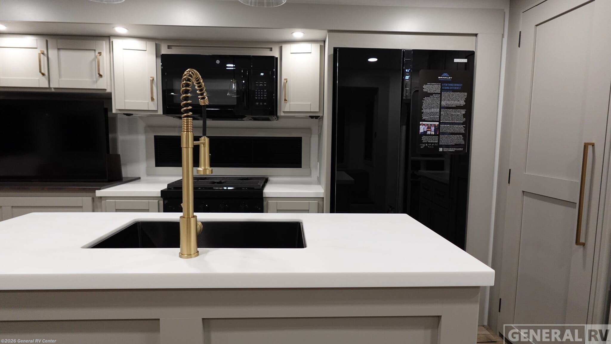 **Brinkley Model Z Air travel trailer 310 highlights:** * Kitchen Island * Theater Seats * Fireplace * Pantry with Adjustable Shelves * Queen Bed You will love all the space and features in this travel trailer! A luxurious rear living room offers plenty of room to spread out, with a 72" tri-fold sofa plus theater seats, all arranged with a perfect view of the 42" TV over the fireplace. A central kitchen area includes an island with hidden pet bowls. Find even more storage with the hutch plus pantry with adjustable shelves. The front bedroom comes with a queen bed, but if you'd like you can upgrade to a king for even more room. No matter which you choose, you will enjoy watching the 32" bedroom TV. The full-width wardrobe has room for all of your clothes and also includes prep for a washer and dryer. And the full bath includes a 30" x 42" one-piece fiberglass shower. Outside you'll enjoy two awnings, pass-through storage, and LED ground lighting. With any Model Z Air travel trailer by Brinkley, you will enjoy premium features at every turn. The industry-first low maintenance roof is sure to be appreciated, plus there are industry-first brass plumbing connections for excellent resistance to corrosion. The drop-frame chassis with a massive pass-through bay will allow you to bring along camp gear galore, plus there are motion lighting and power outlets for added convenience! You'll also find two hot/cold showers outdoors, along with a 370-watt solar panel and a premium utility center with a retractable 65' water hose to wash off mud from the lake. The interior is just as accommodating with its solid surface countertops, Brinkley CraftSense wood trim construction, integrated blackout window shades, and the list of luxury features goes on!